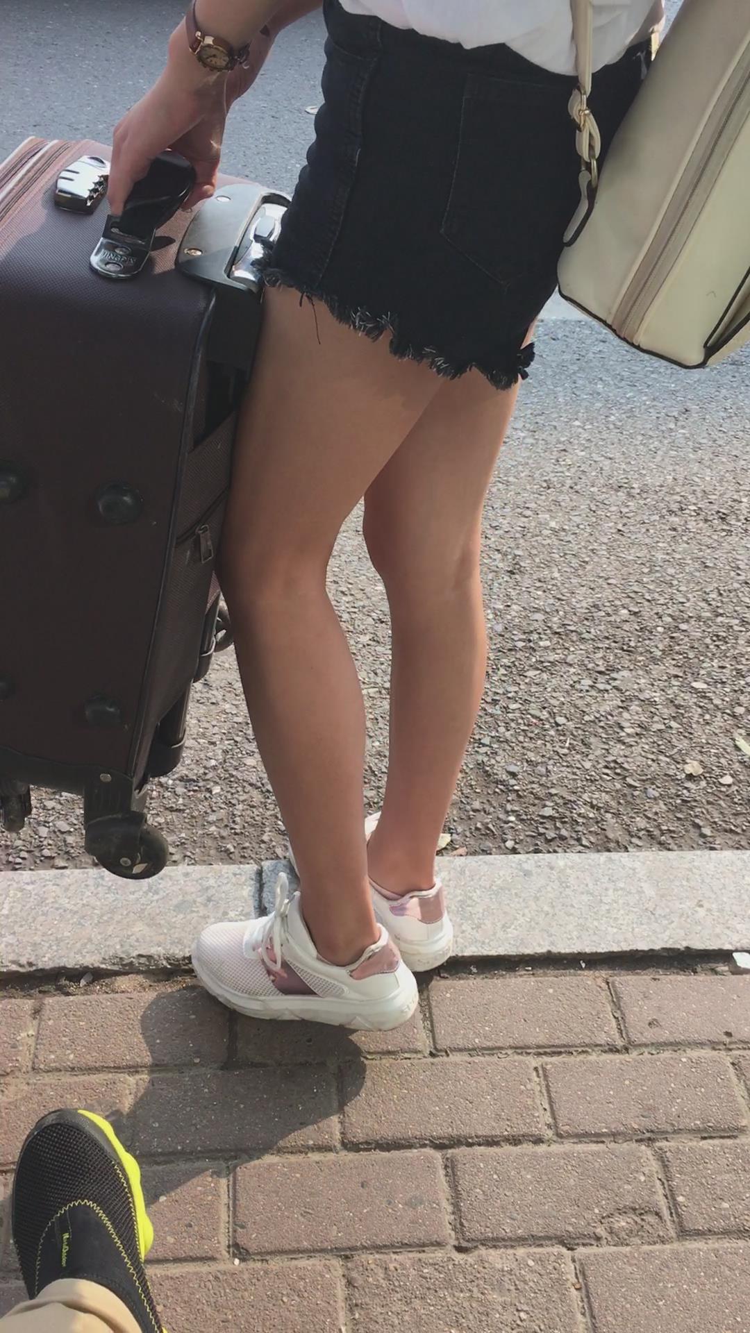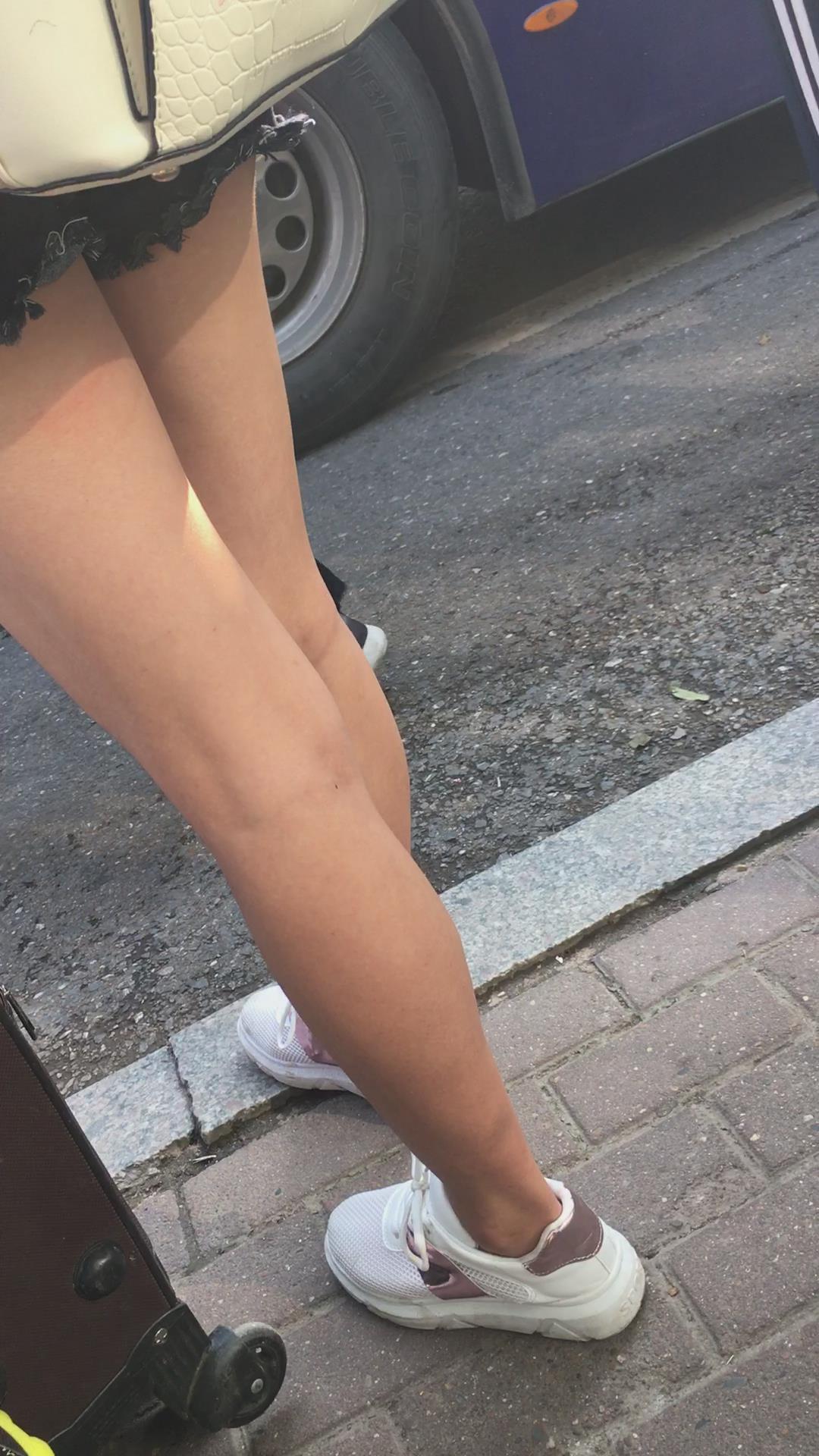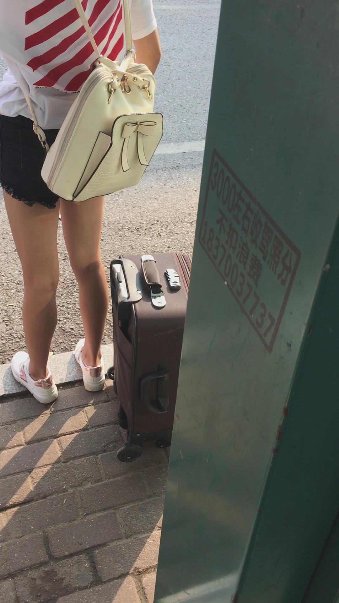超长大片之白T恤短热裤美眉等公交车 编号4498