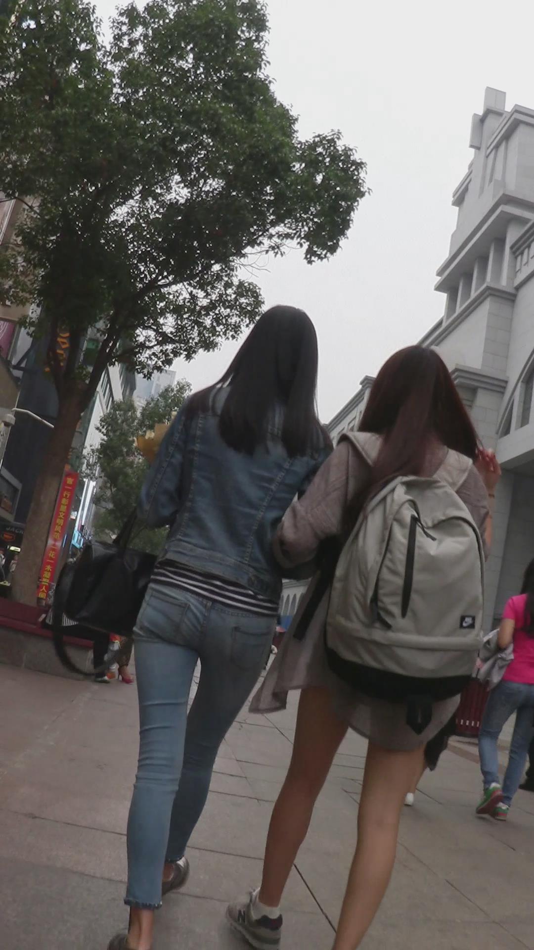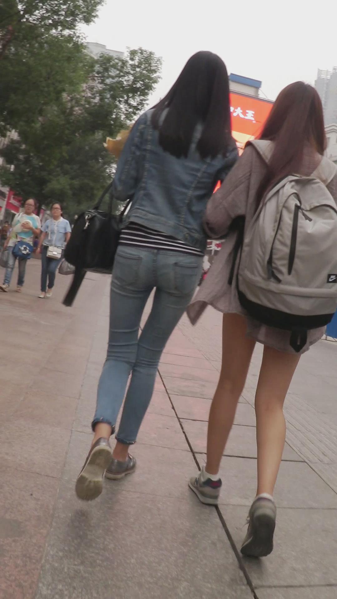 街拍紧身蓝色牛仔裤长腿美女 编号6026