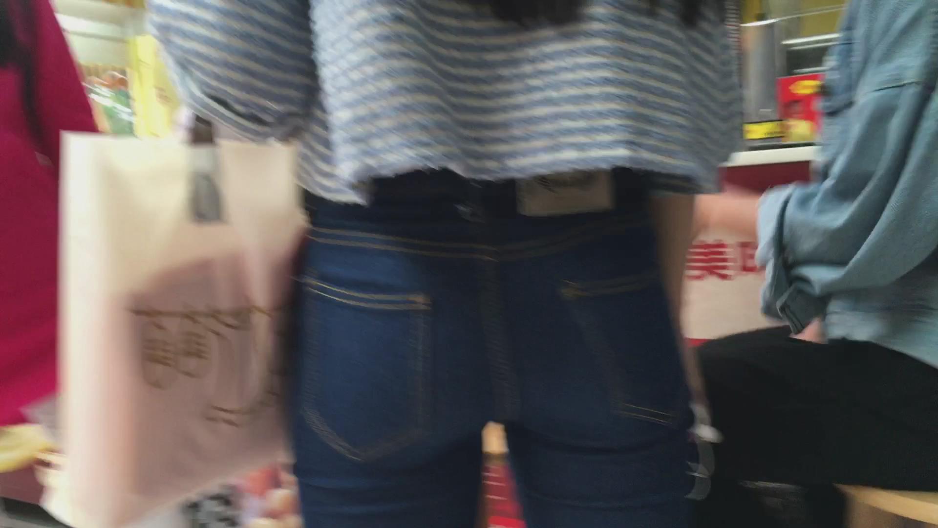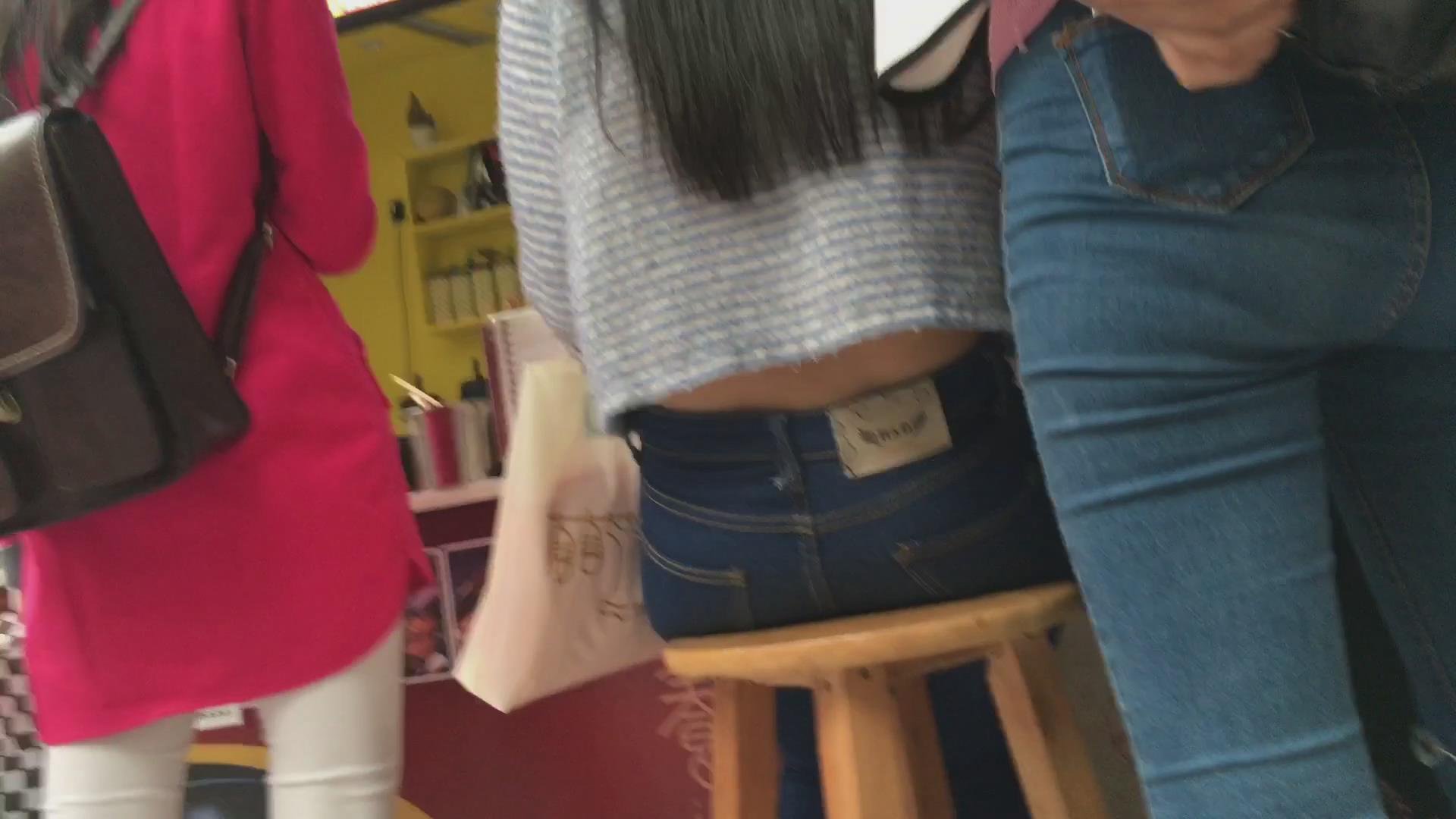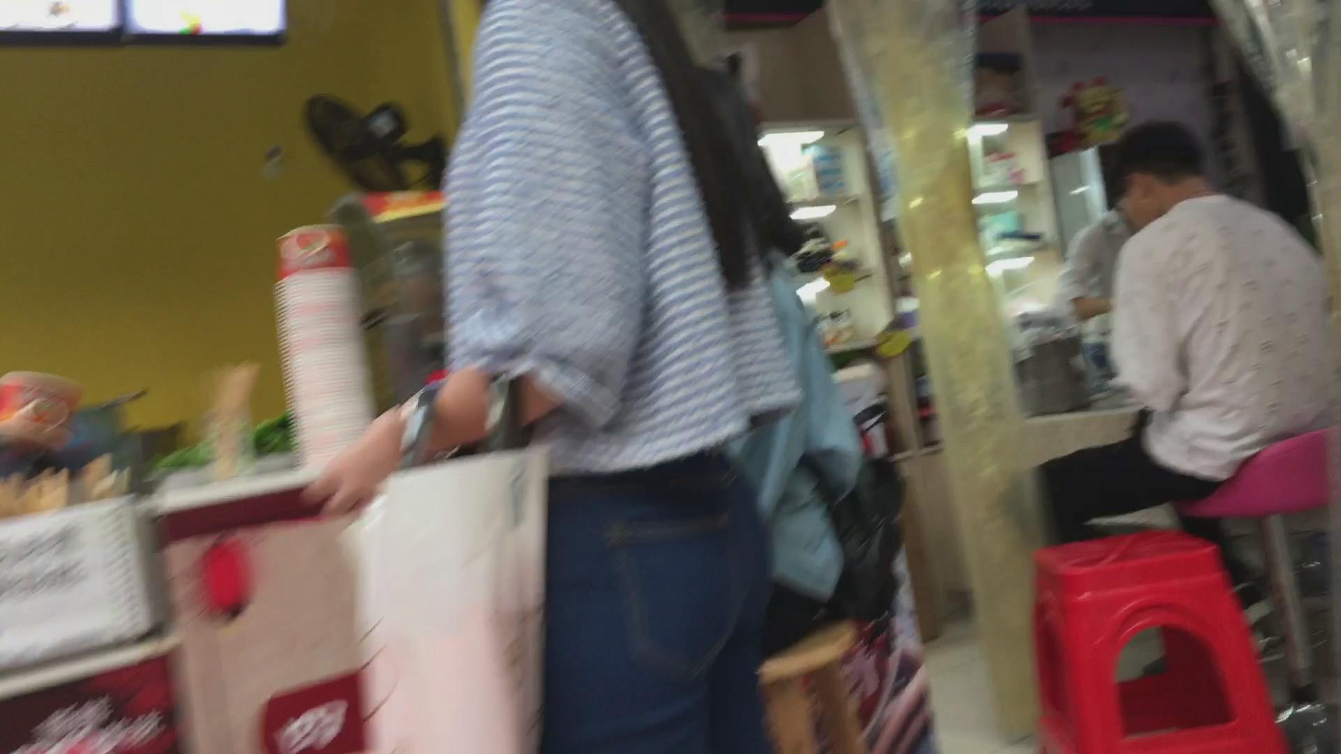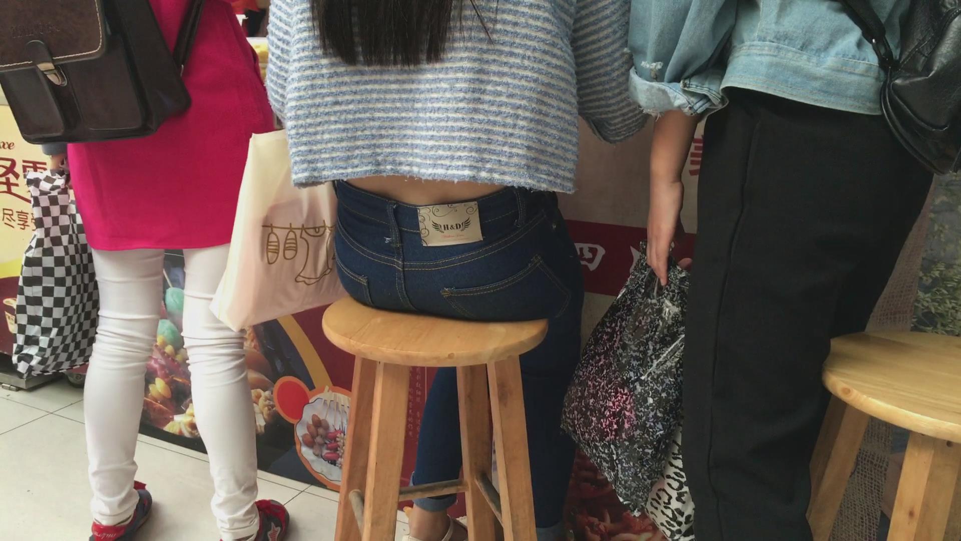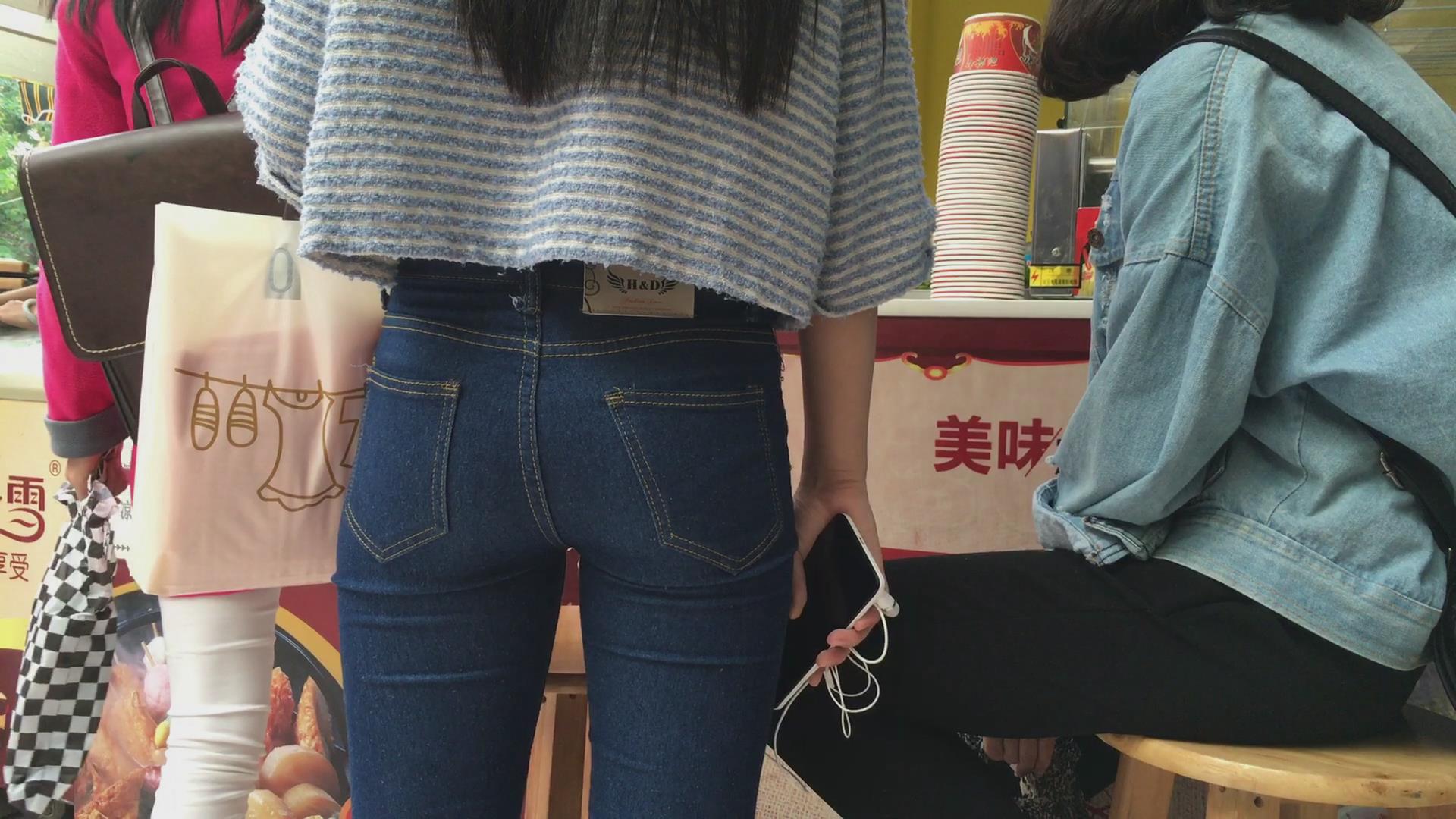 街拍紧身蓝牛学生妹 编号6030