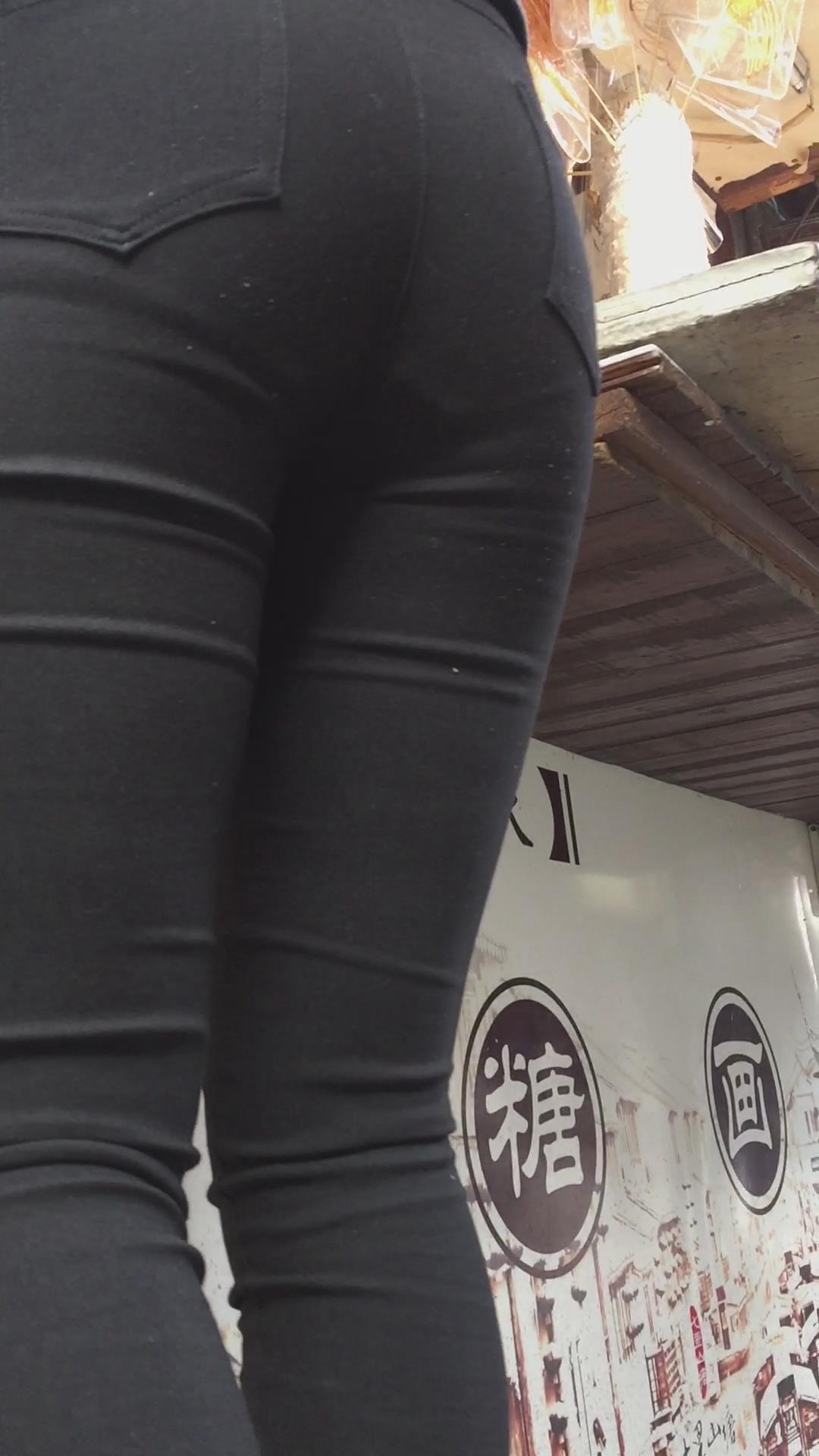 黑色紧身铅笔裤小美女。 编号6044