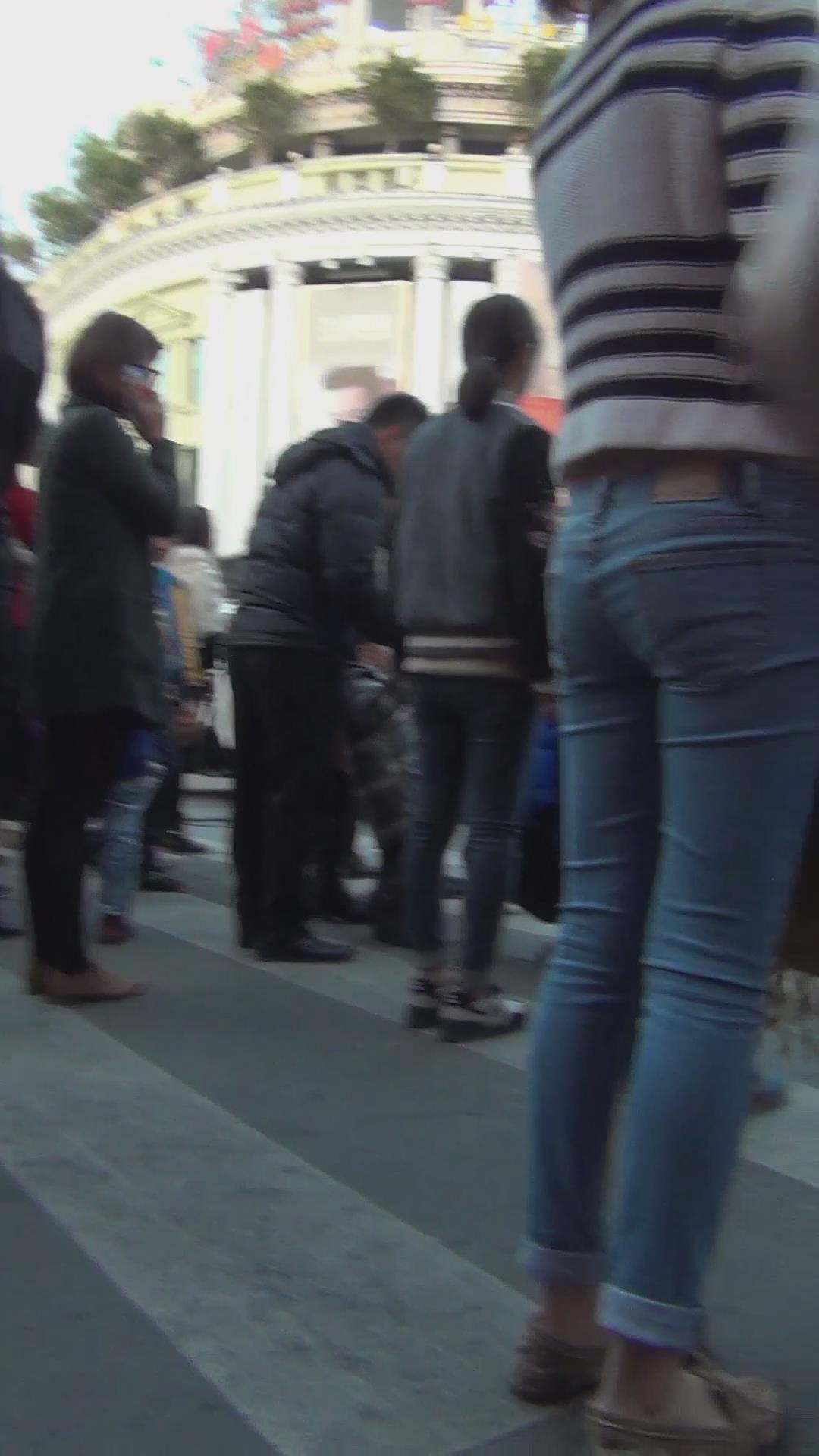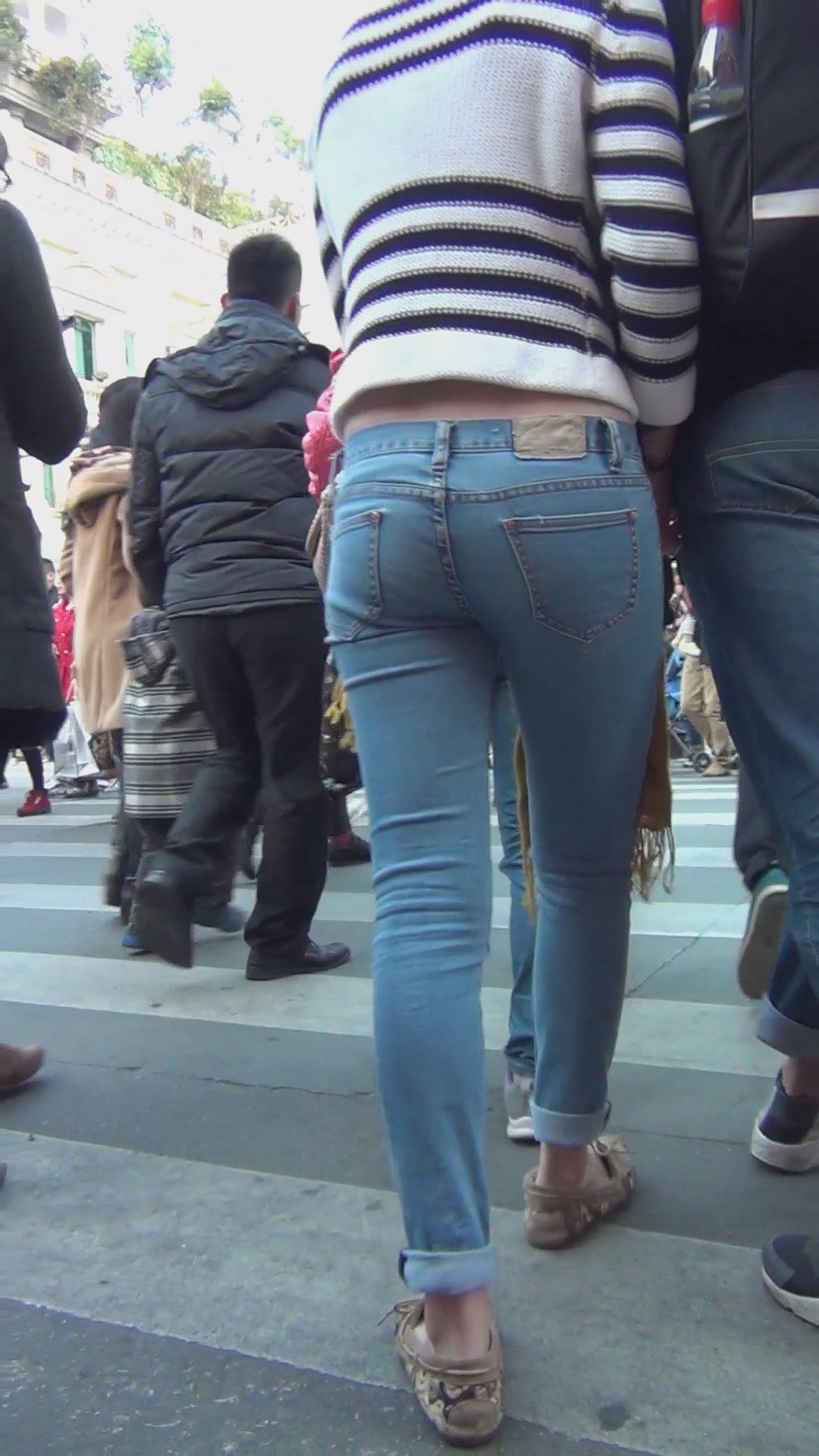 街拍翘臀紧身蓝色牛仔裤美女 编号6048