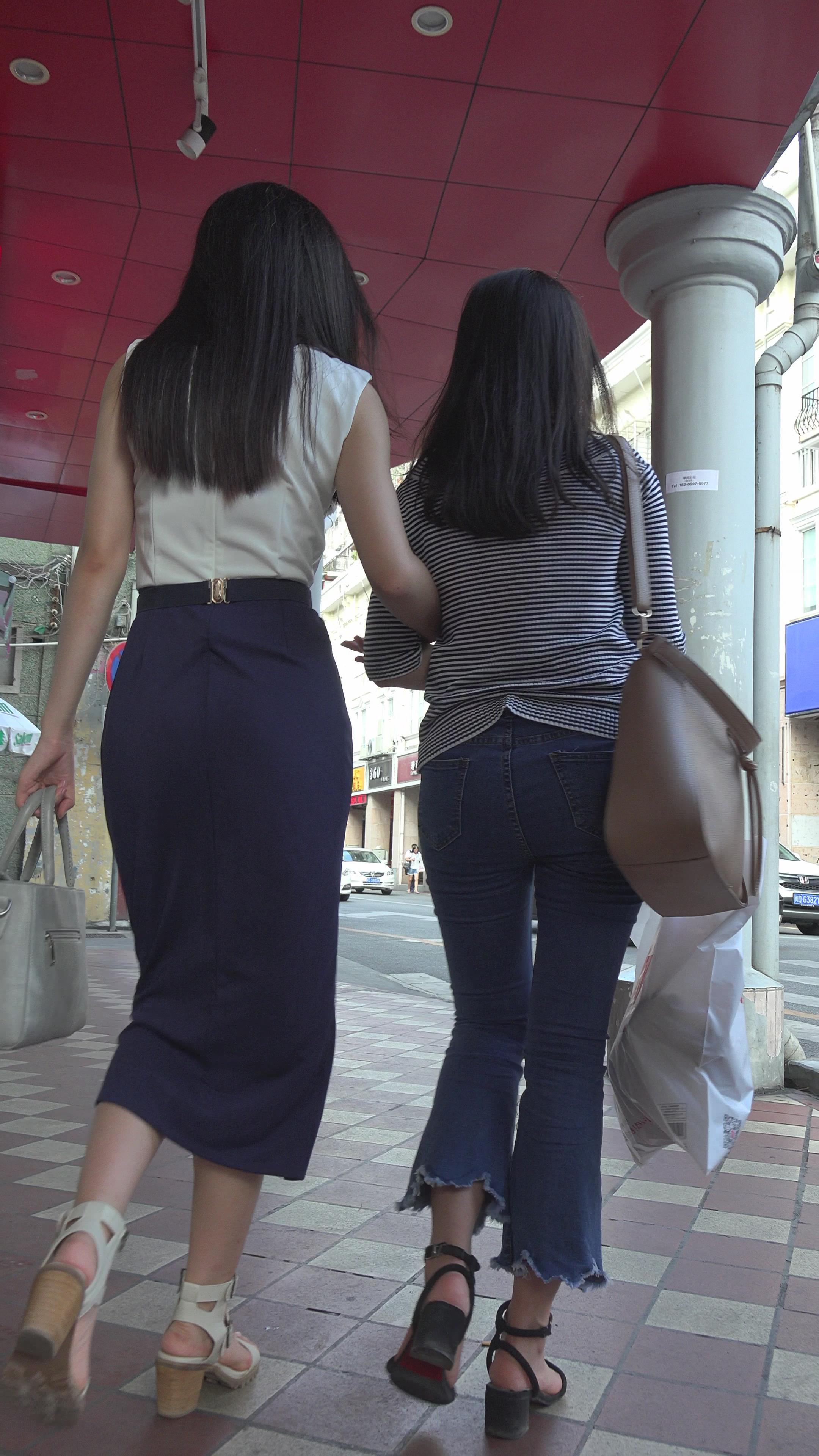街拍紧身牛仔条纹T恤美女姐妹 编号6062