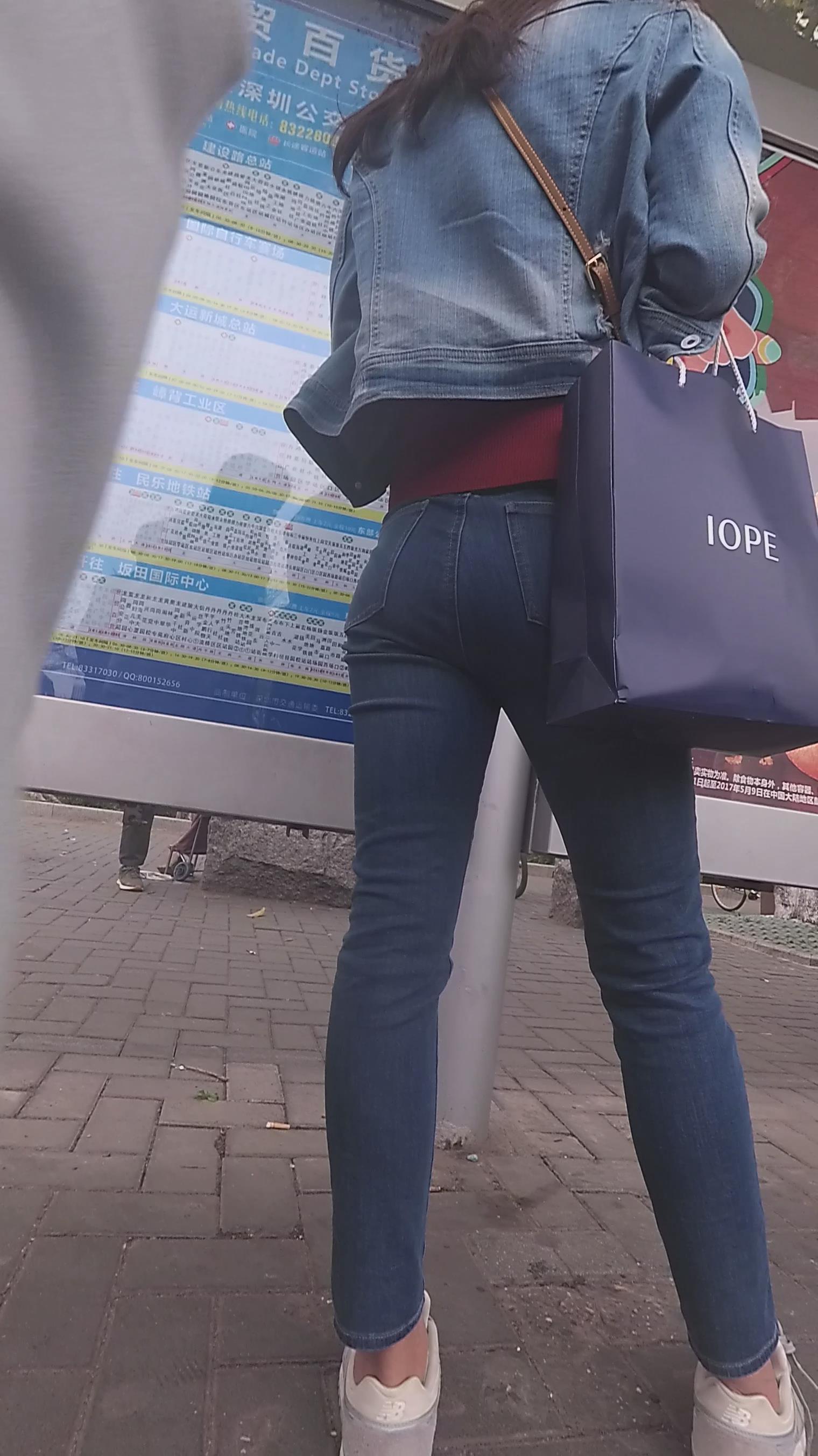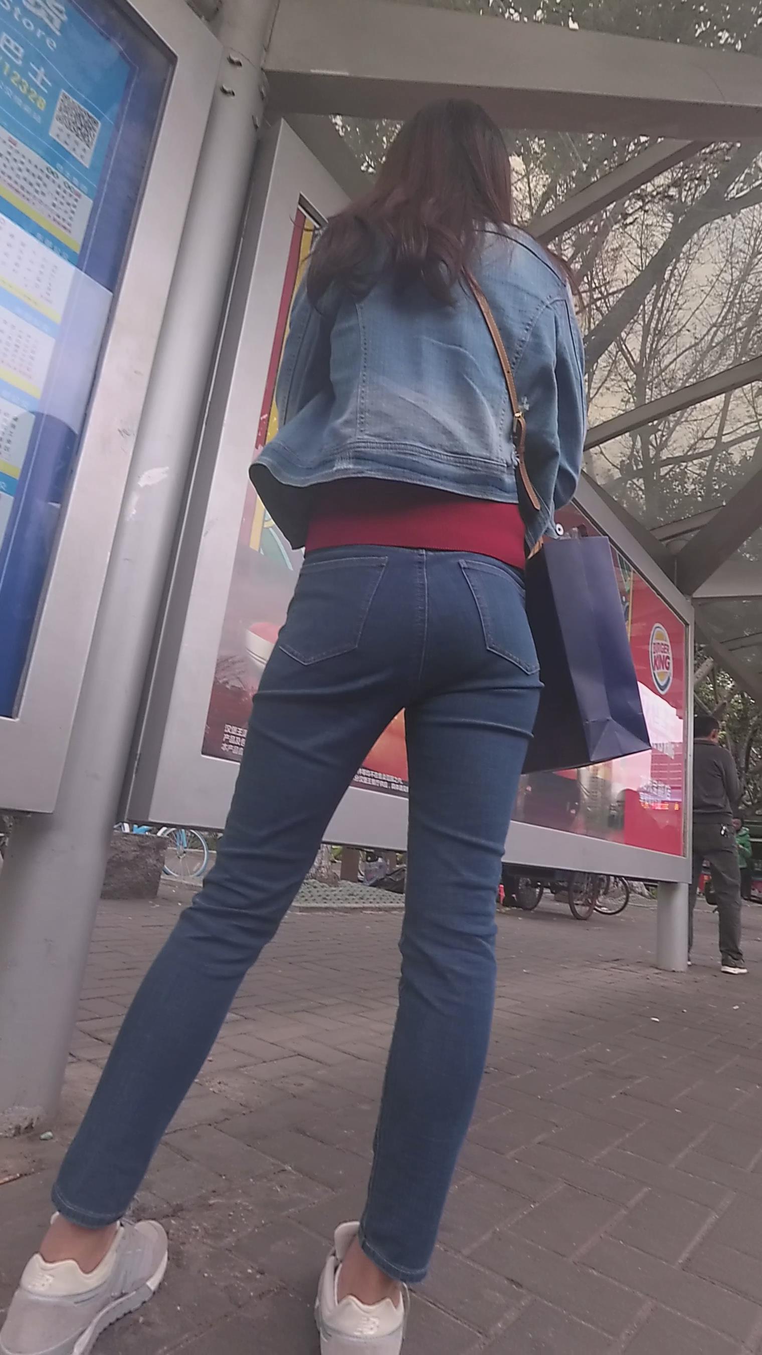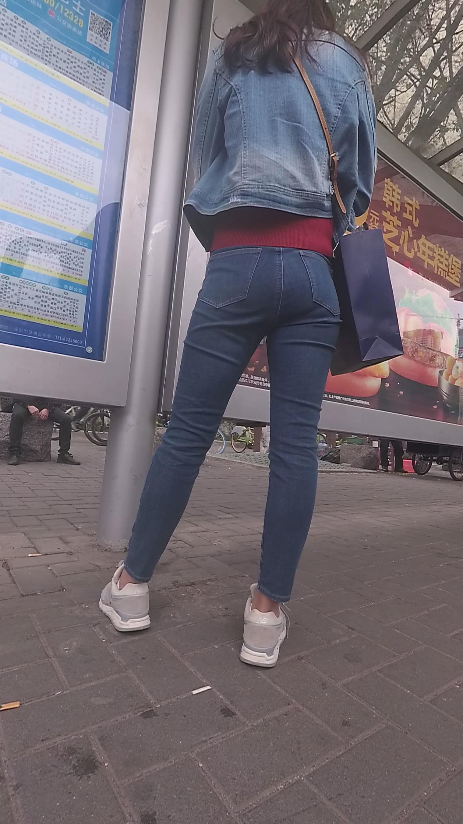 街拍牛仔裤美眉等公交 编号6067