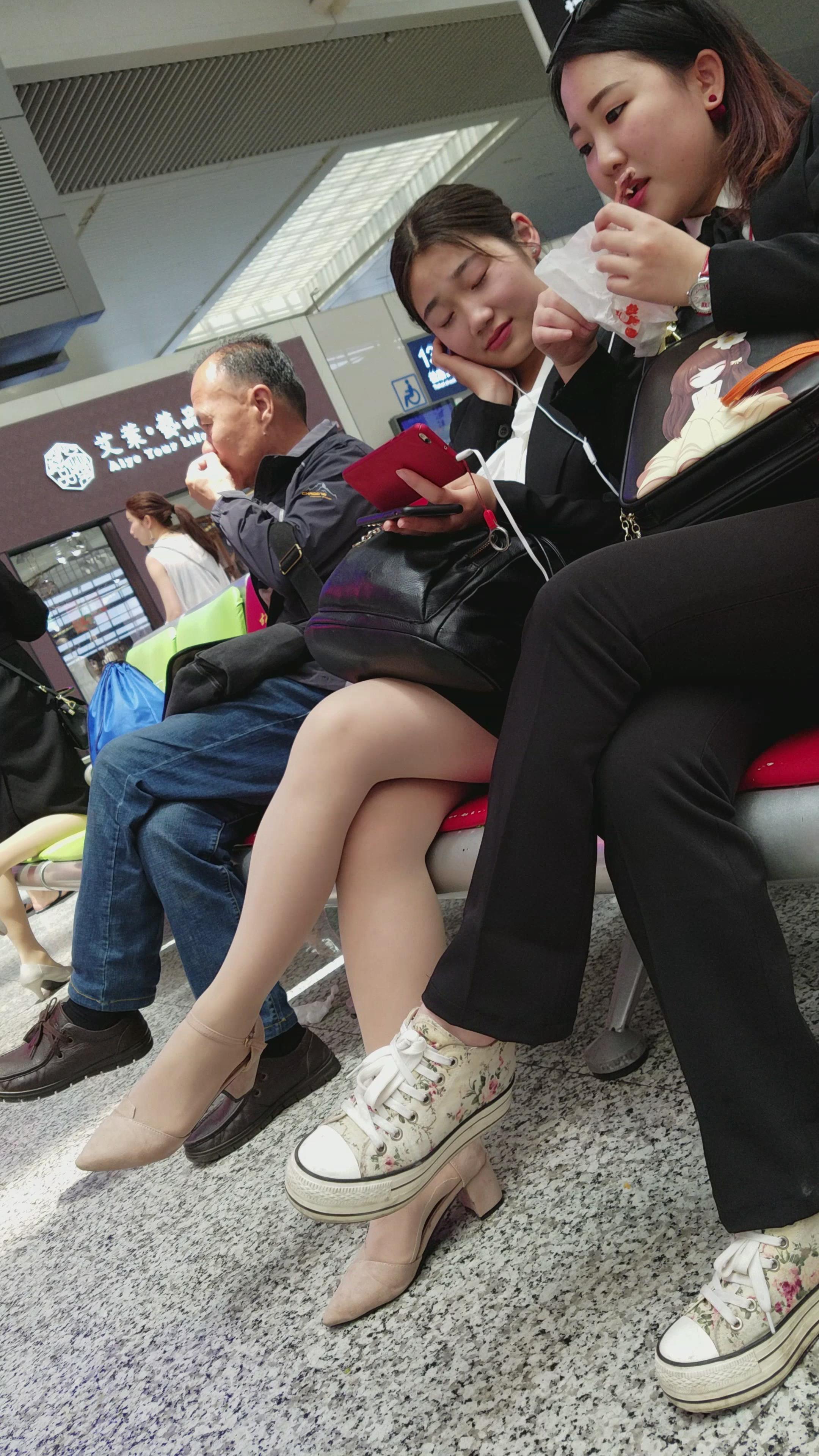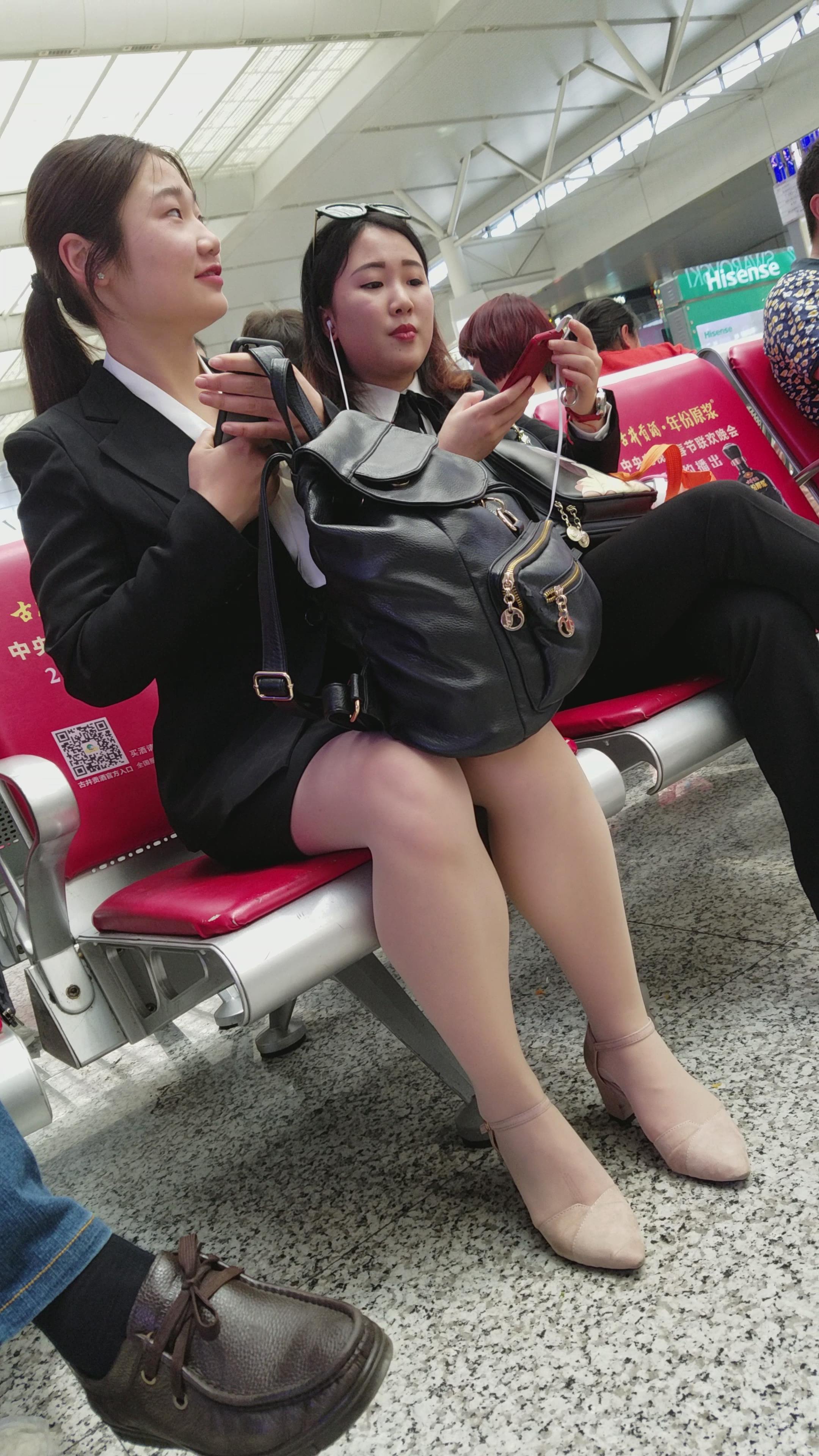 4K-跟姐妹聊得很欢的黑色包臀裙街拍肉丝长腿美女 编号2754