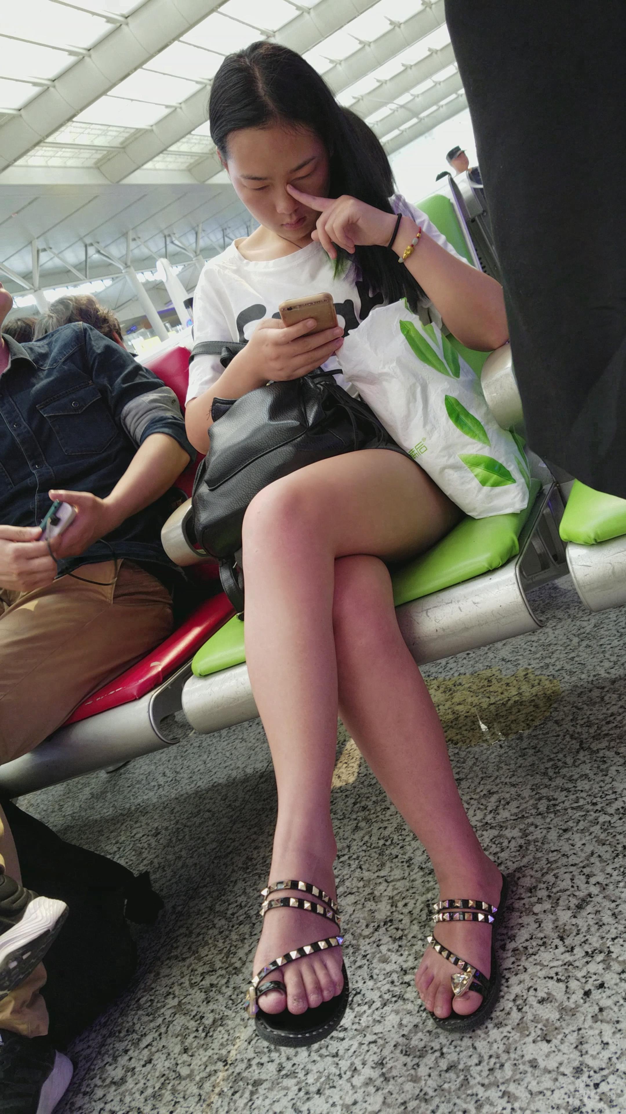 4K-看手机入迷的凉拖街拍美腿美眉 编号2777