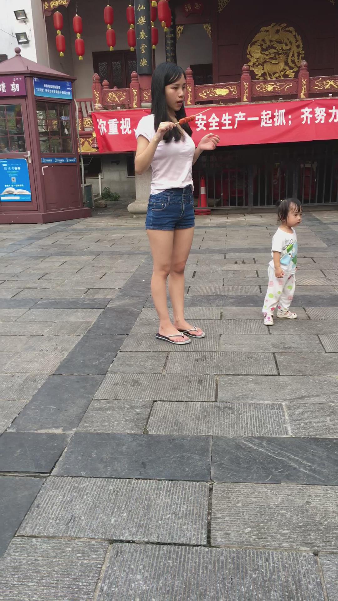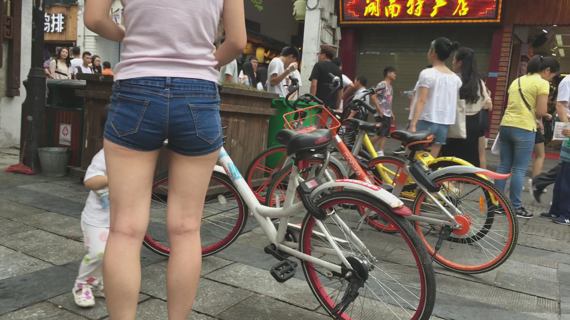 街拍娇小身材牛仔热裤少妇美女 编号4508