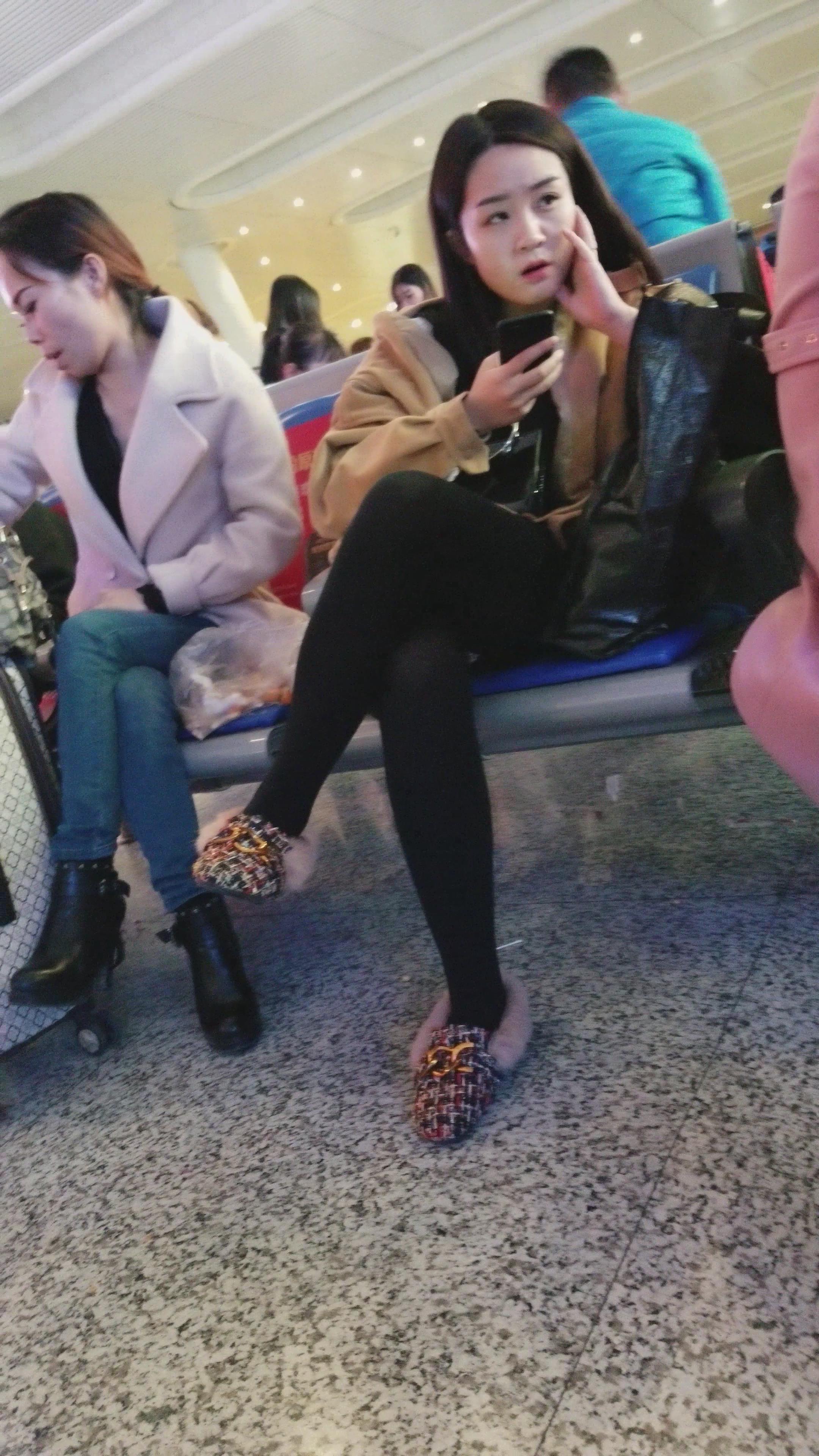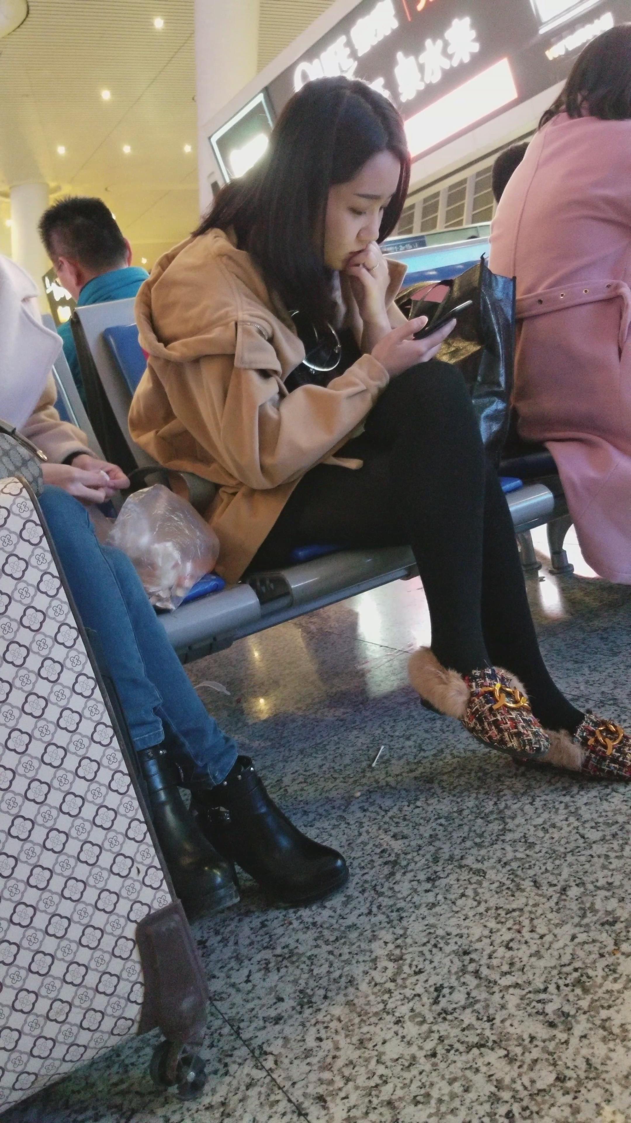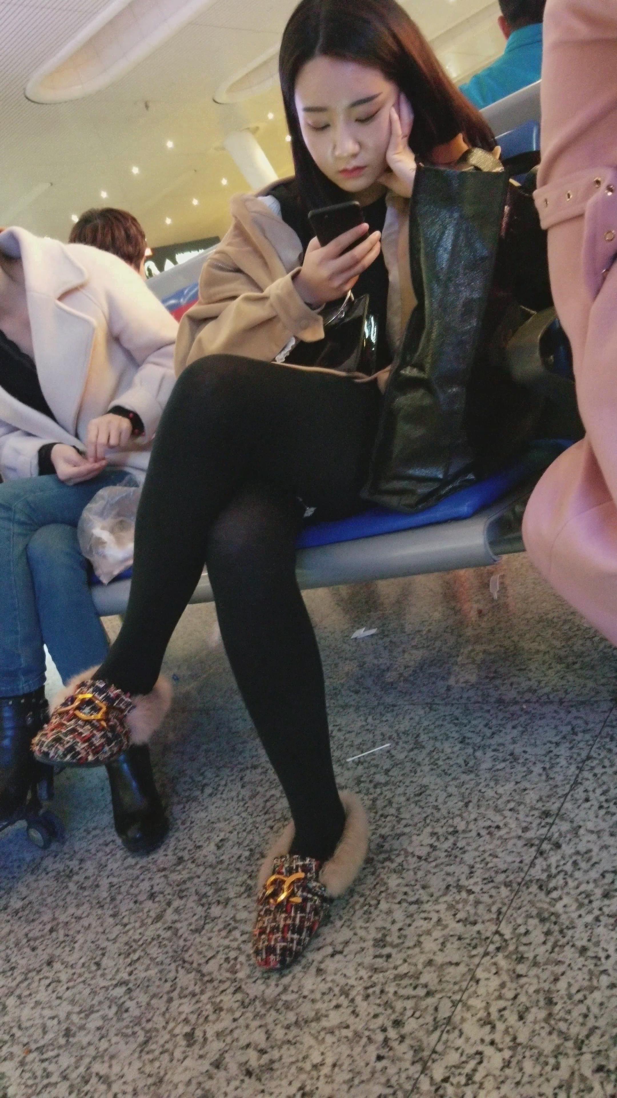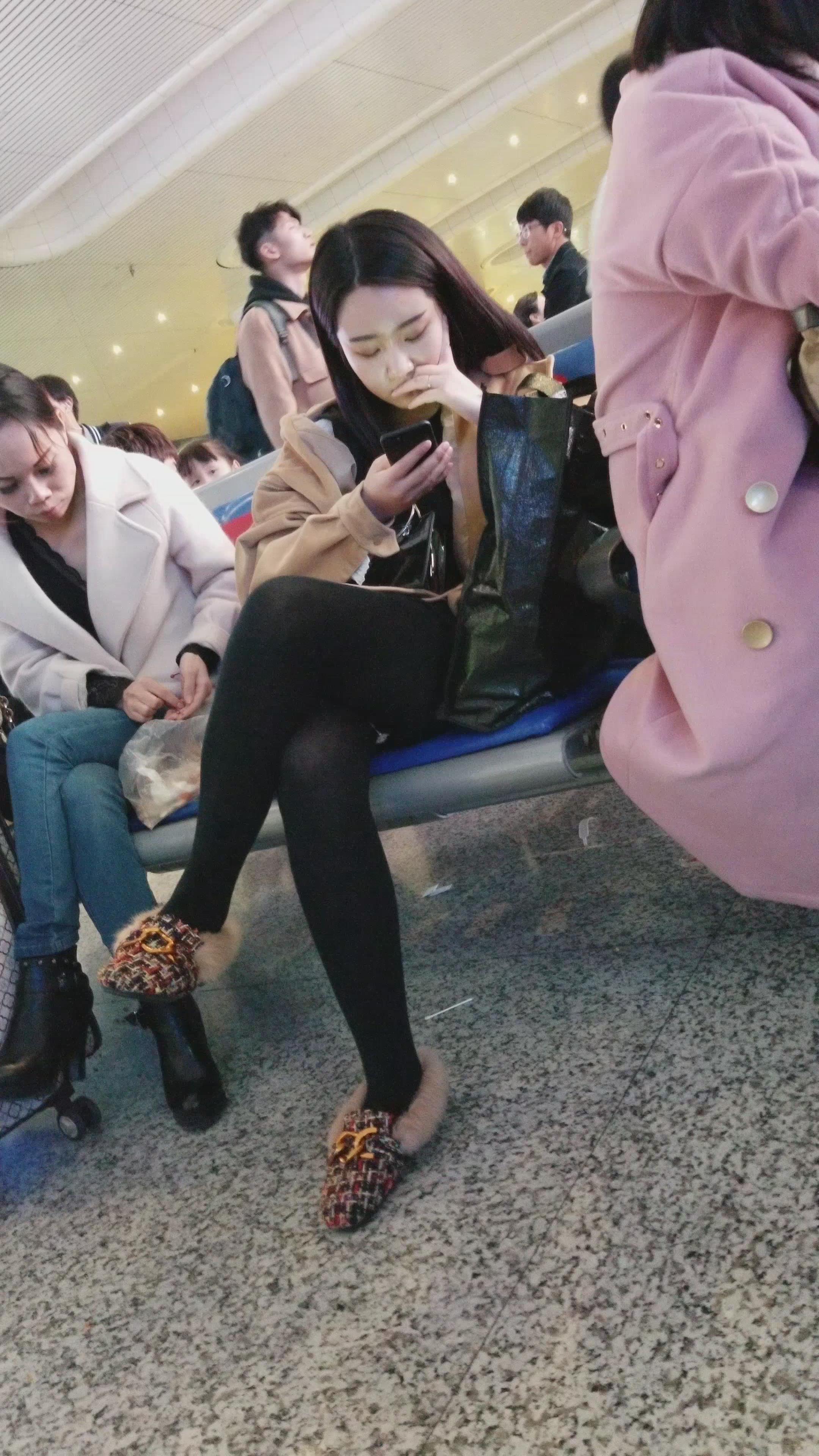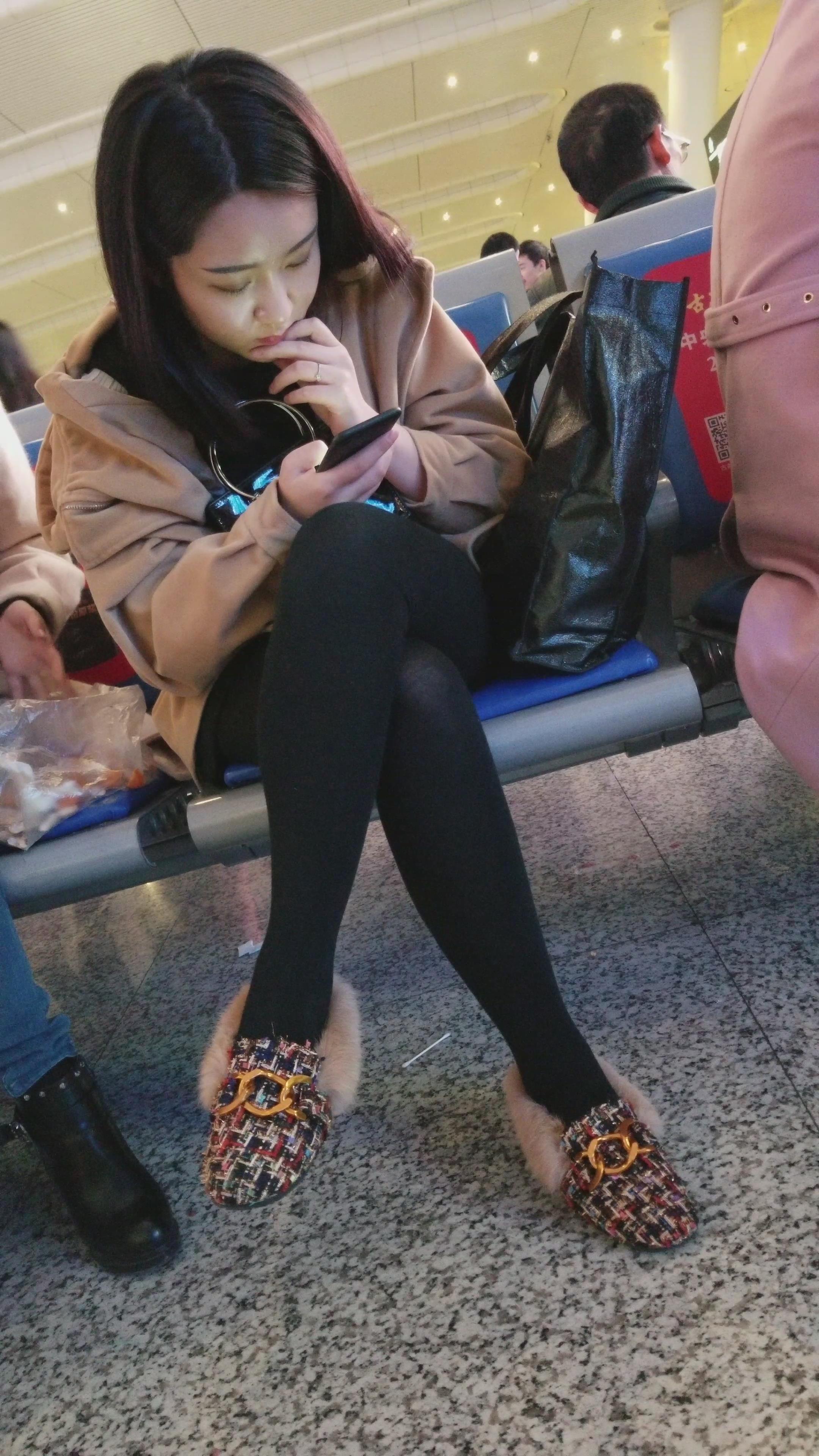 4K-看手机入迷的好身材黑色打底裤街拍美女姐姐 编号2786