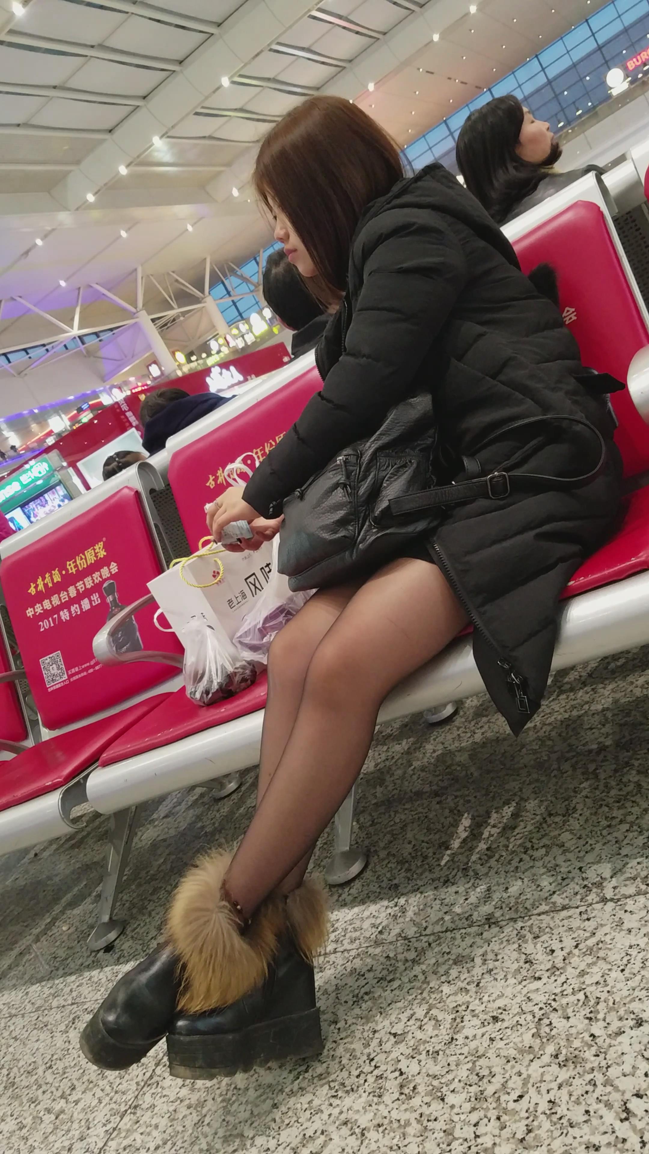 4k-超薄黑丝黑色外套街拍美腿小姐姐 编号2796