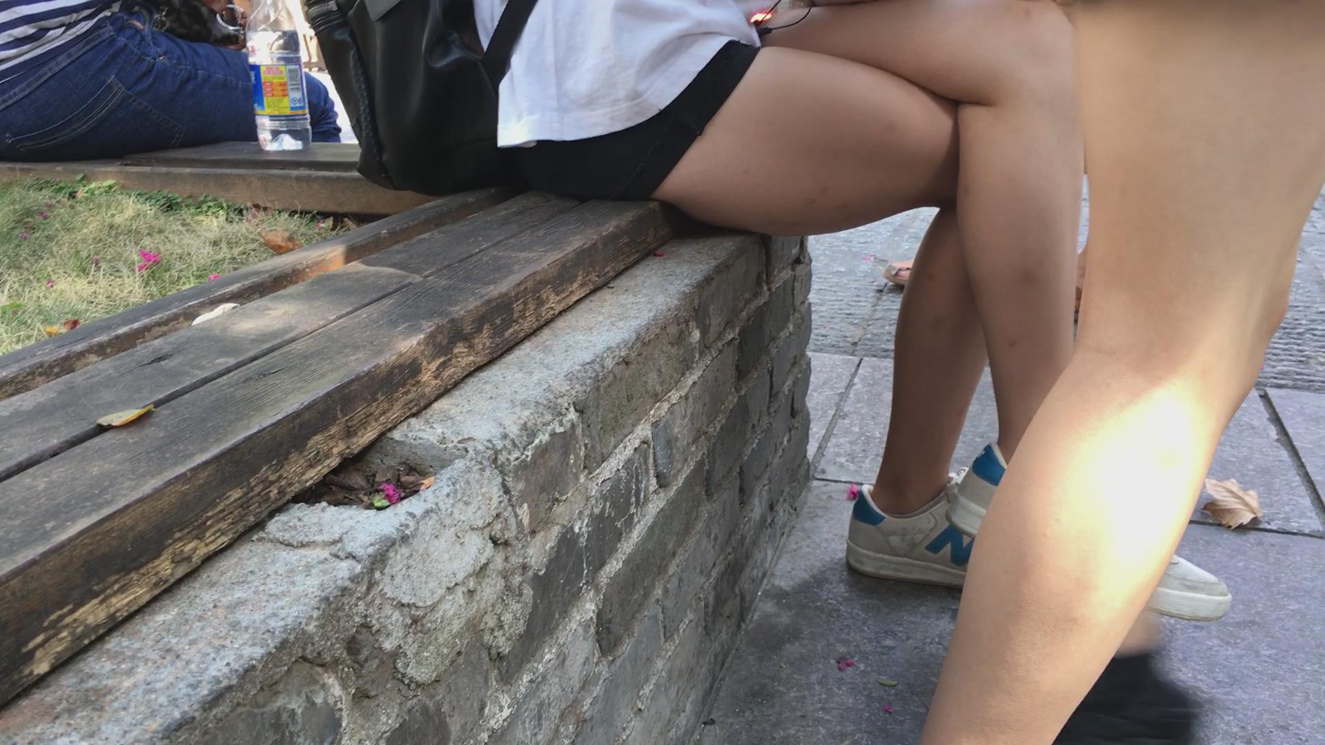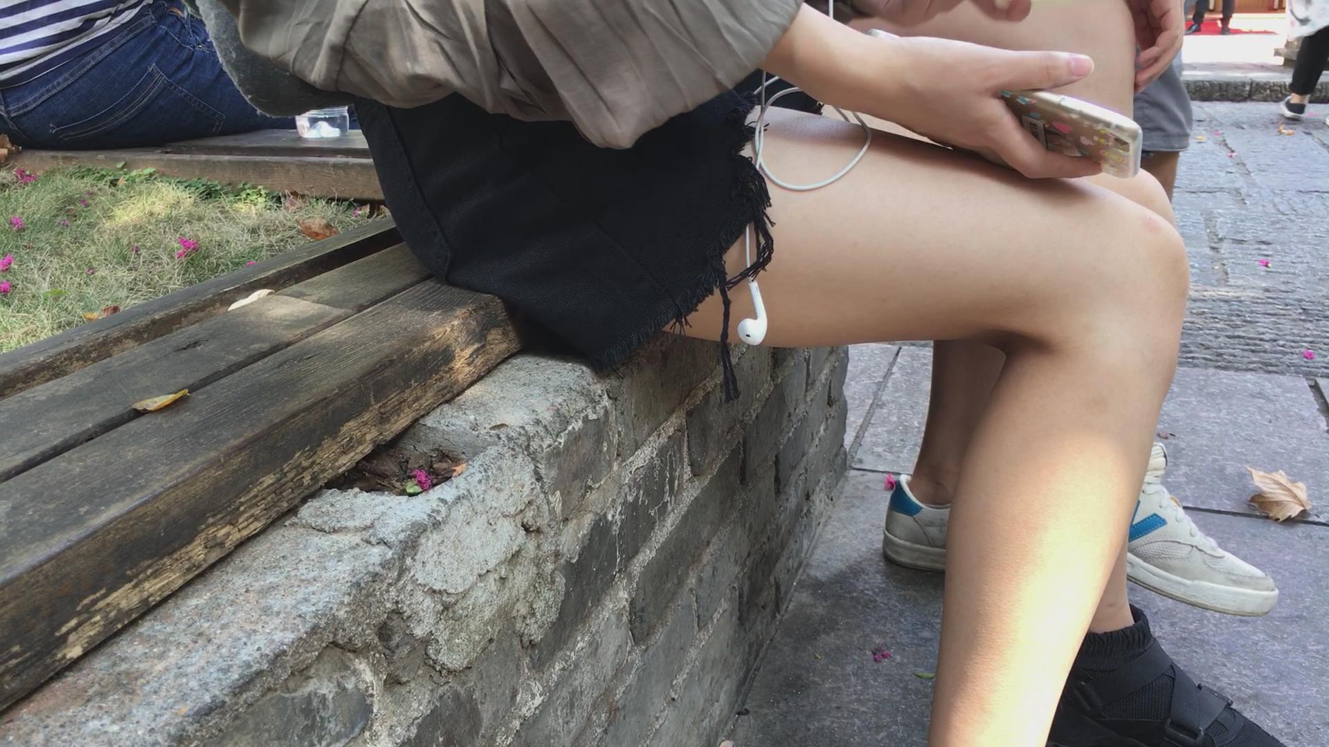 花坛边休息的白皙美腿小妹 编号4510