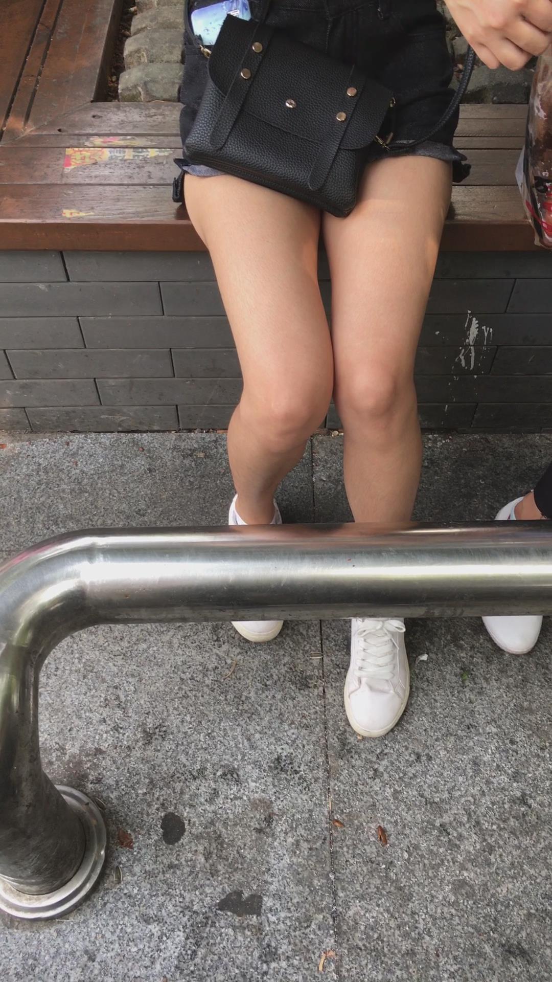 街拍白皙嫩腿热裤美眉,路边跟姐妹撸火腿肠 编号4514