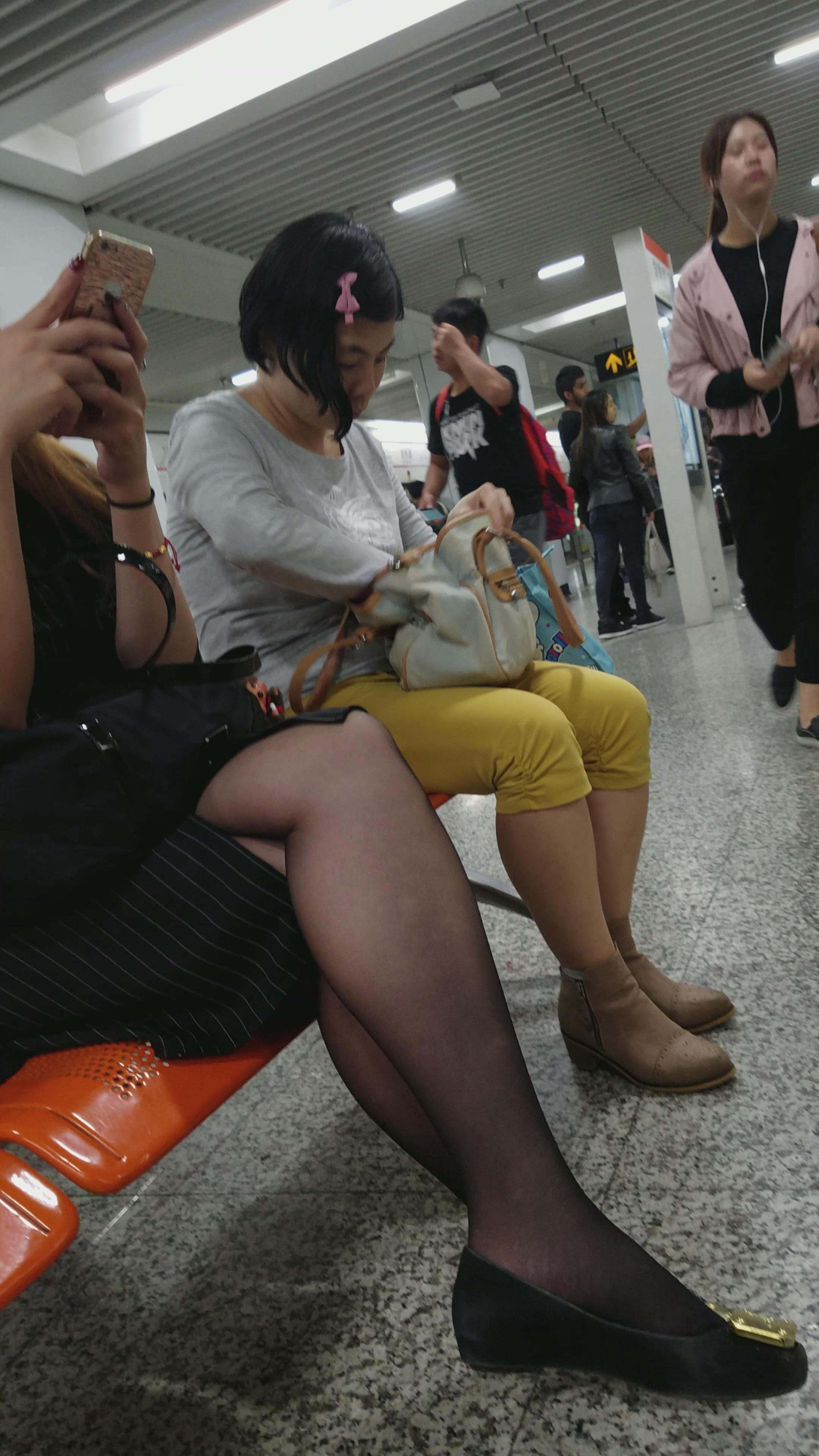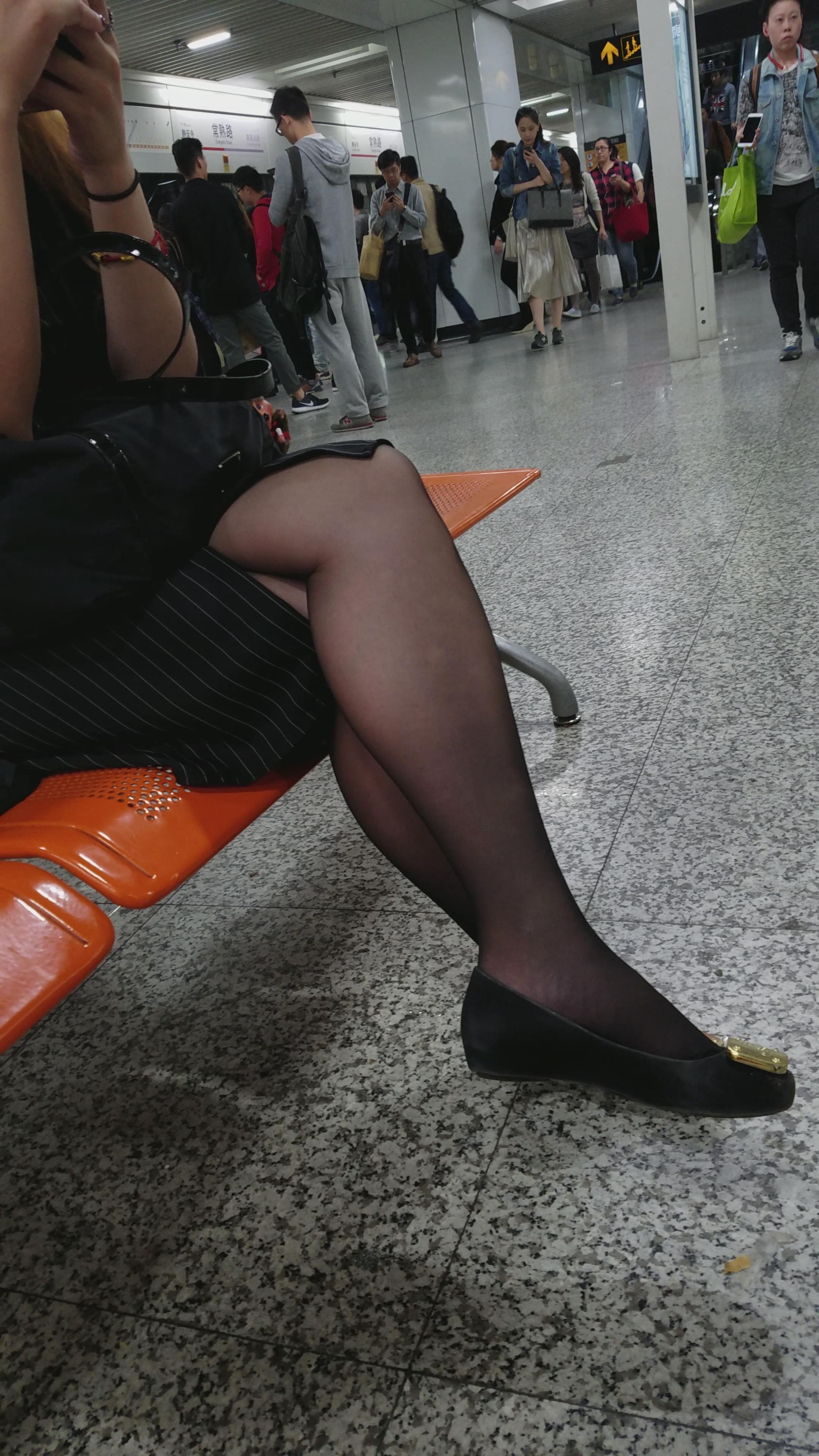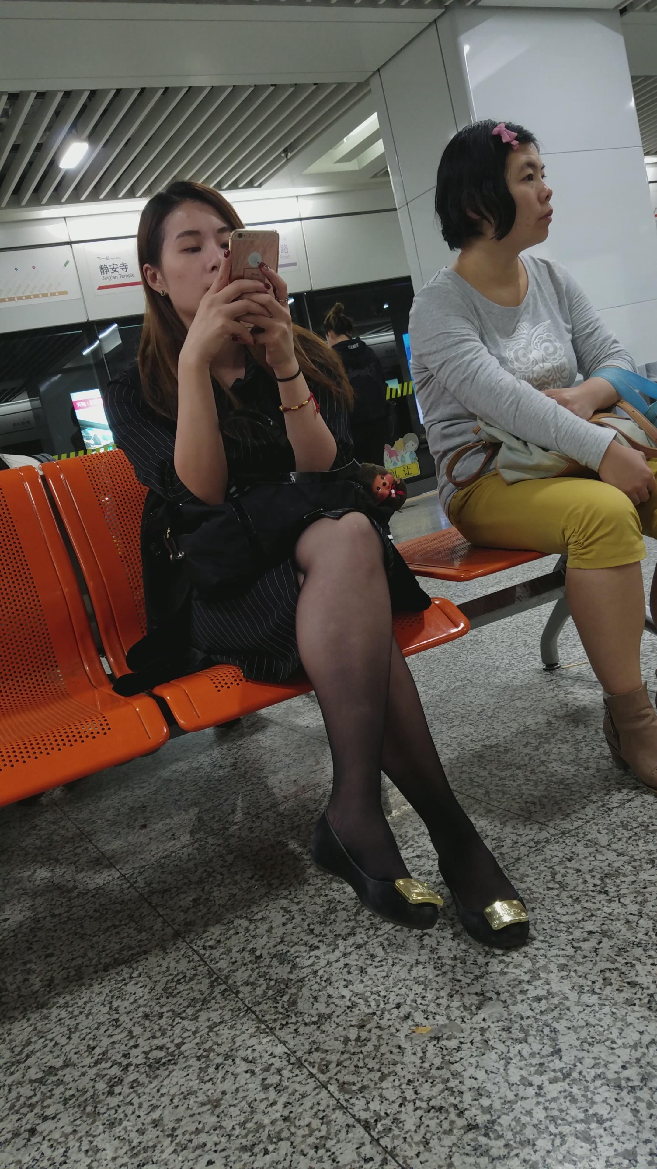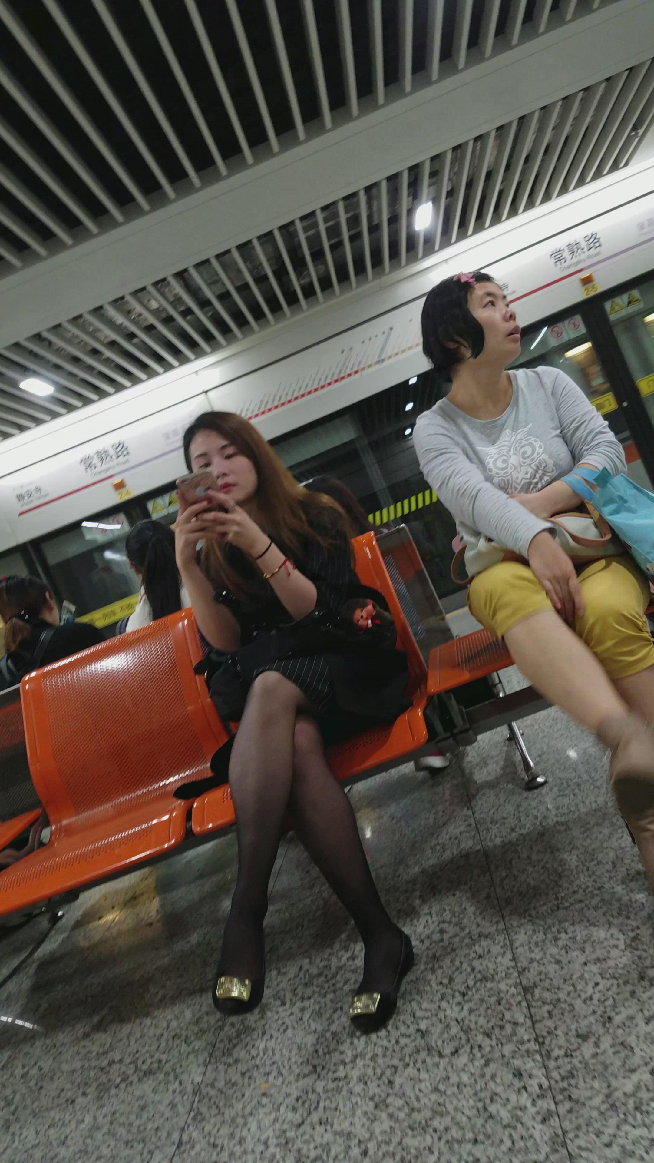 4k超清,高铁站候车室拍摄黑丝袜性感美女 编号2890