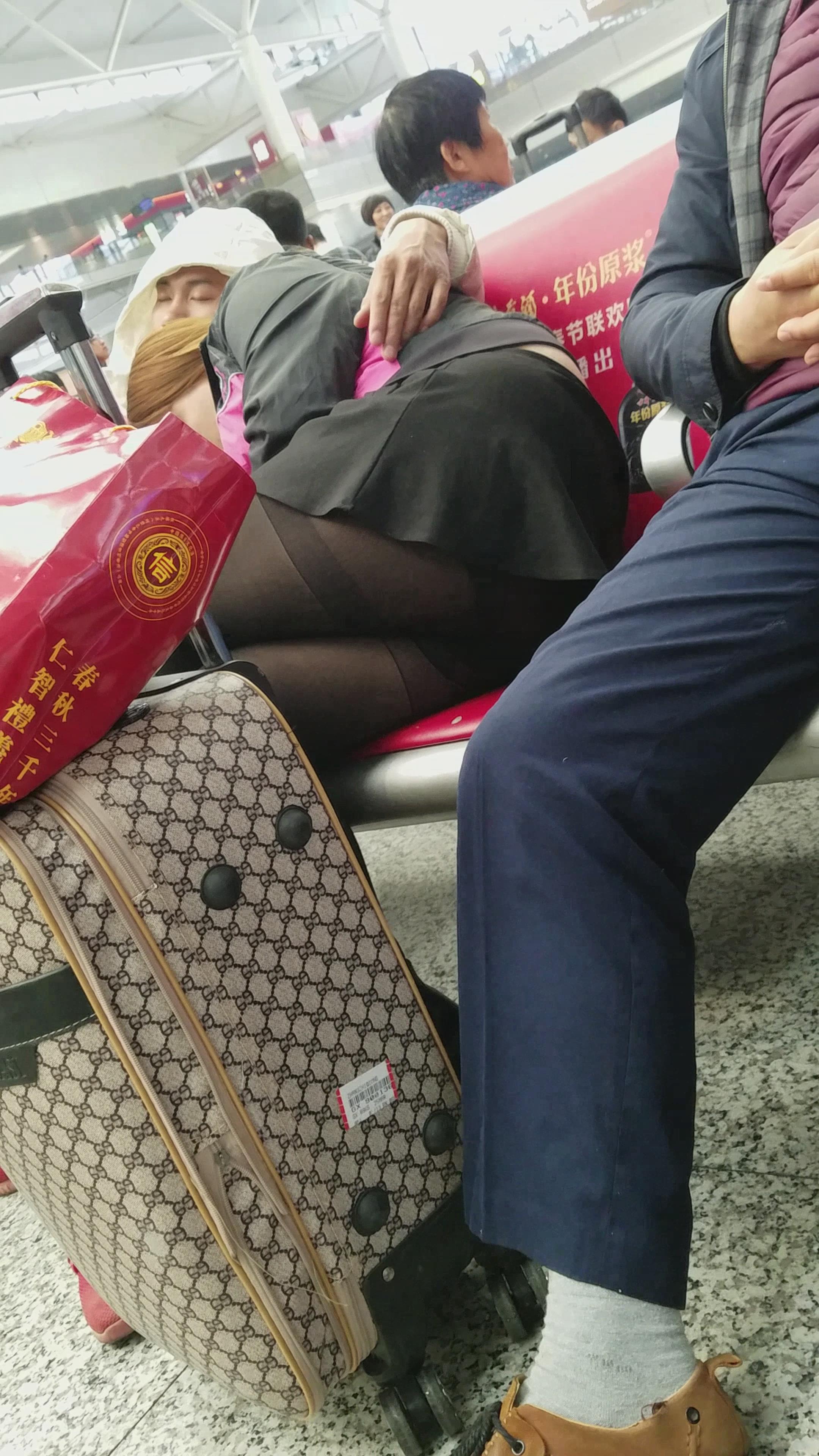 4k超清,高铁站候车室内扑倒男友怀里睡觉的黑丝丰腴肥妹 编号2905