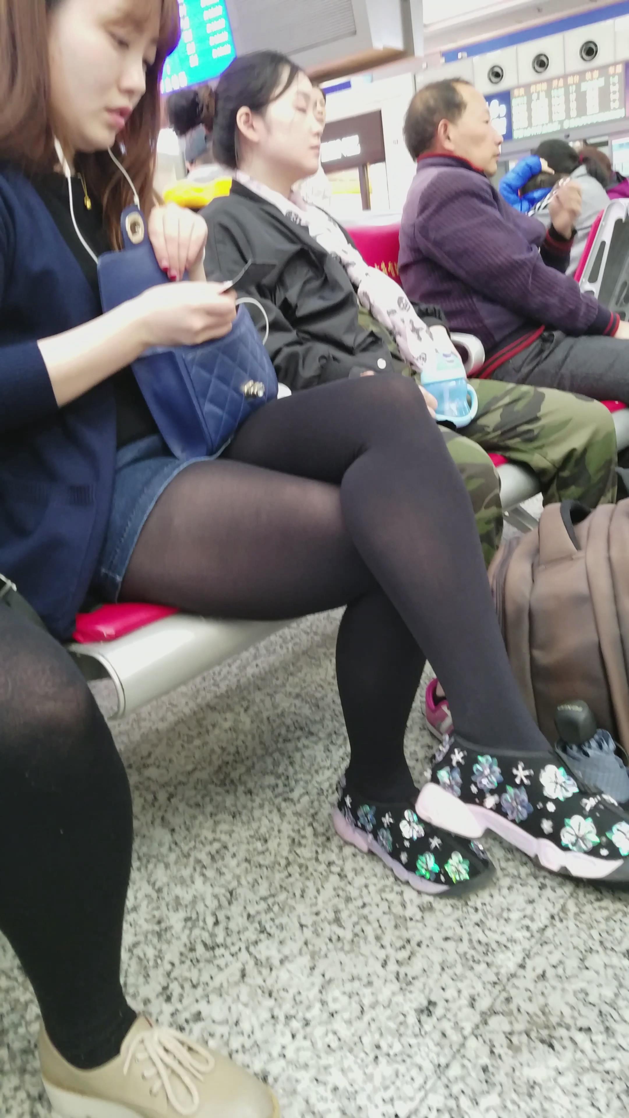 4k-黑色裤袜牛仔短裙美女 编号2913
