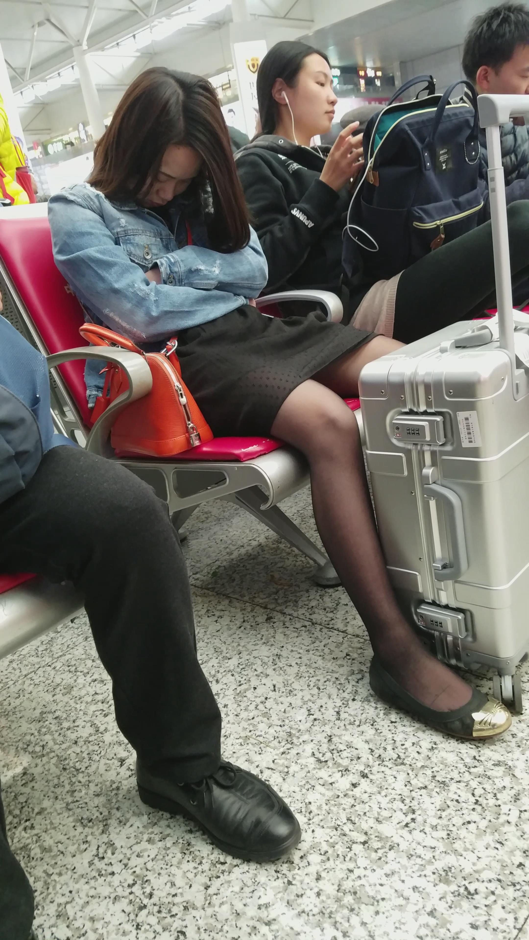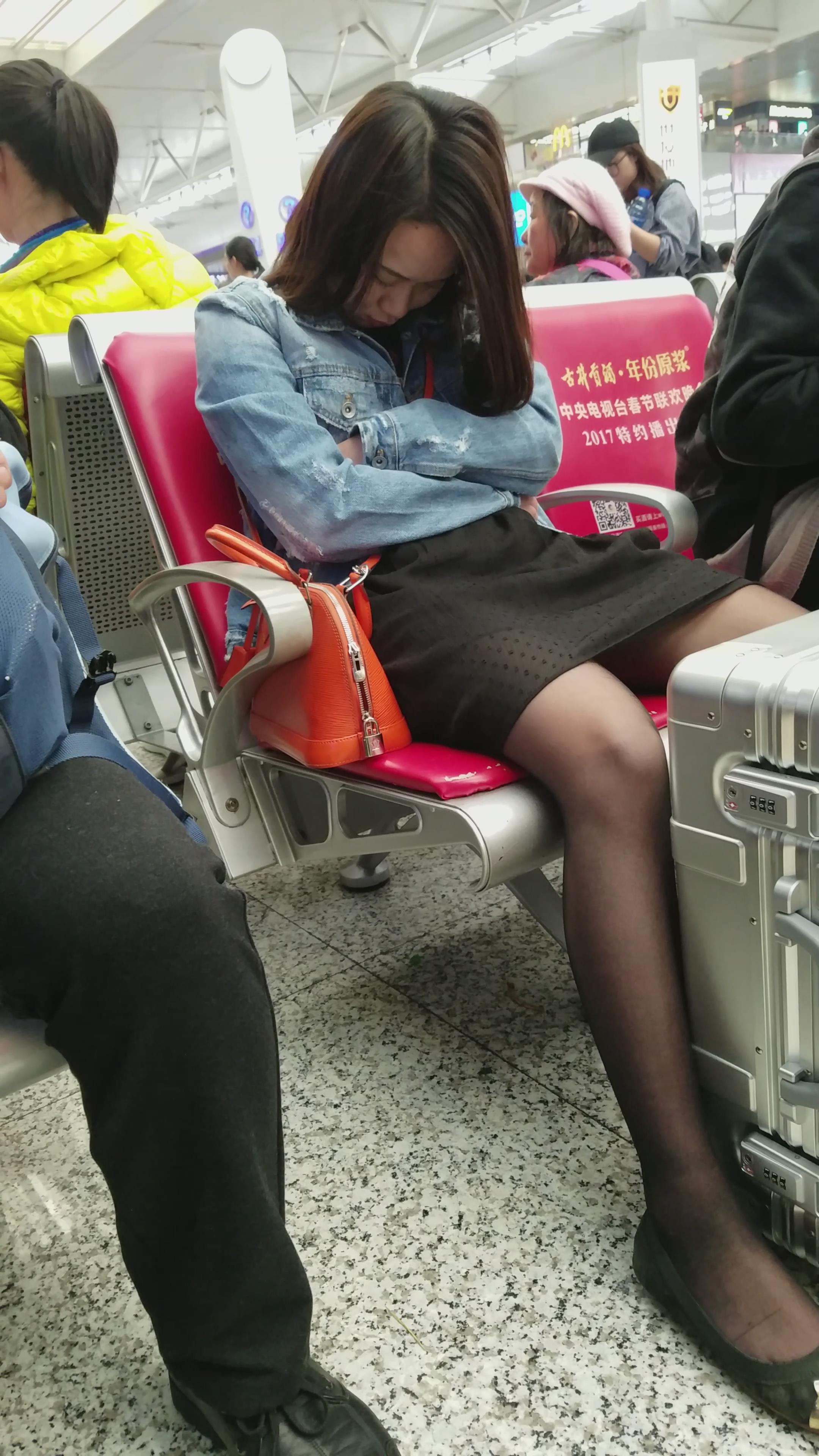 4k-高铁站等车睡着了的黑丝短裙美女 编号2929