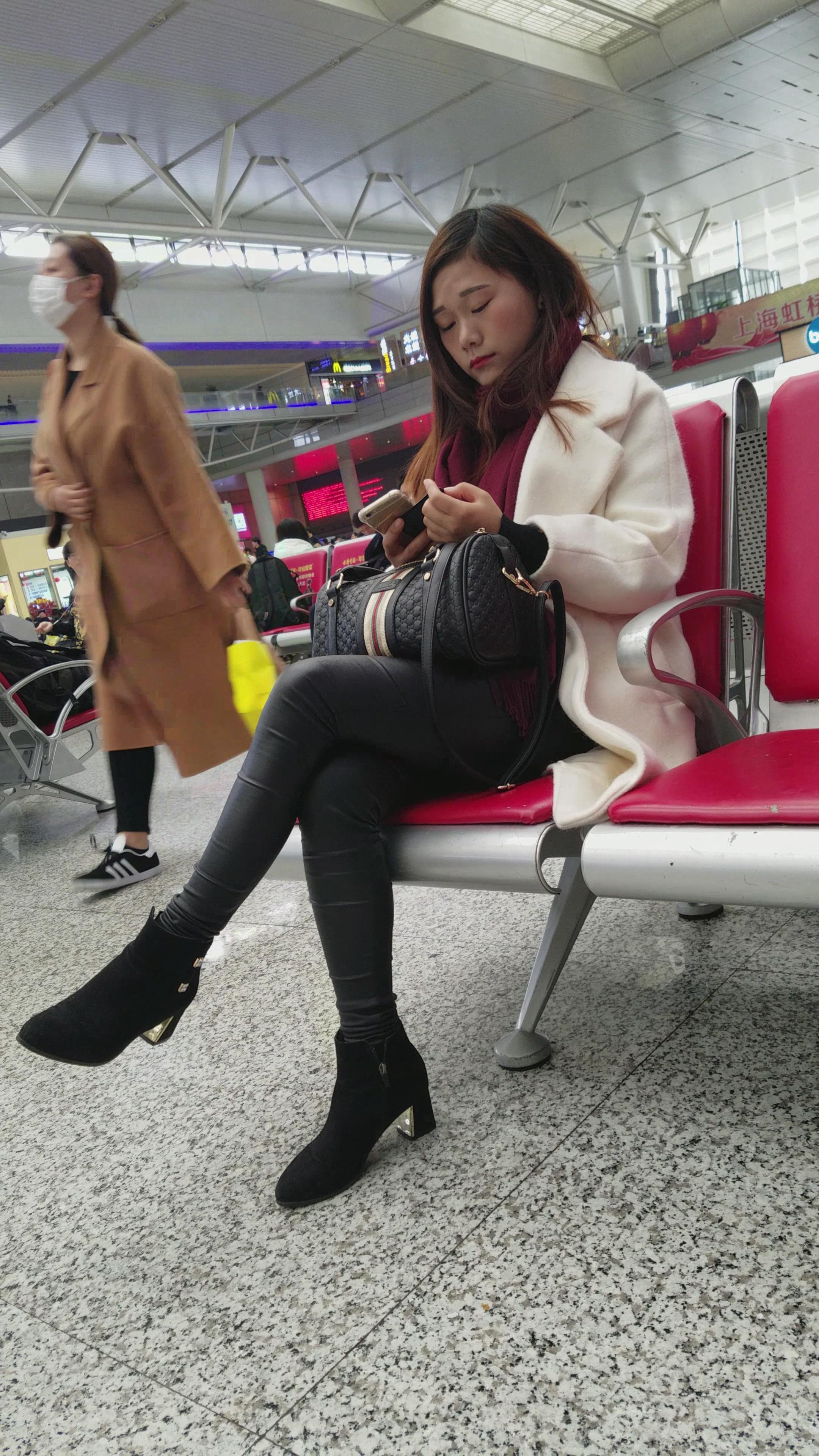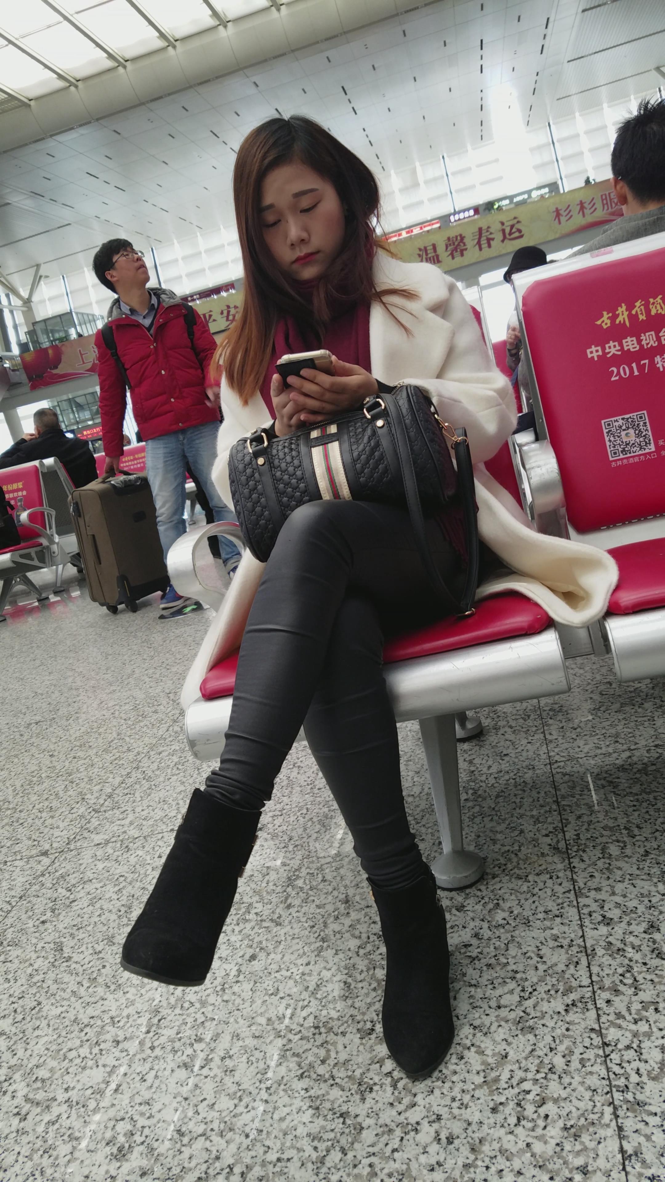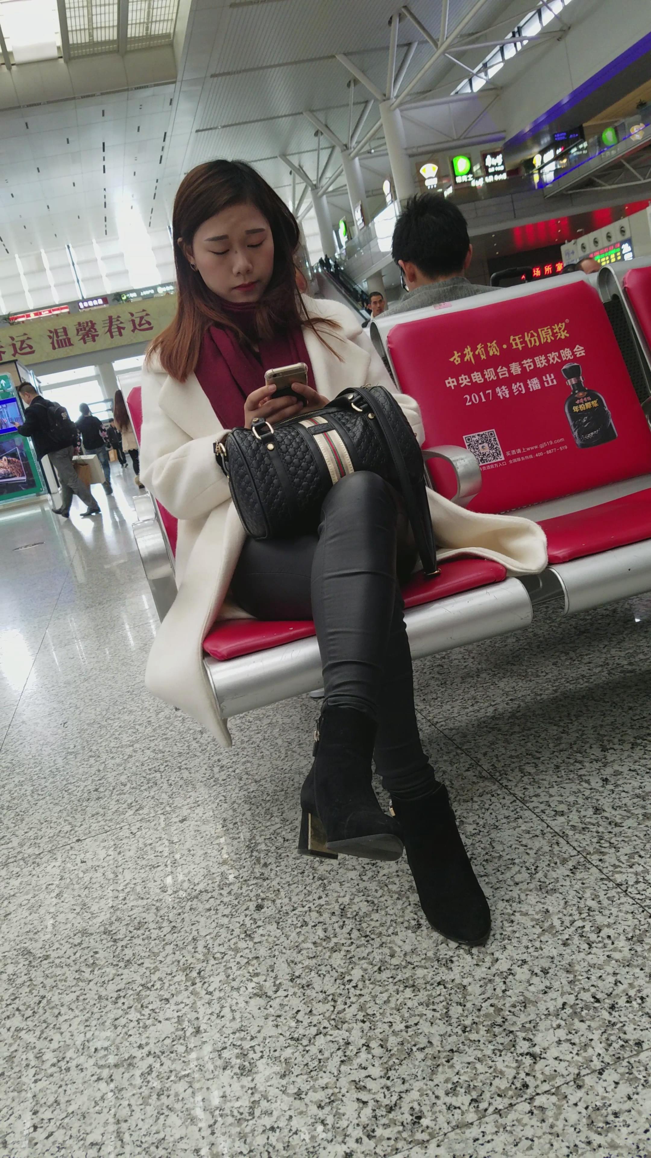 4k-高铁站候车室拍摄小眼睛黑色紧身裤美眉 编号2956
