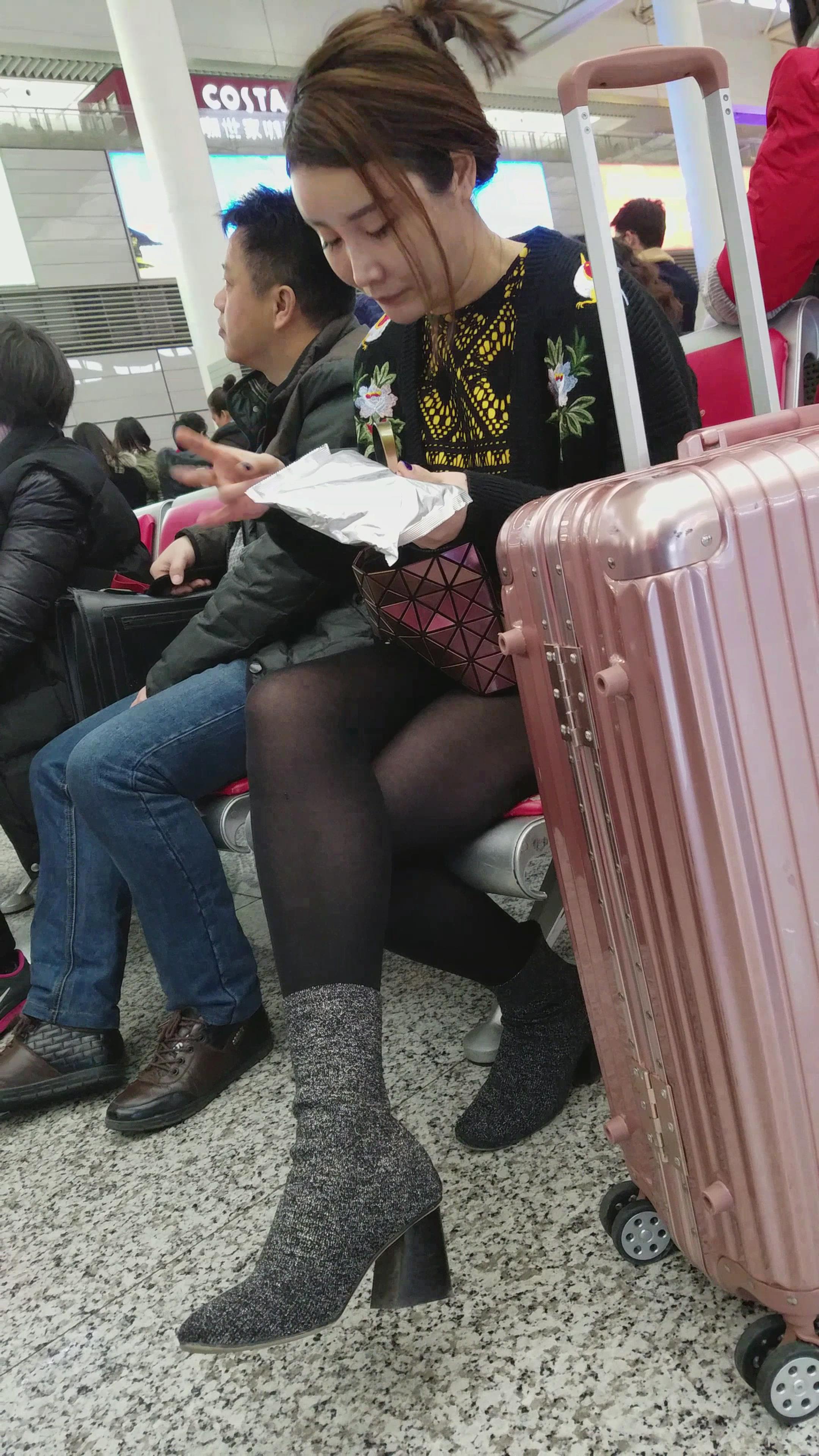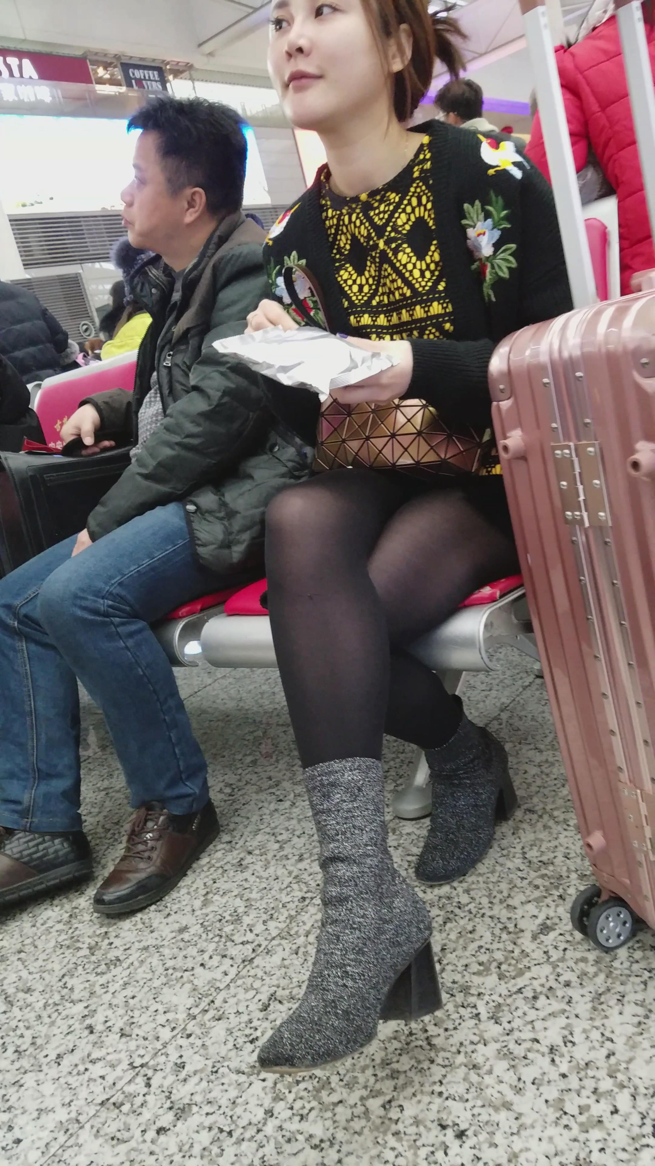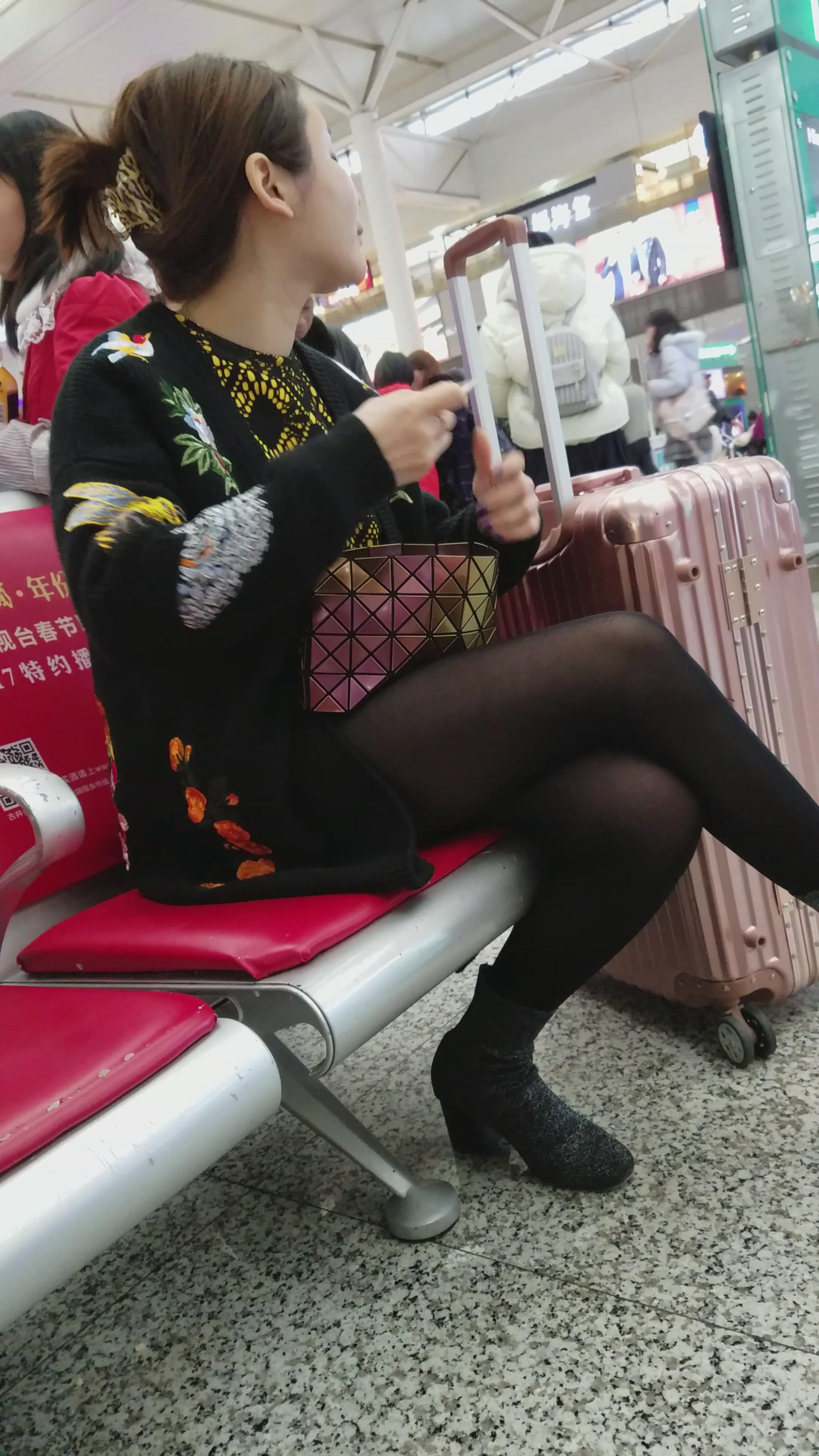 4k-高铁站候车室拍摄美腿黑丝美女 编号2958