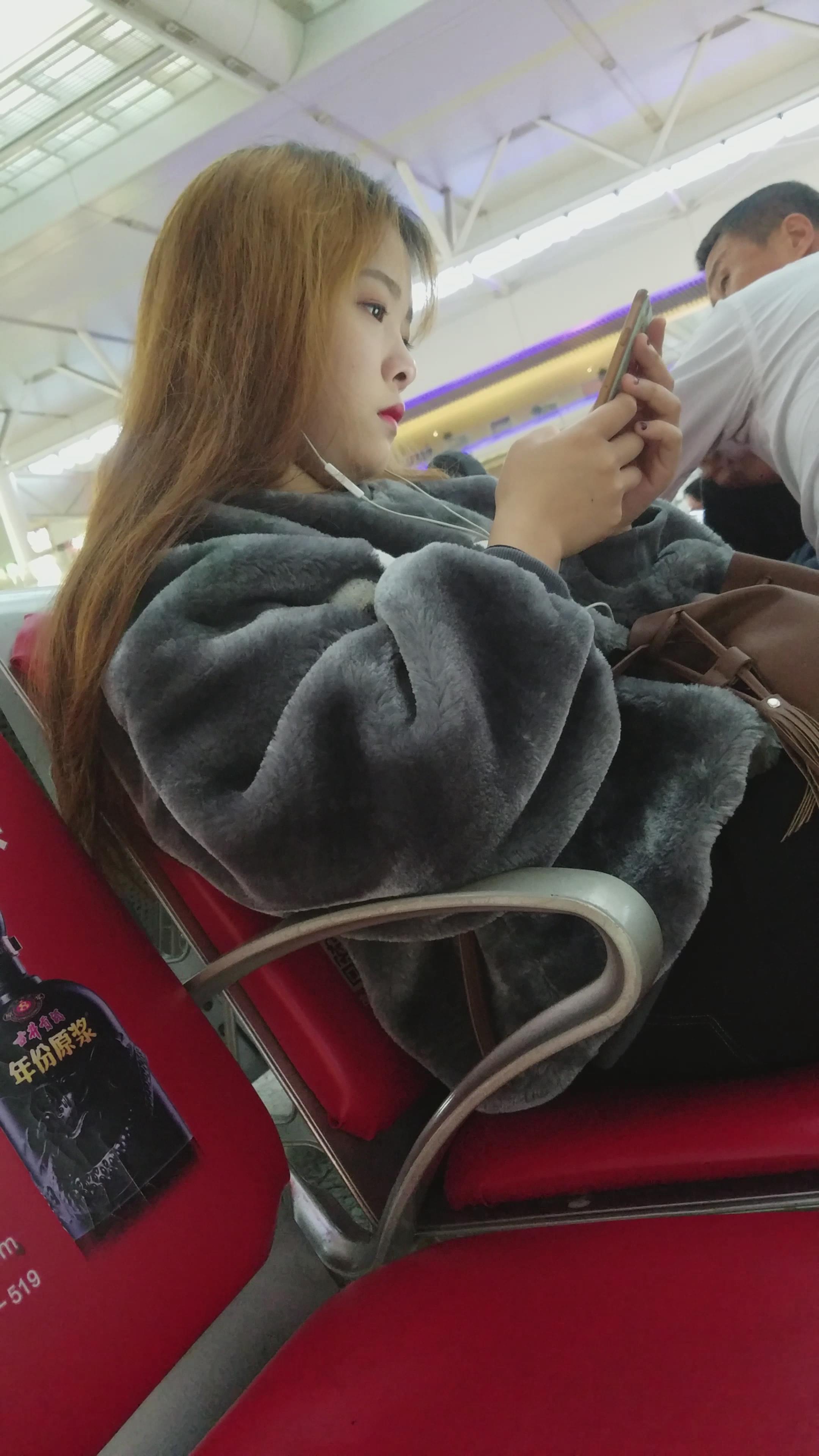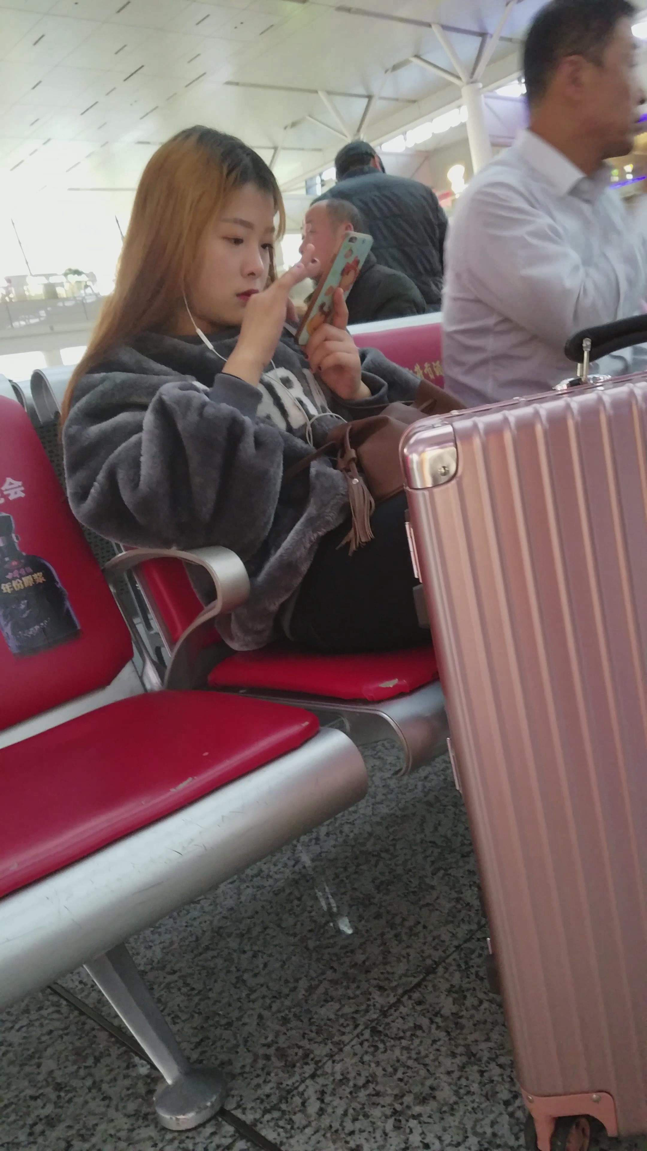 4k-车站候车室玩手机的漂亮女孩 编号2963