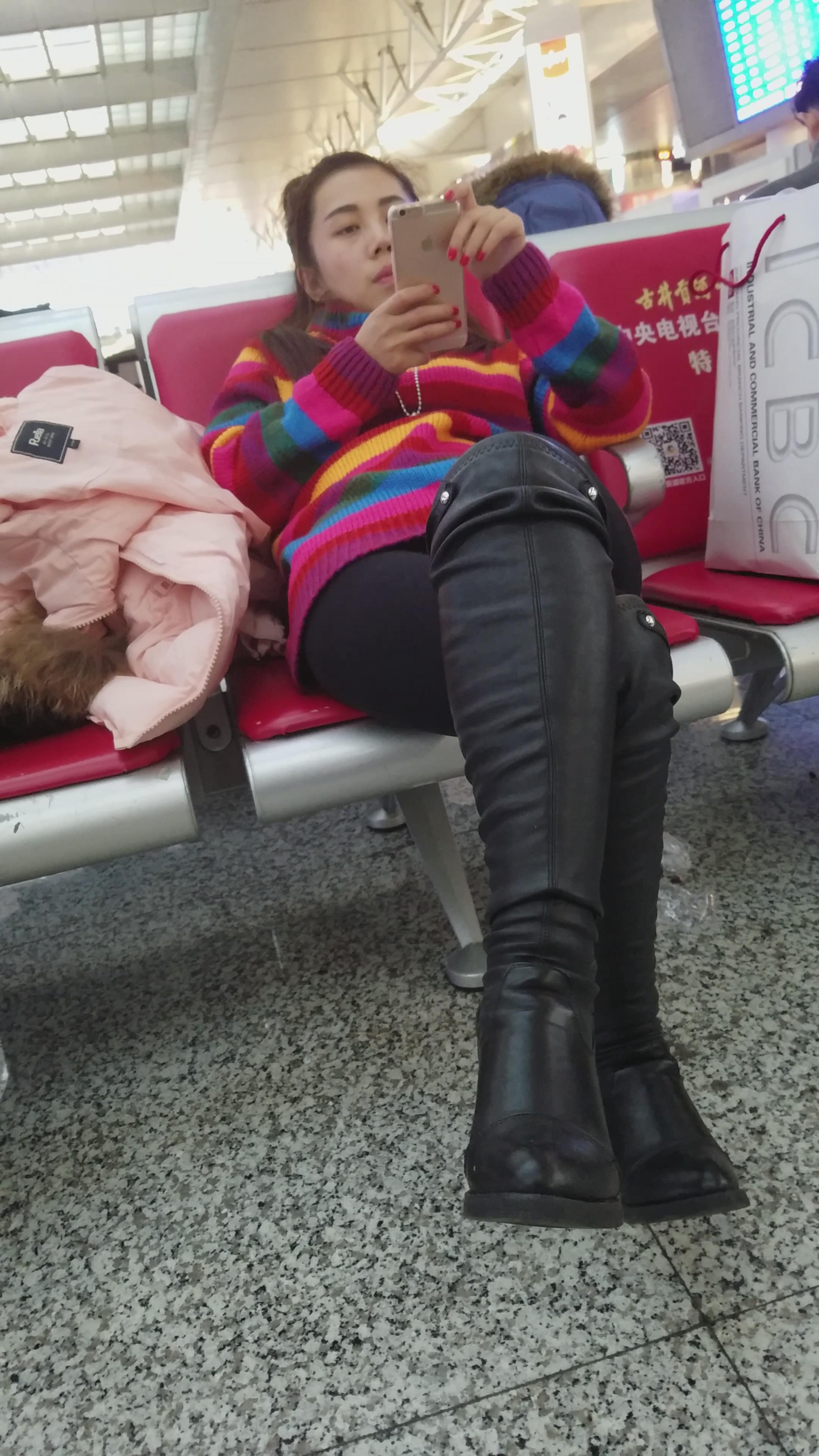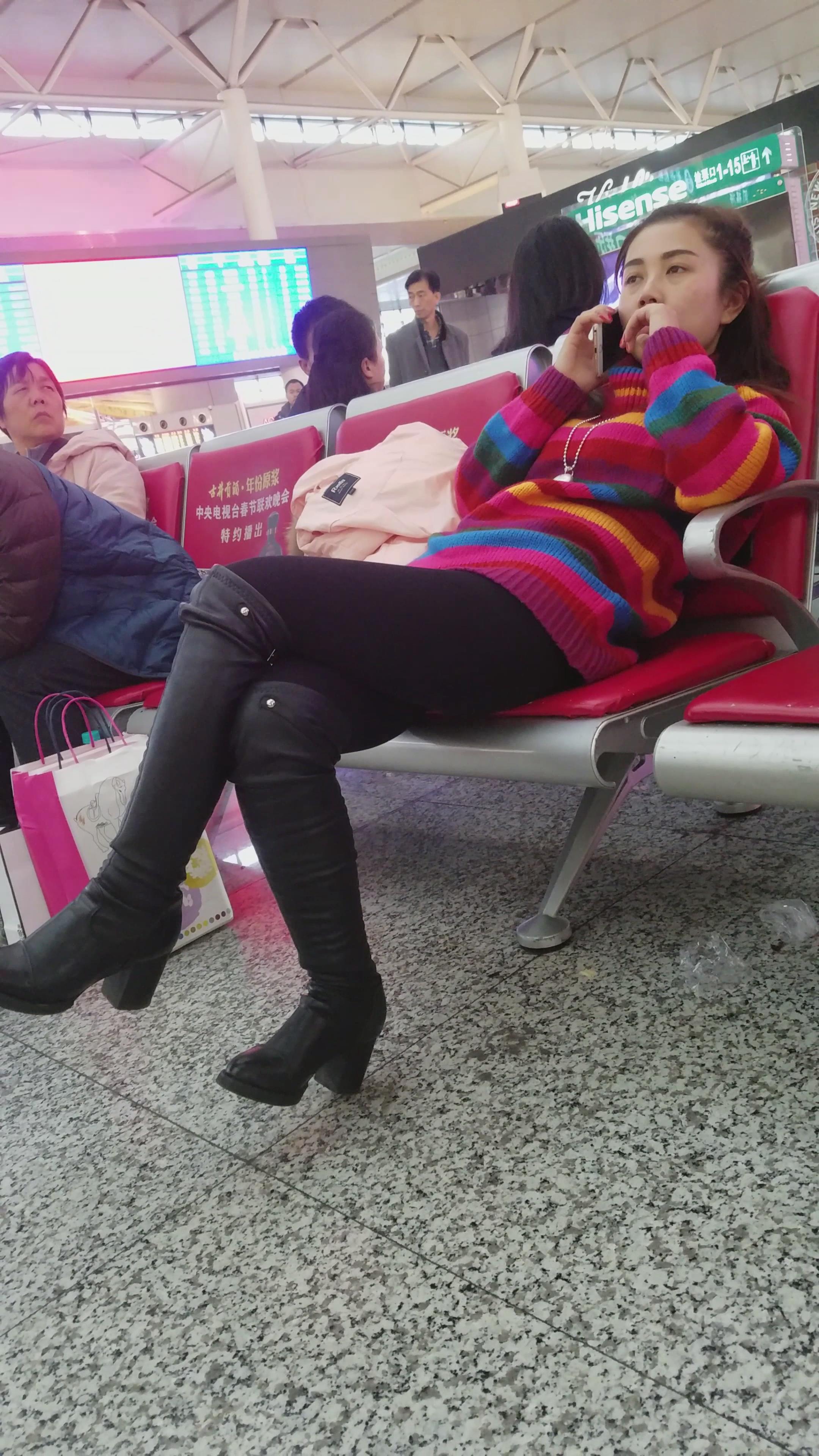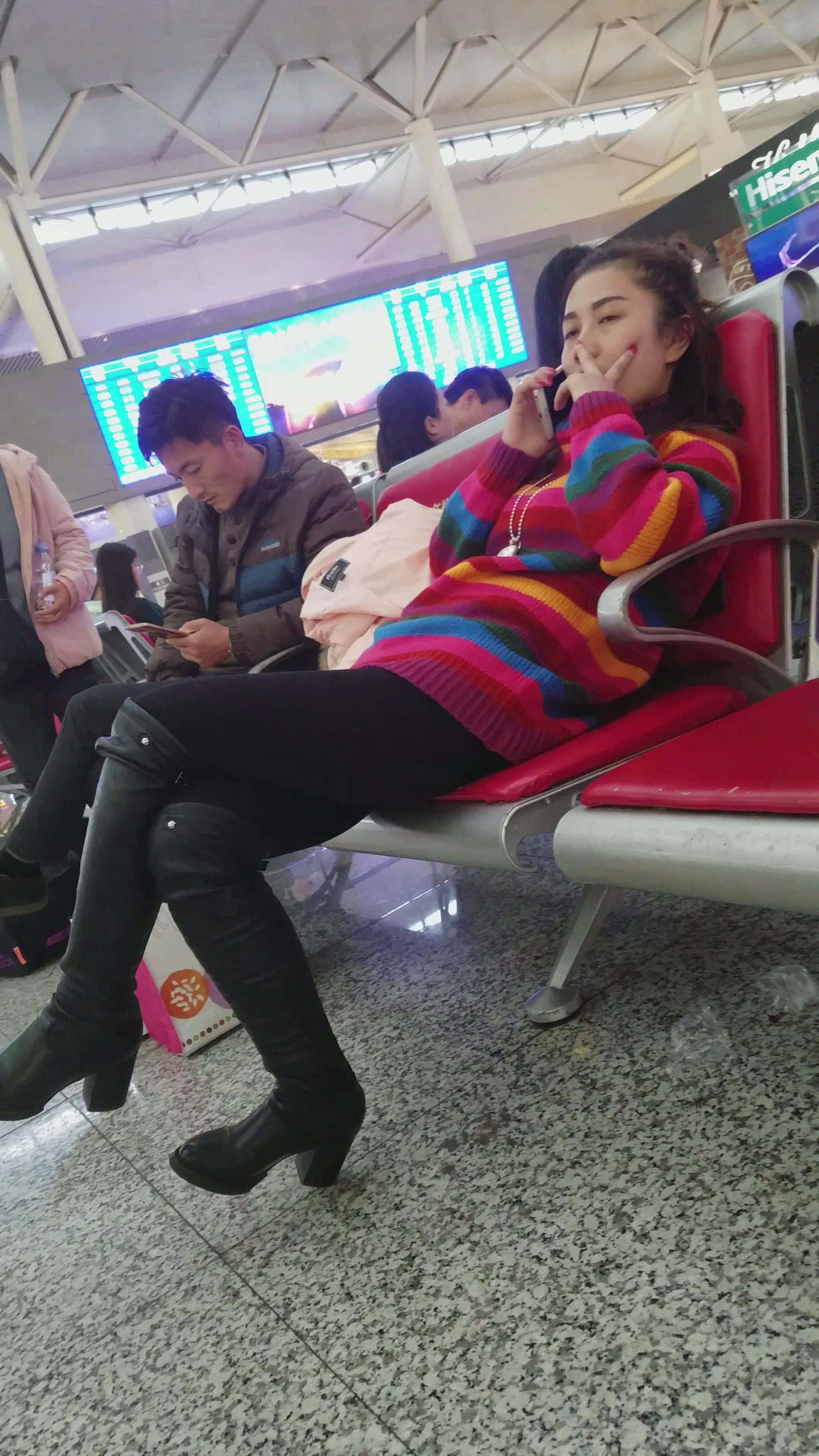 4k-车站候车室葛优躺的美腿美女姐姐 编号2971