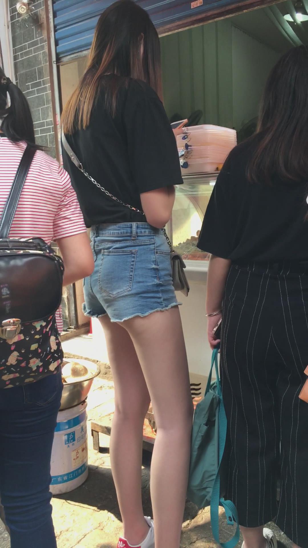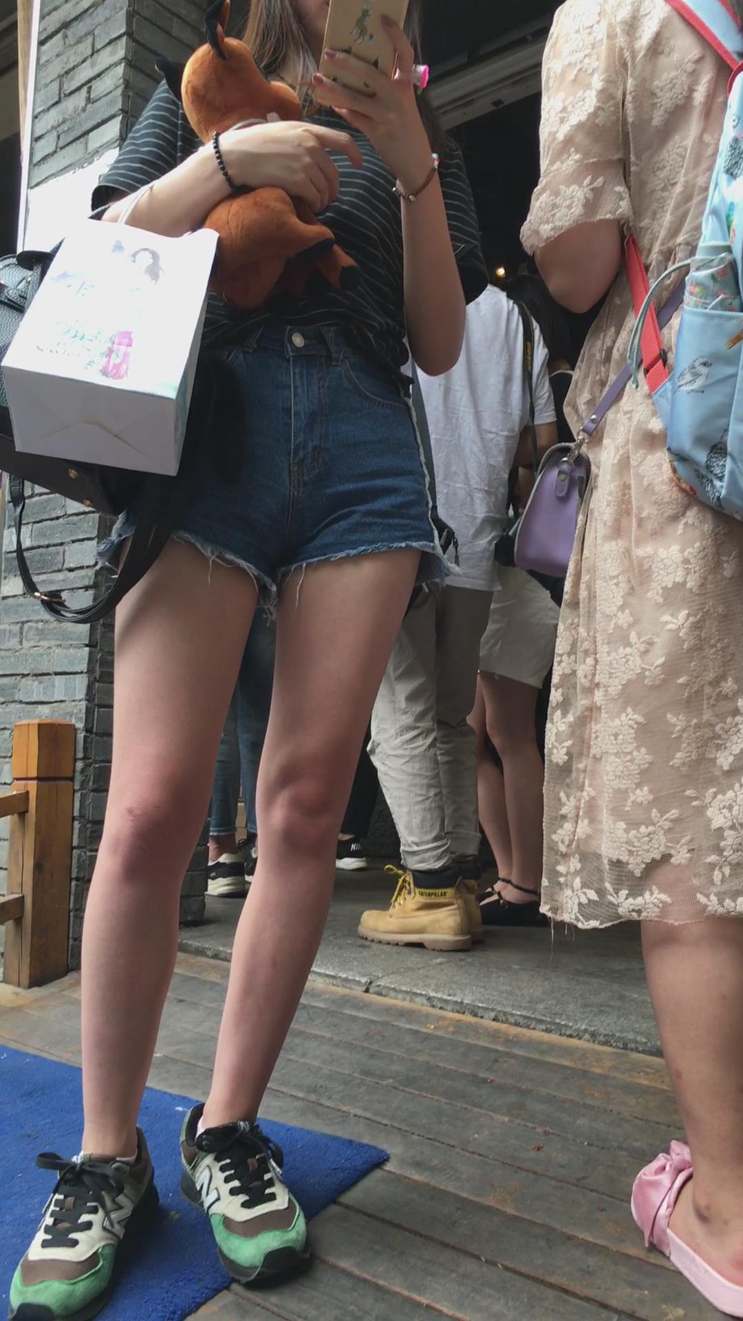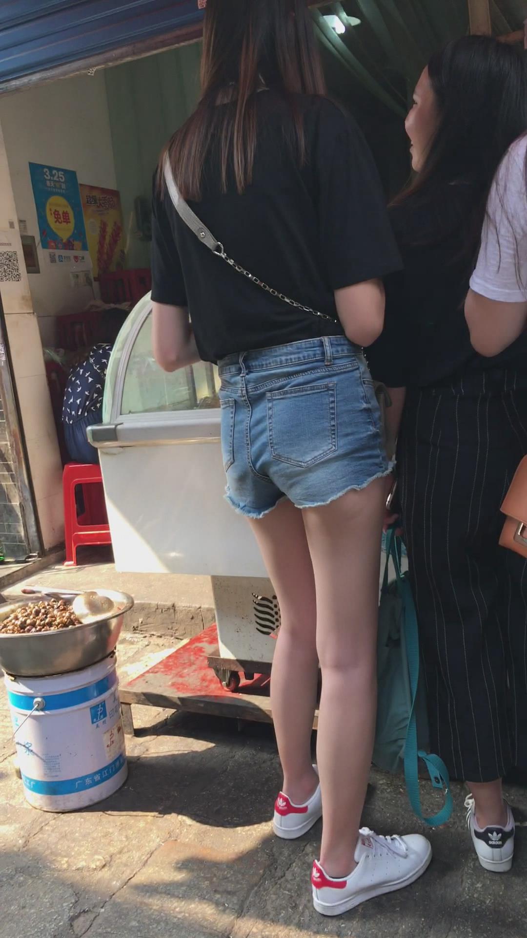 一箭双雕两位超短牛仔热裤美女,粉色内内已露出 编号4527