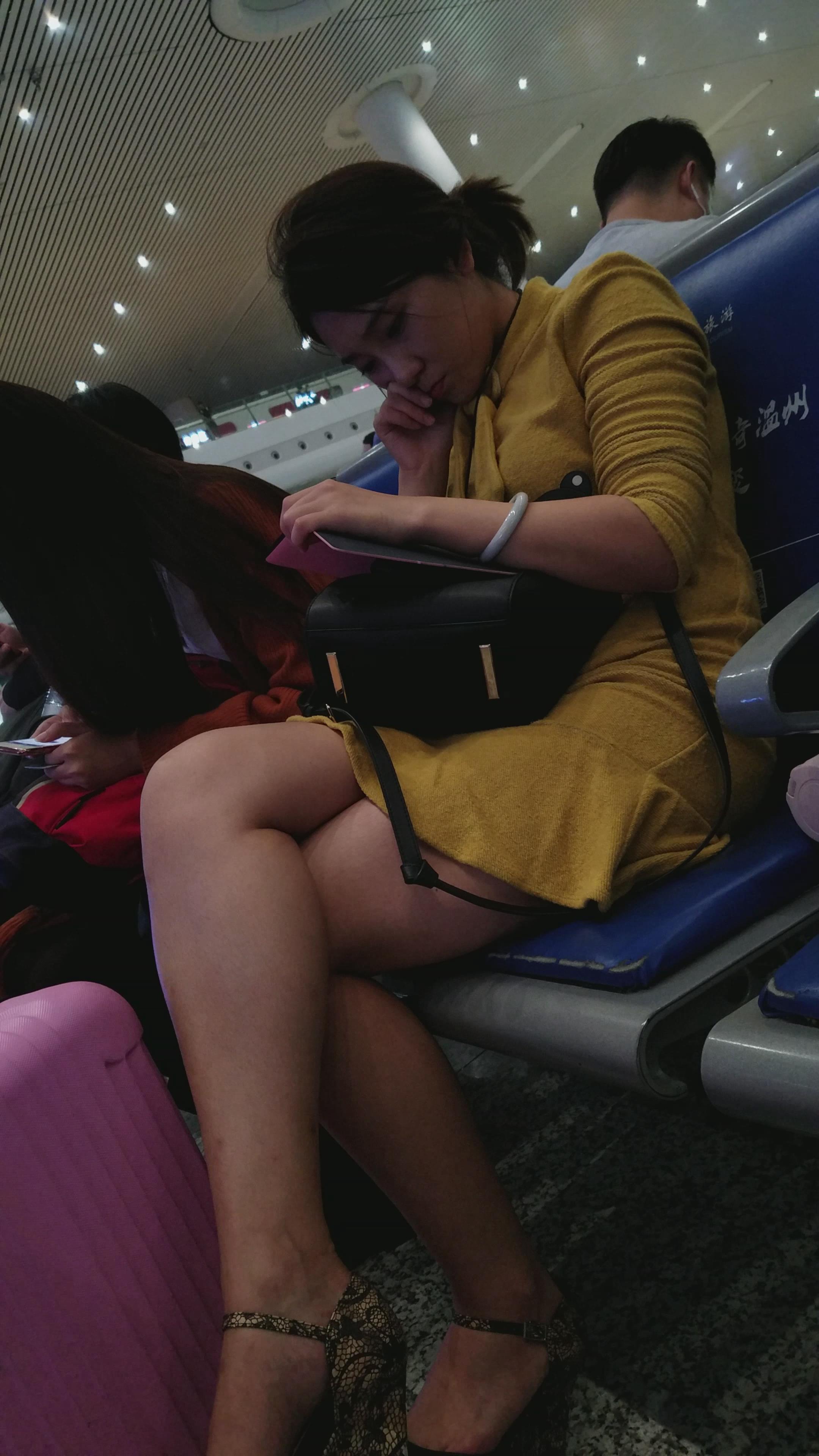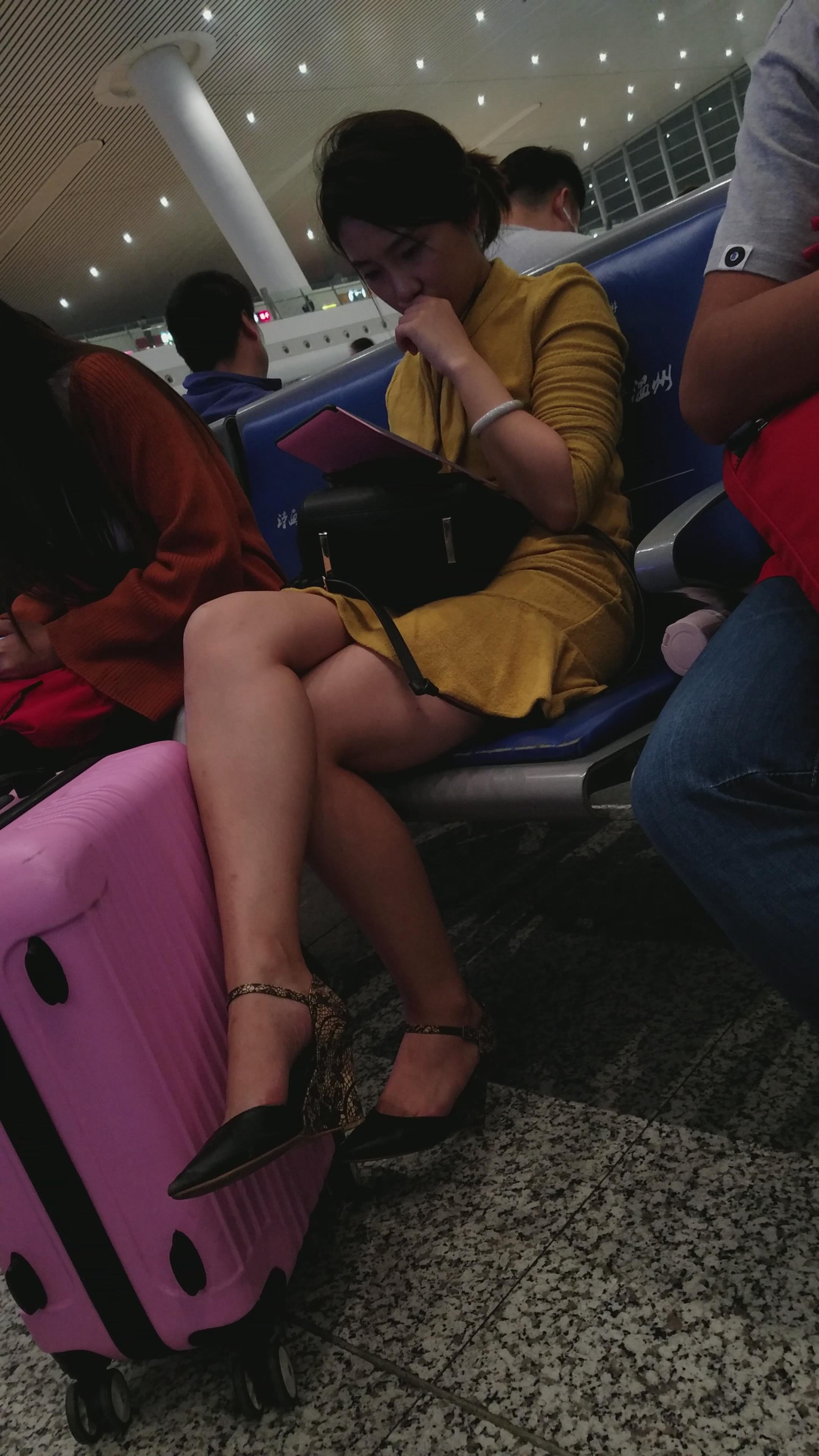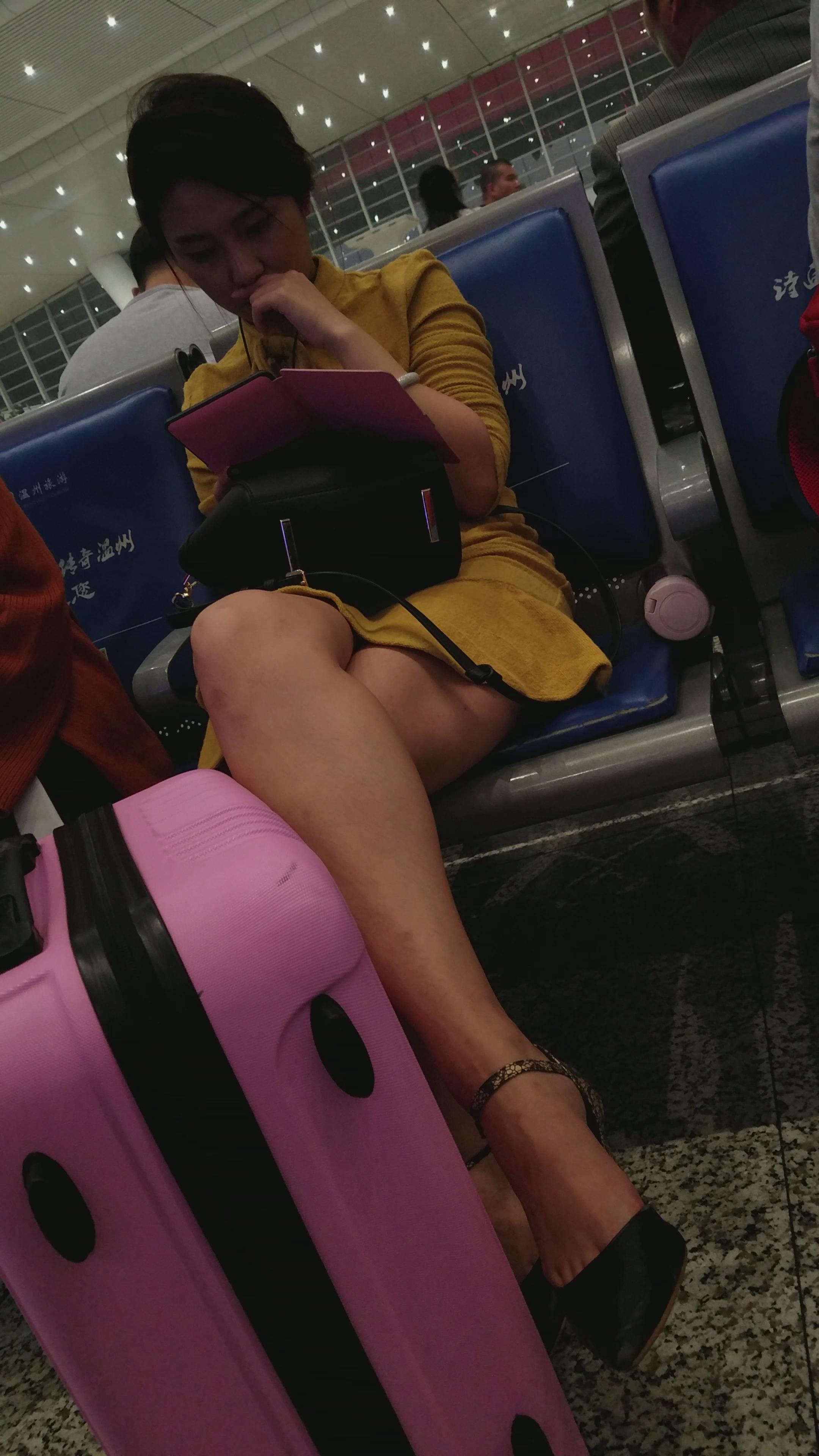 4k-高铁站候车室拍摄颜值爆表的黄衣美腿高跟鞋少妇 编号2989