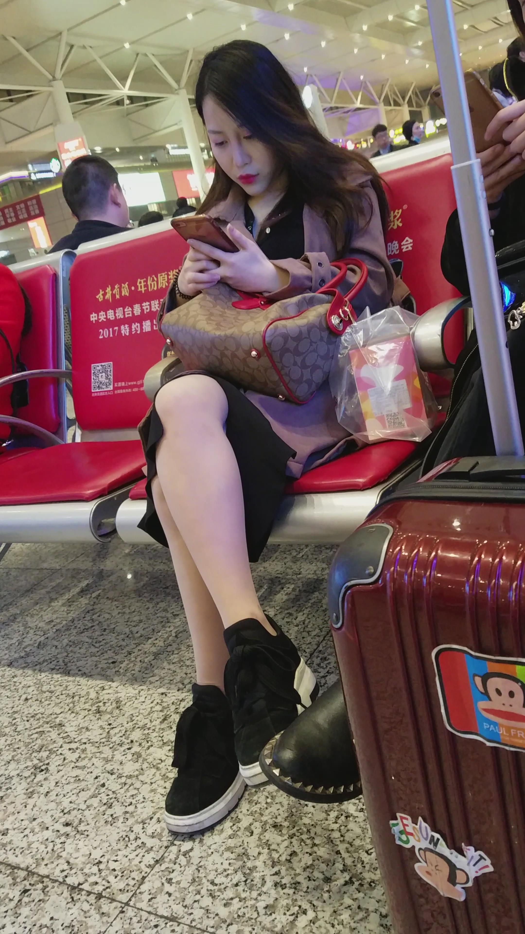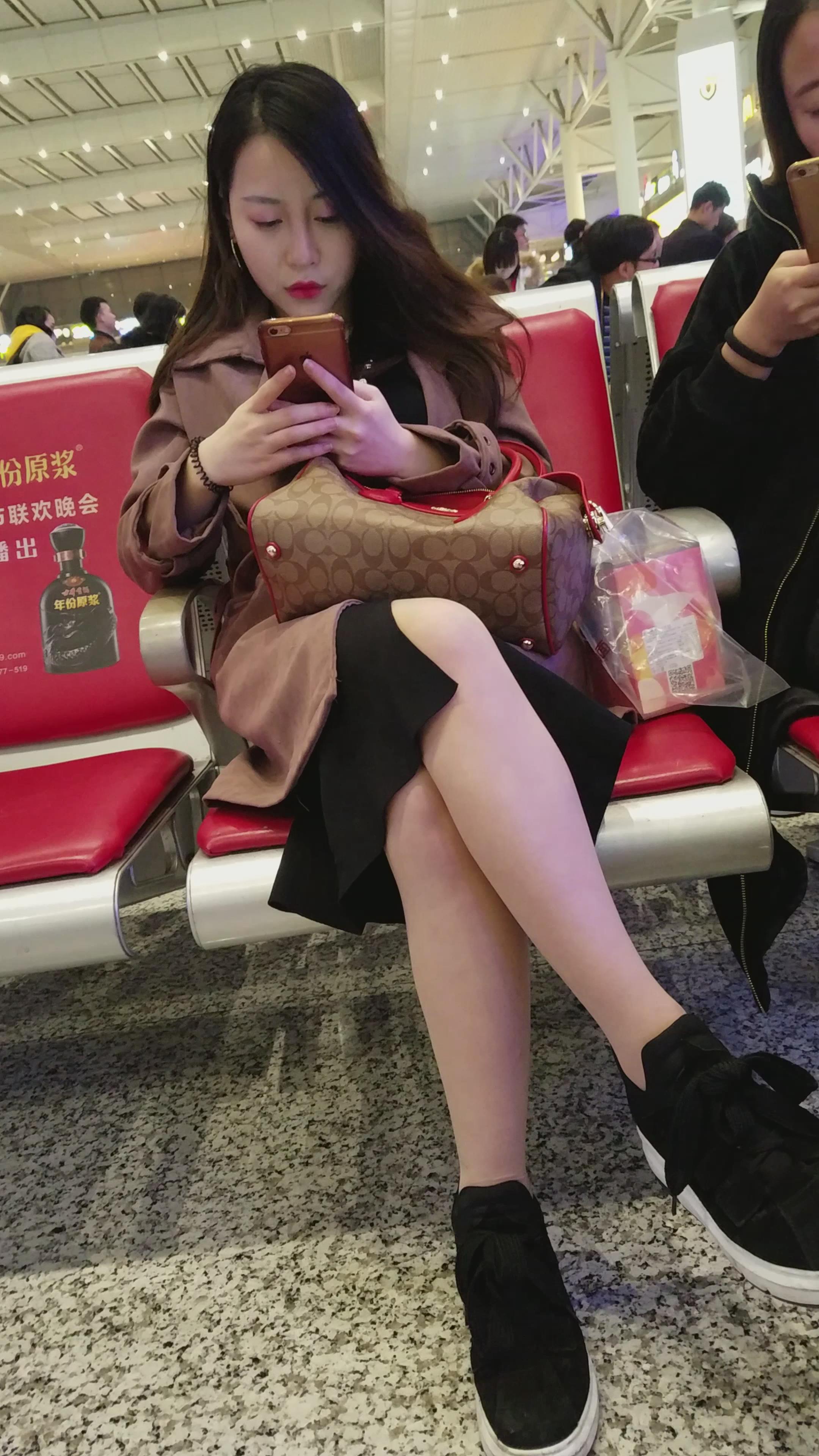 4k-高铁站候车室拍摄极品白腿甜美大美女 编号2993