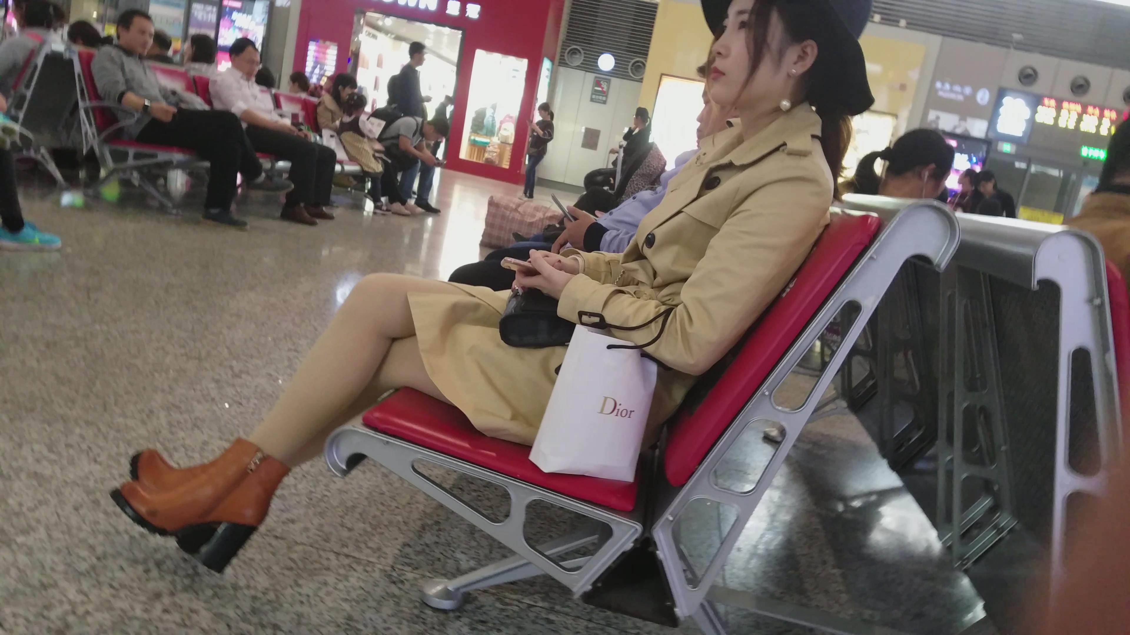 4k-高铁站候车室拍摄肉丝高跟长腿美眉,颜值爆表 编号3016