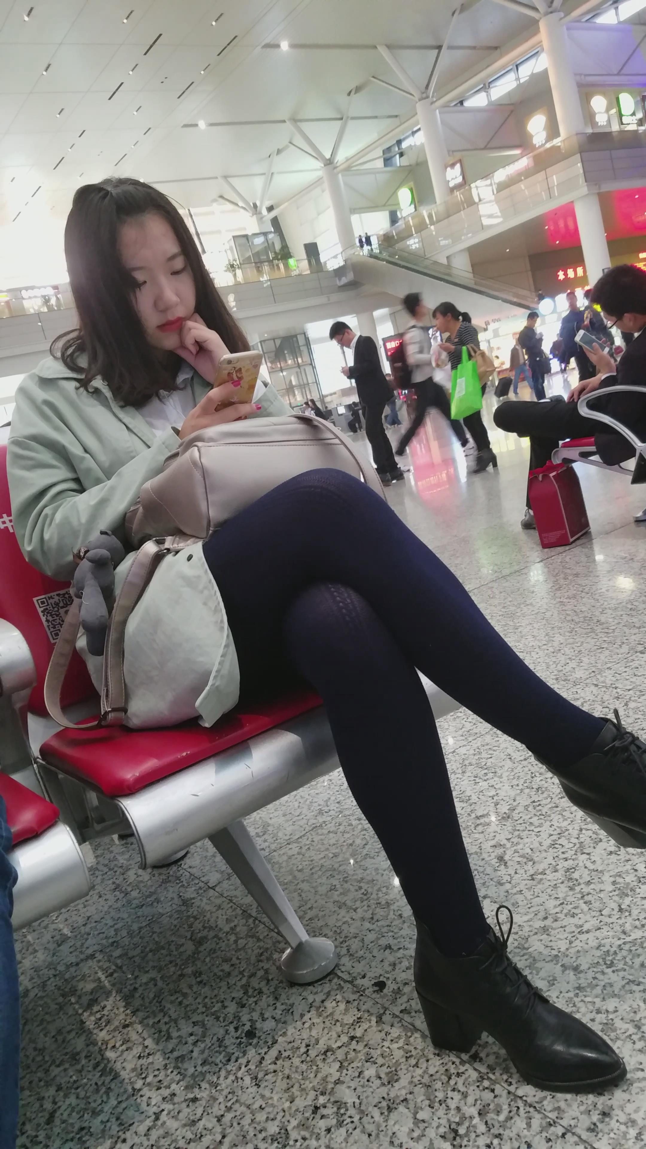 4k-高铁候车室拍摄小眼睛萌妹子,长腿丝袜打底很不错 编号3017