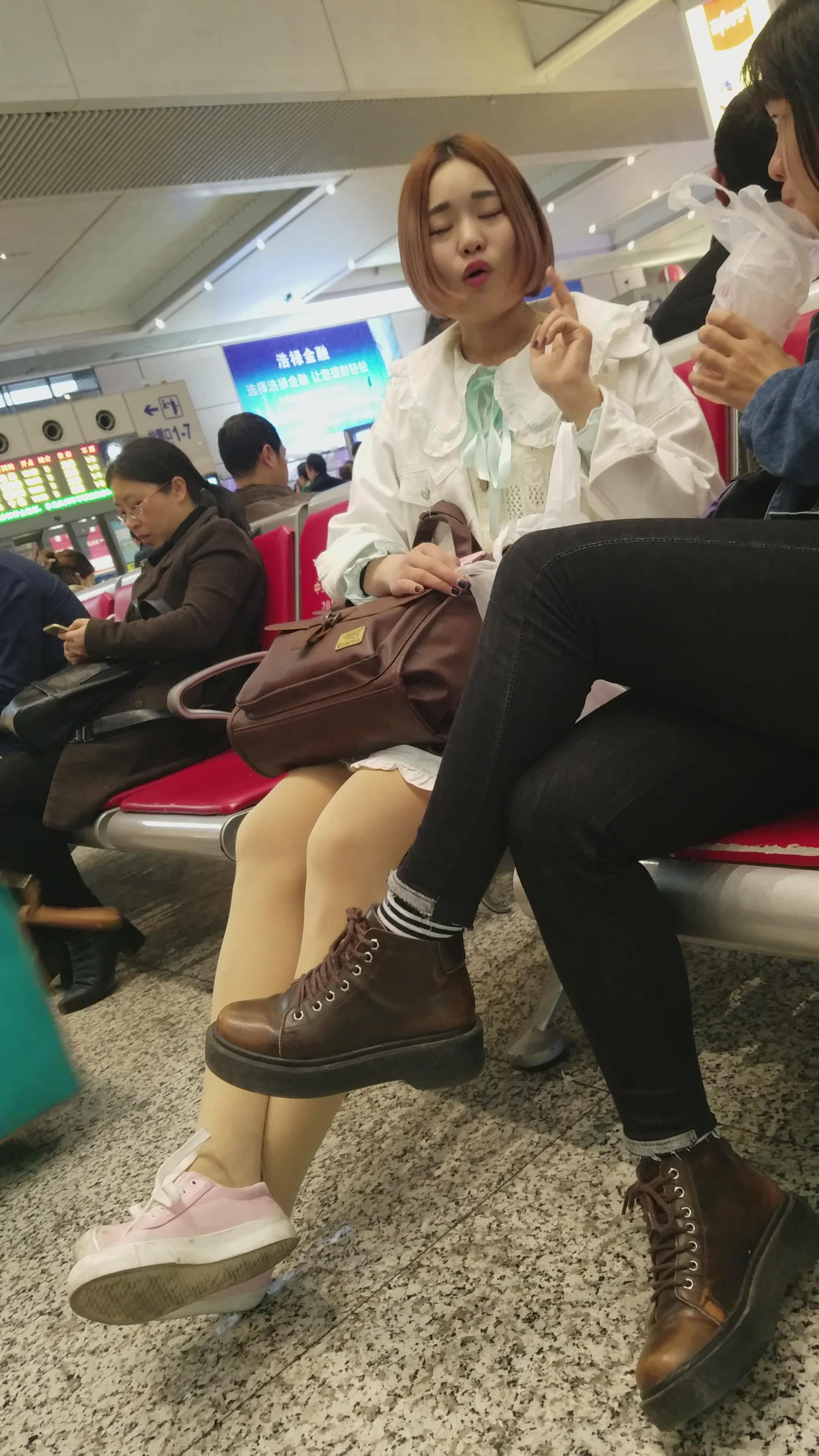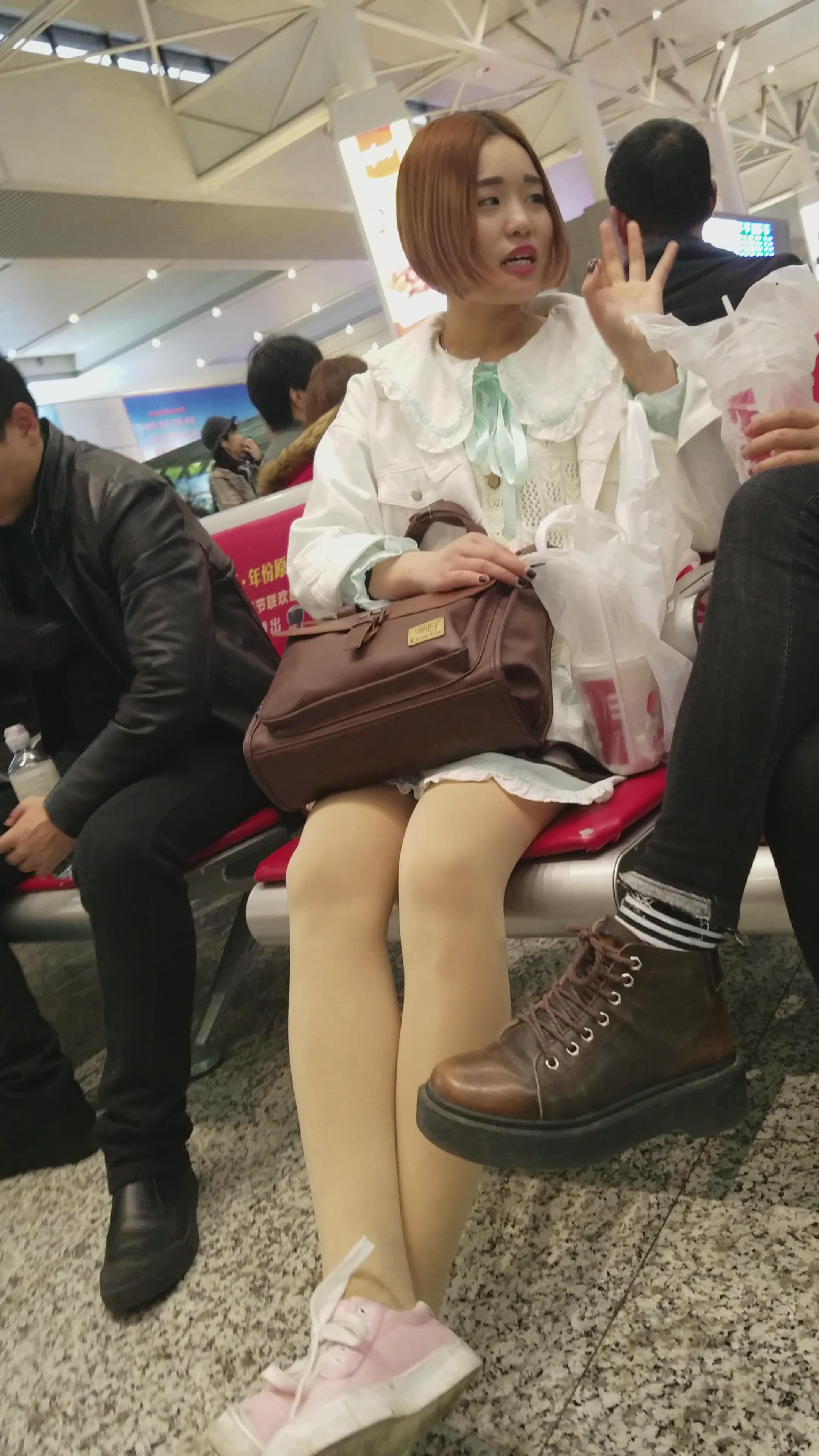 4k-车站候车室拍摄肉丝袜帆布鞋短发女孩 编号3037