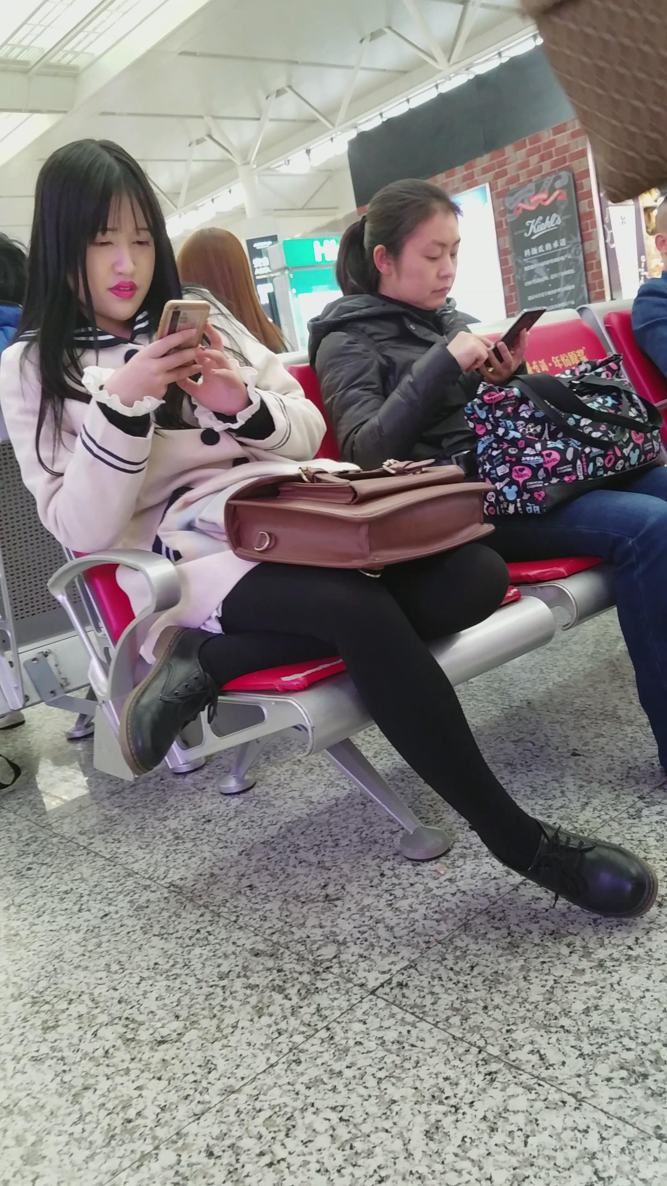 4k-高铁站候车室拍摄黑丝美腿甜美大嘴MM 编号3063