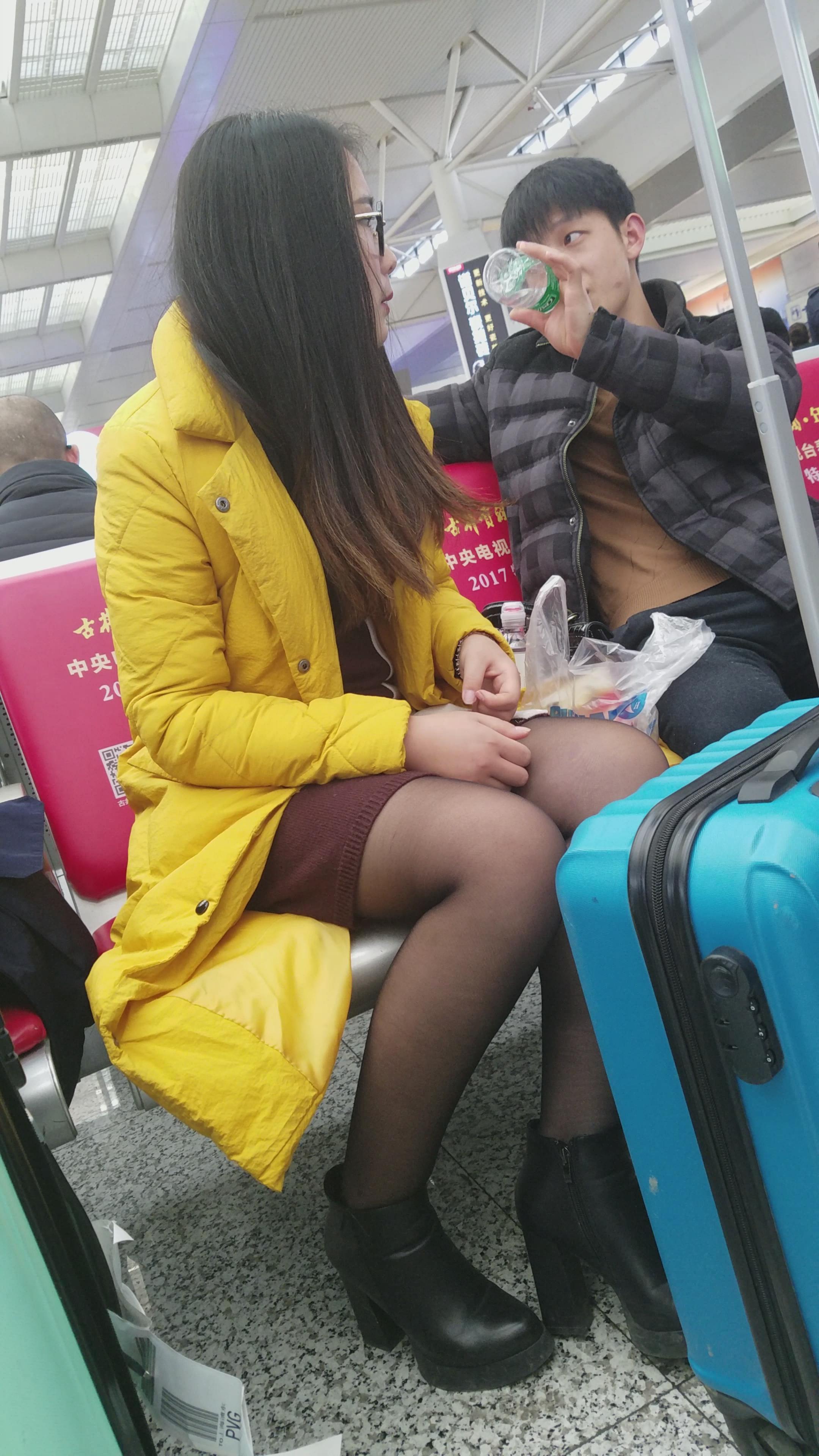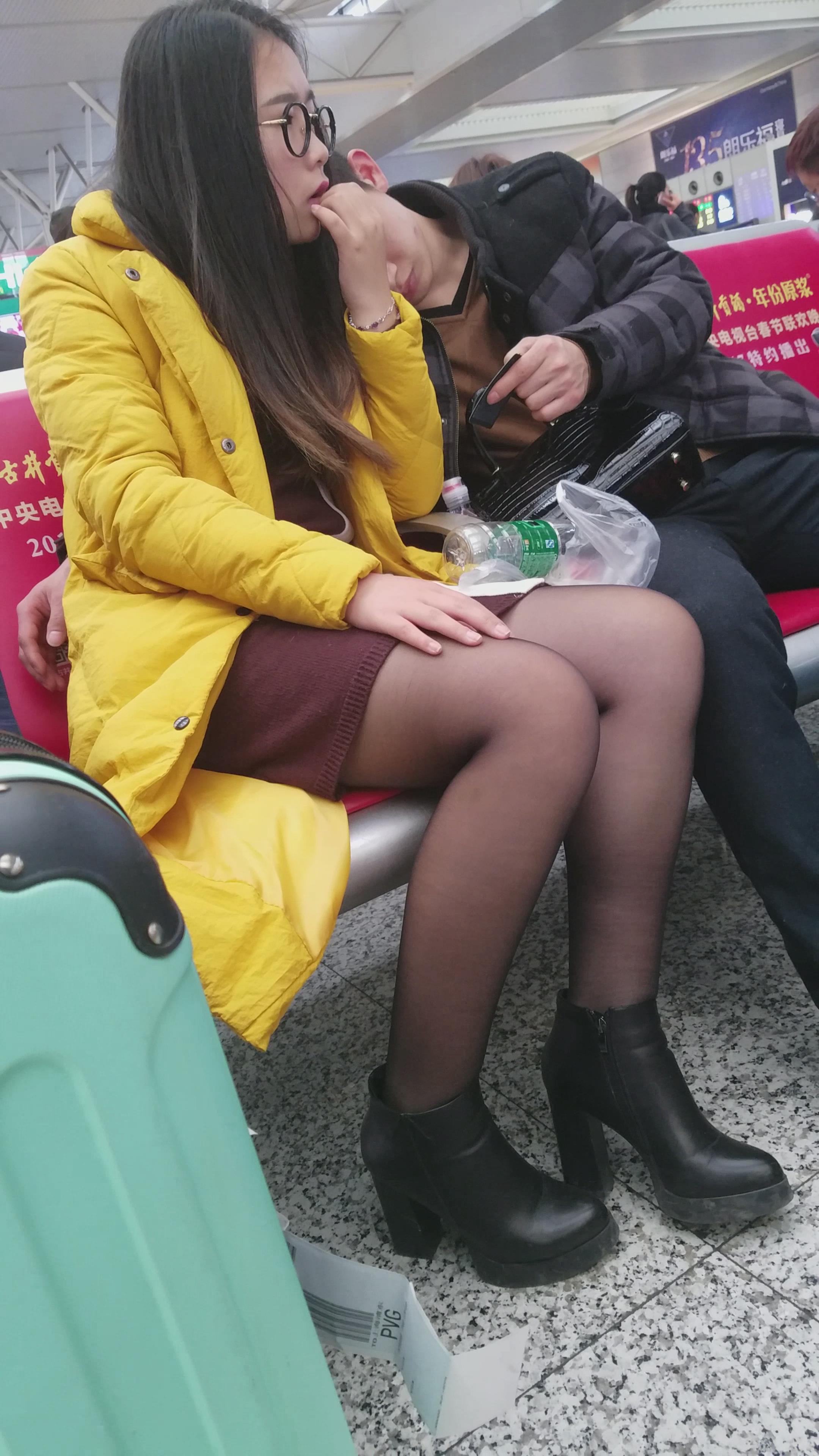 4k-高铁站候车室拍摄黑丝可爱眼镜萌妹子 编号3064