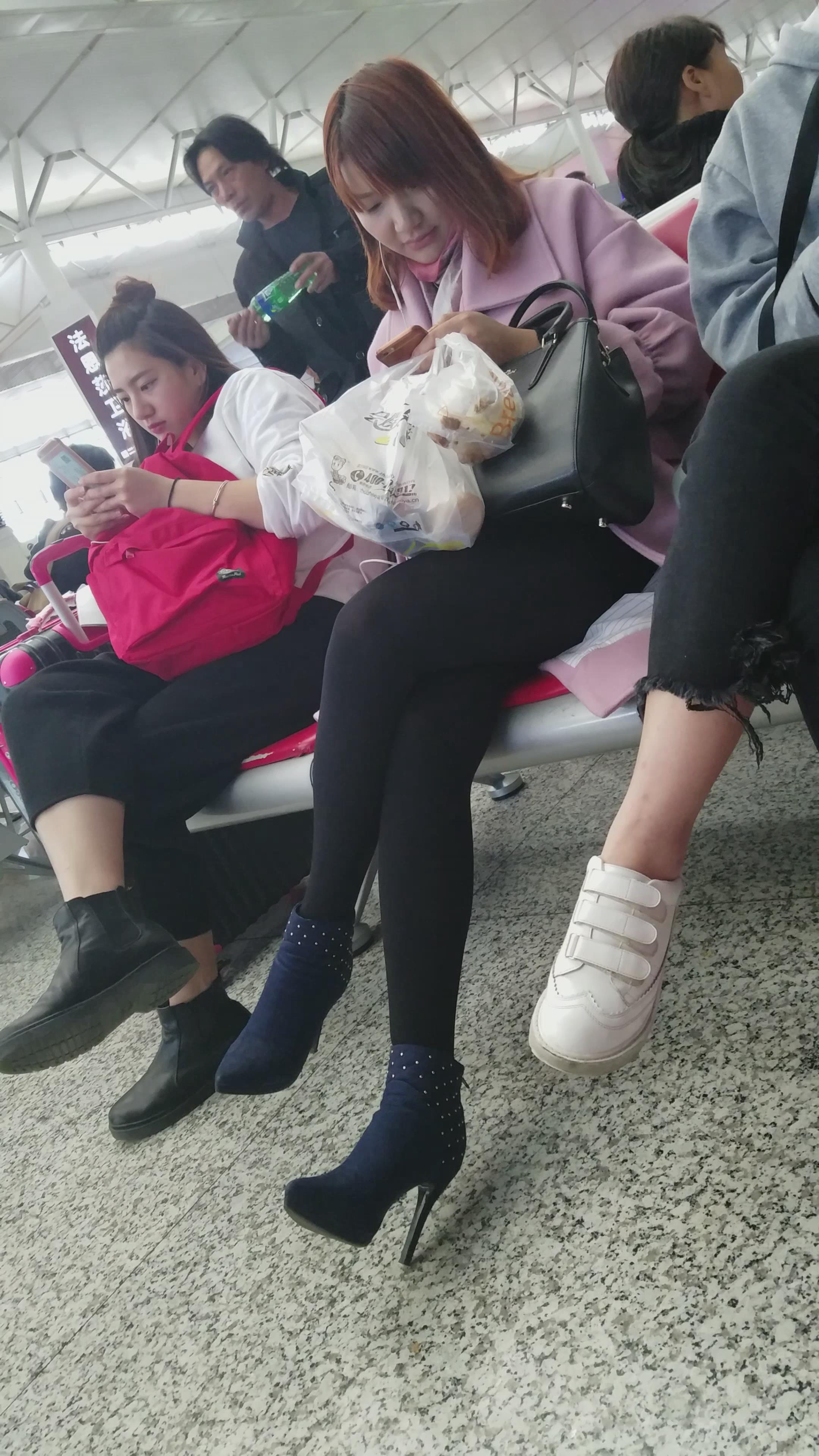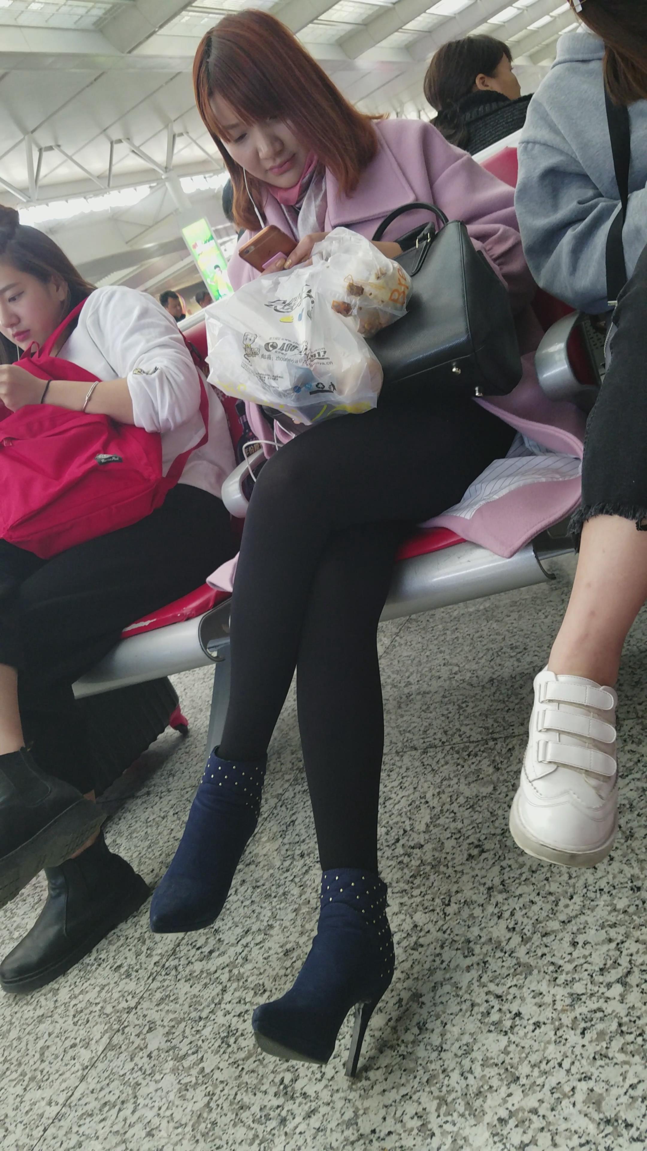 4k-高铁站候车室拍摄有点婴儿肥的黑丝美腿高跟鞋美女 编号3066