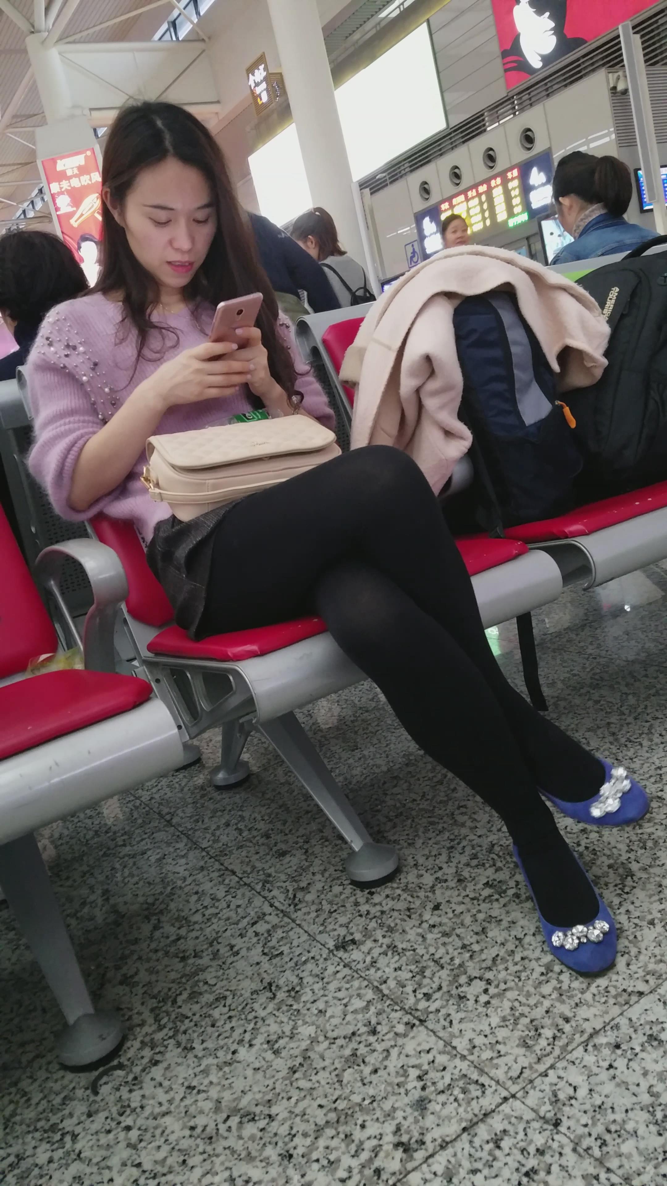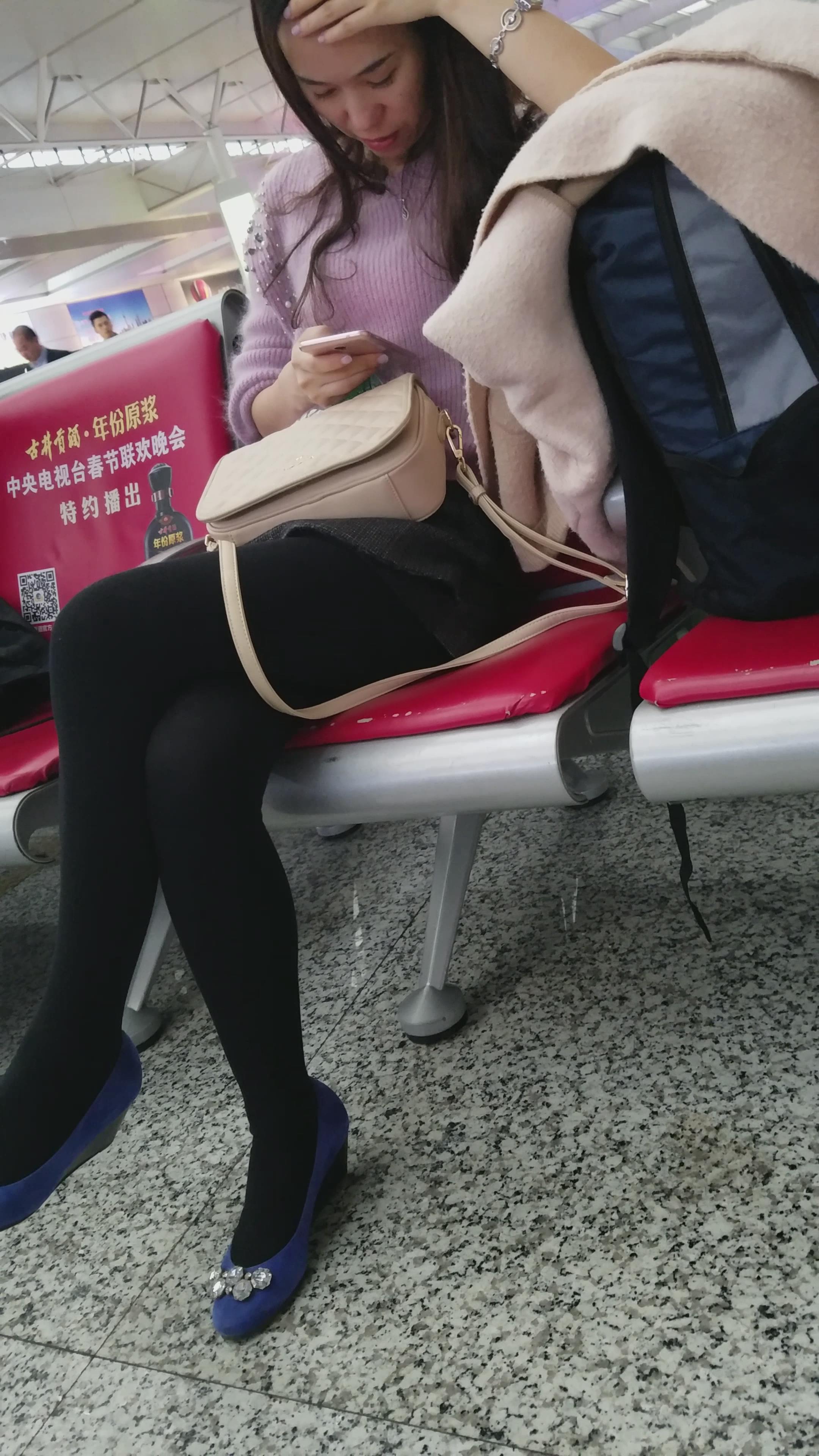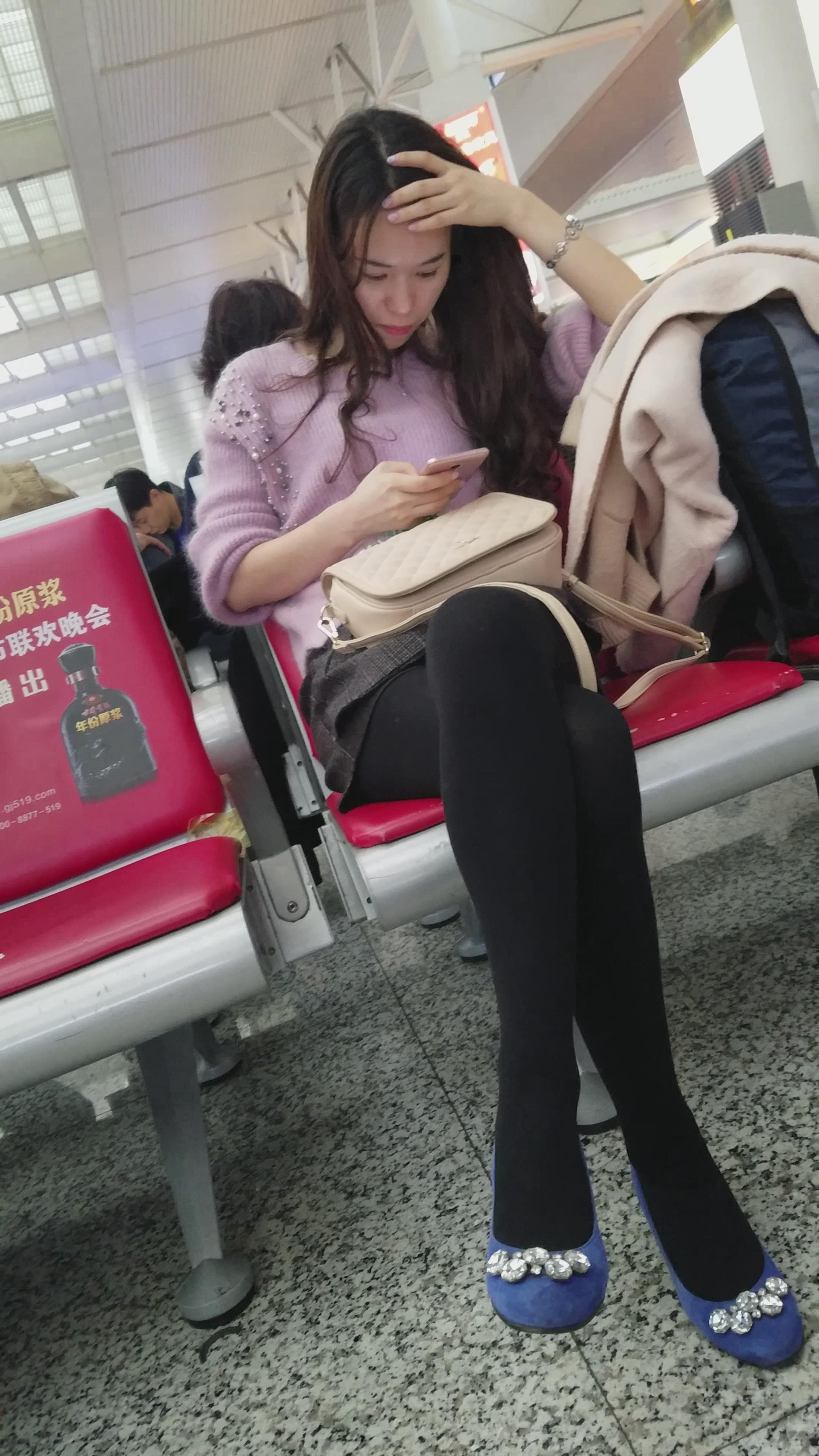 4k-高铁站候车室拍摄甜美清新黑丝蓝色高跟鞋女神姐姐 编号3068
