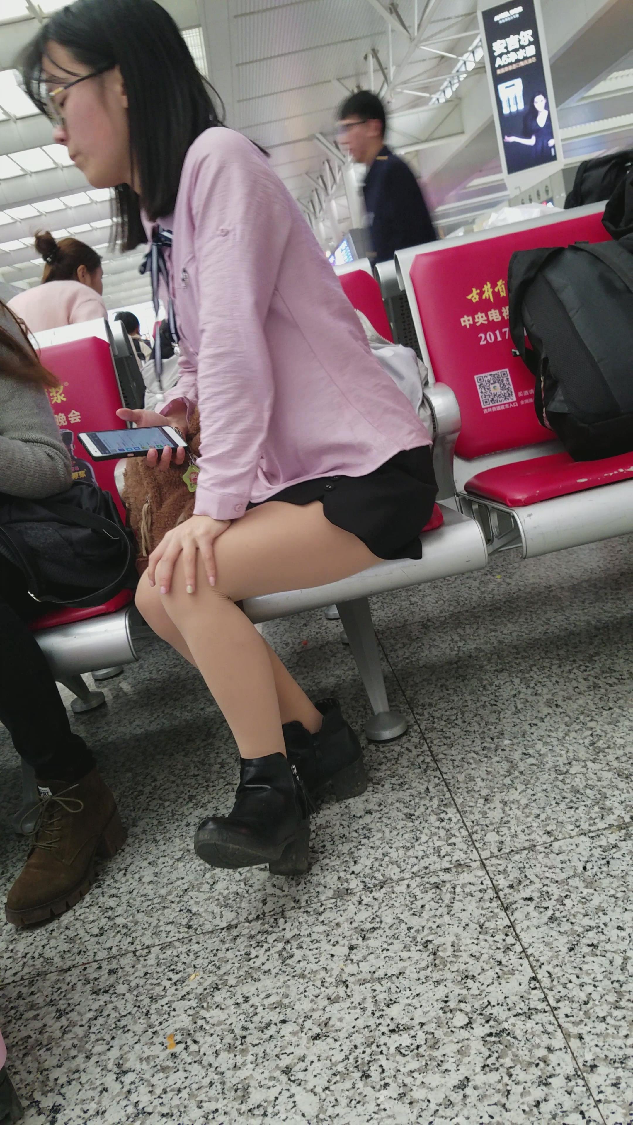 4k-高铁站候车室拍摄肉色丝袜美腿眼镜妹 编号3076