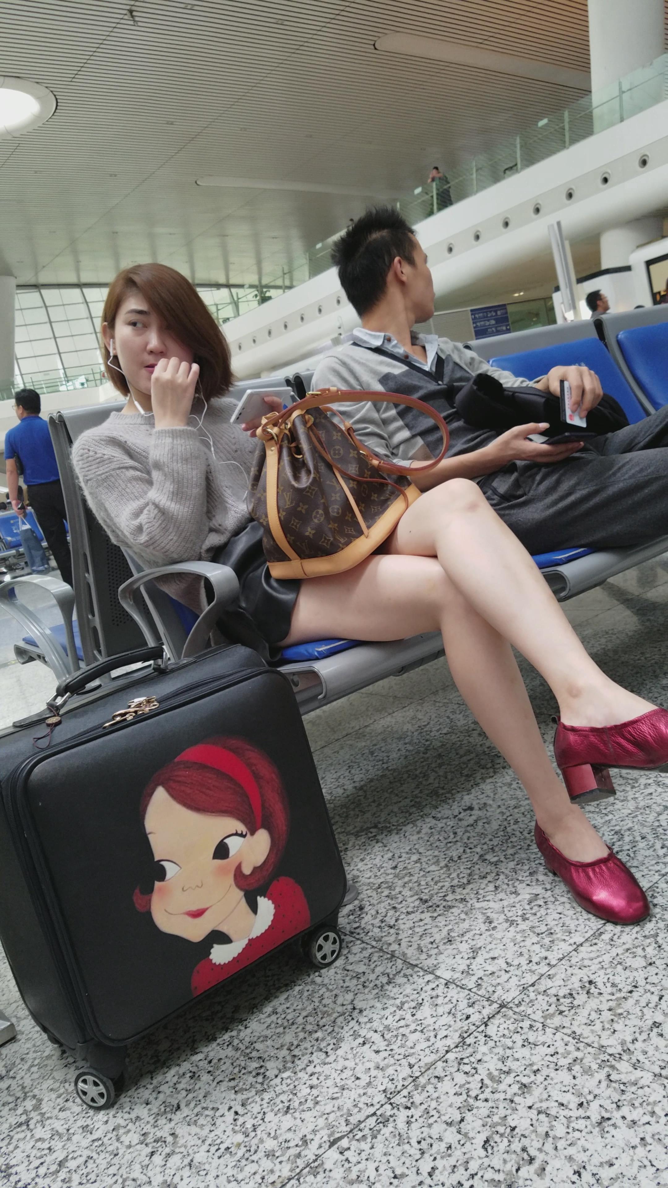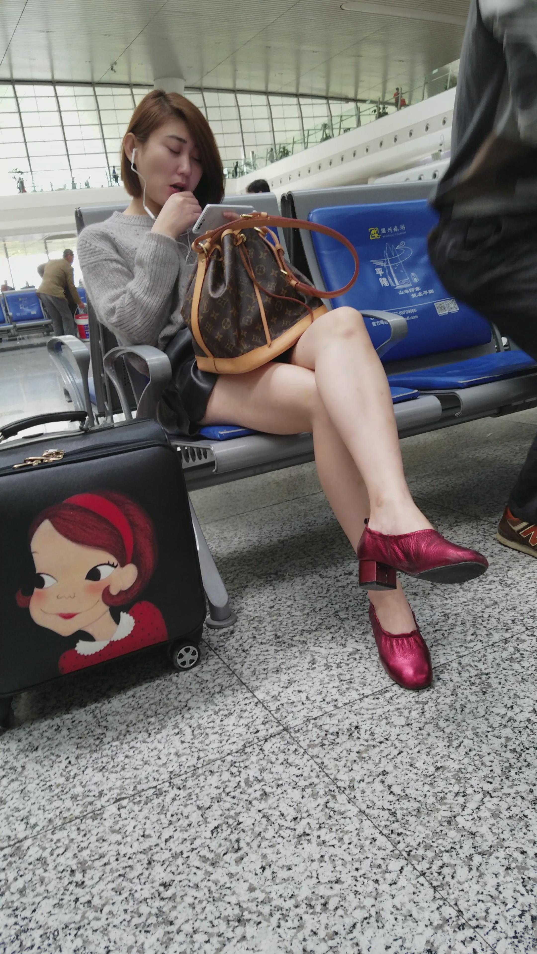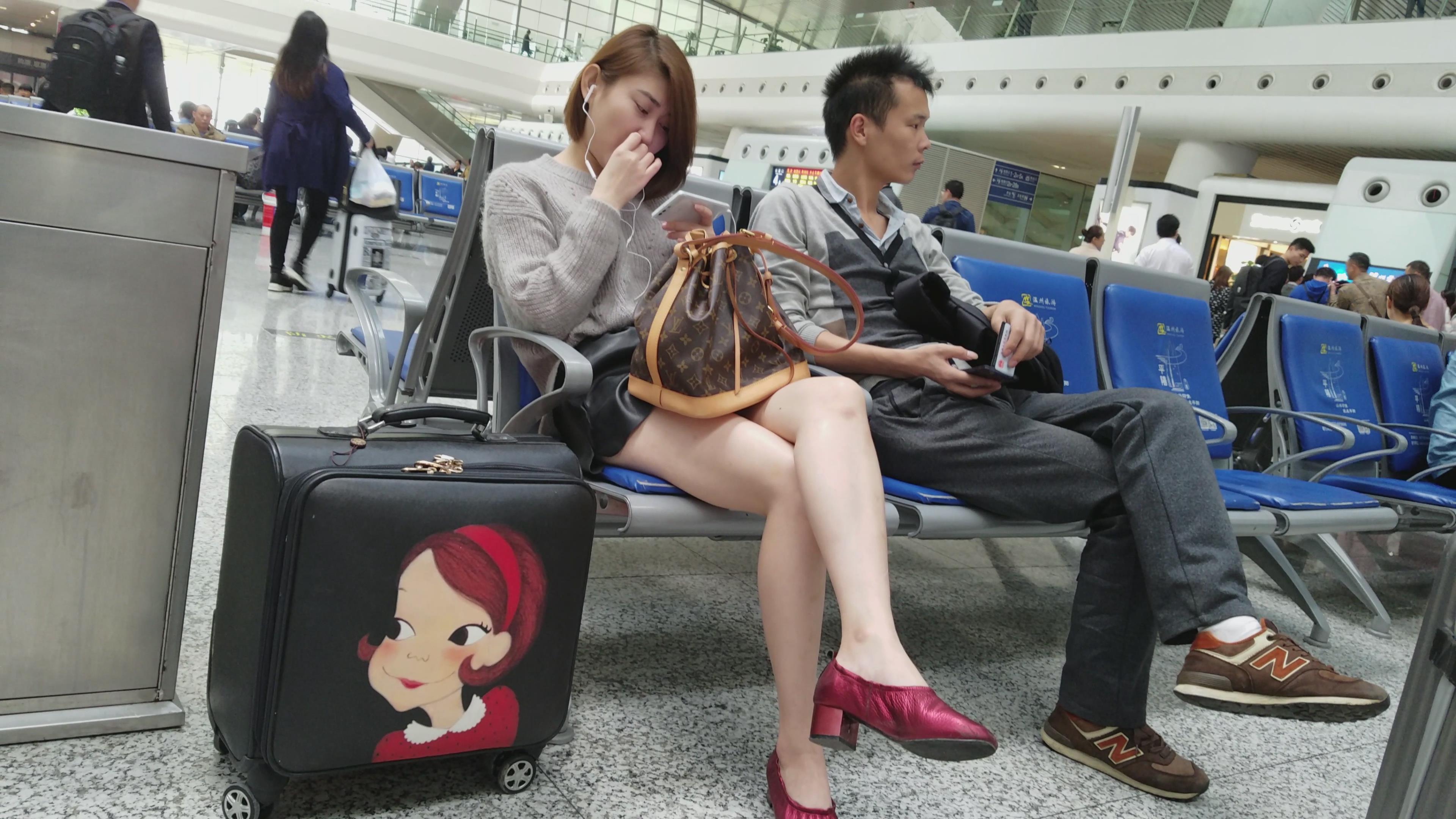 4k-高铁站候车室拍摄长腿高跟鞋美白小清新美女 编号3087