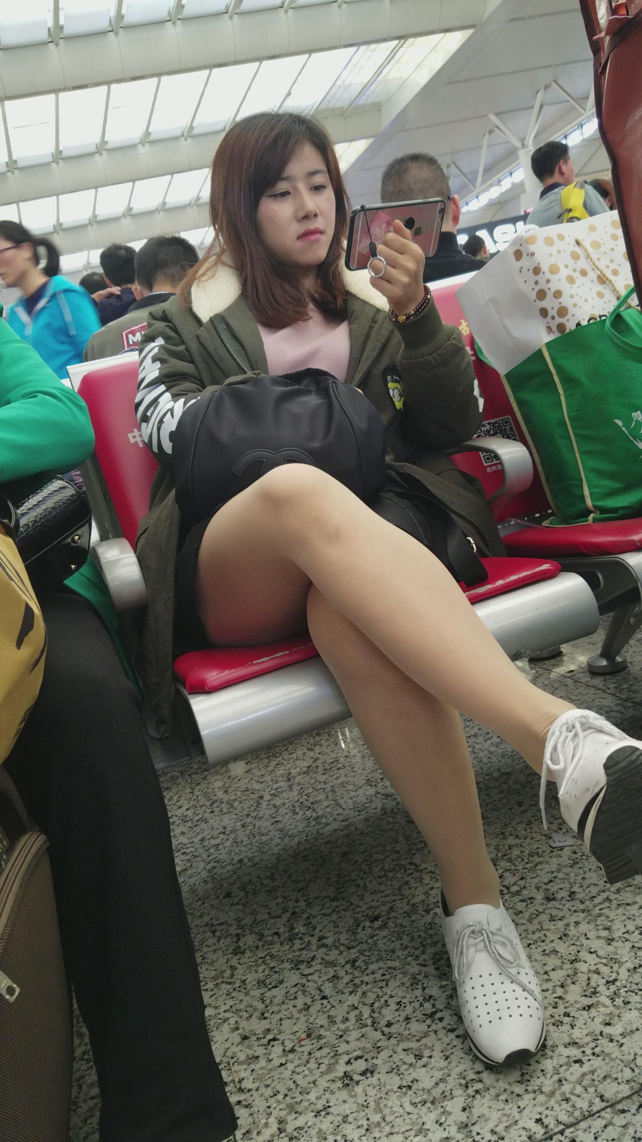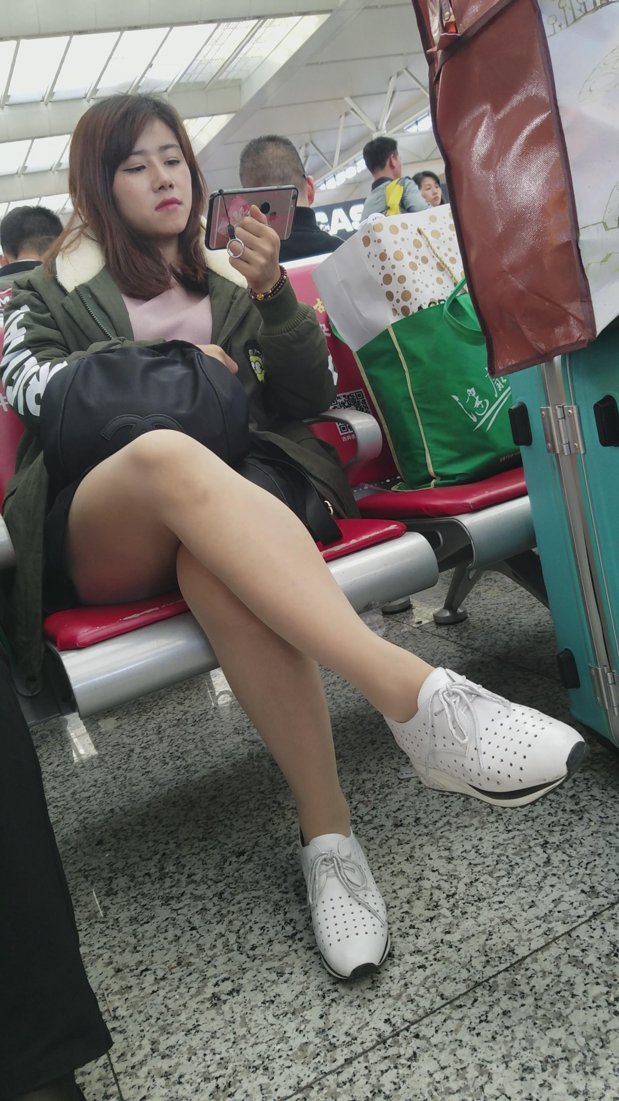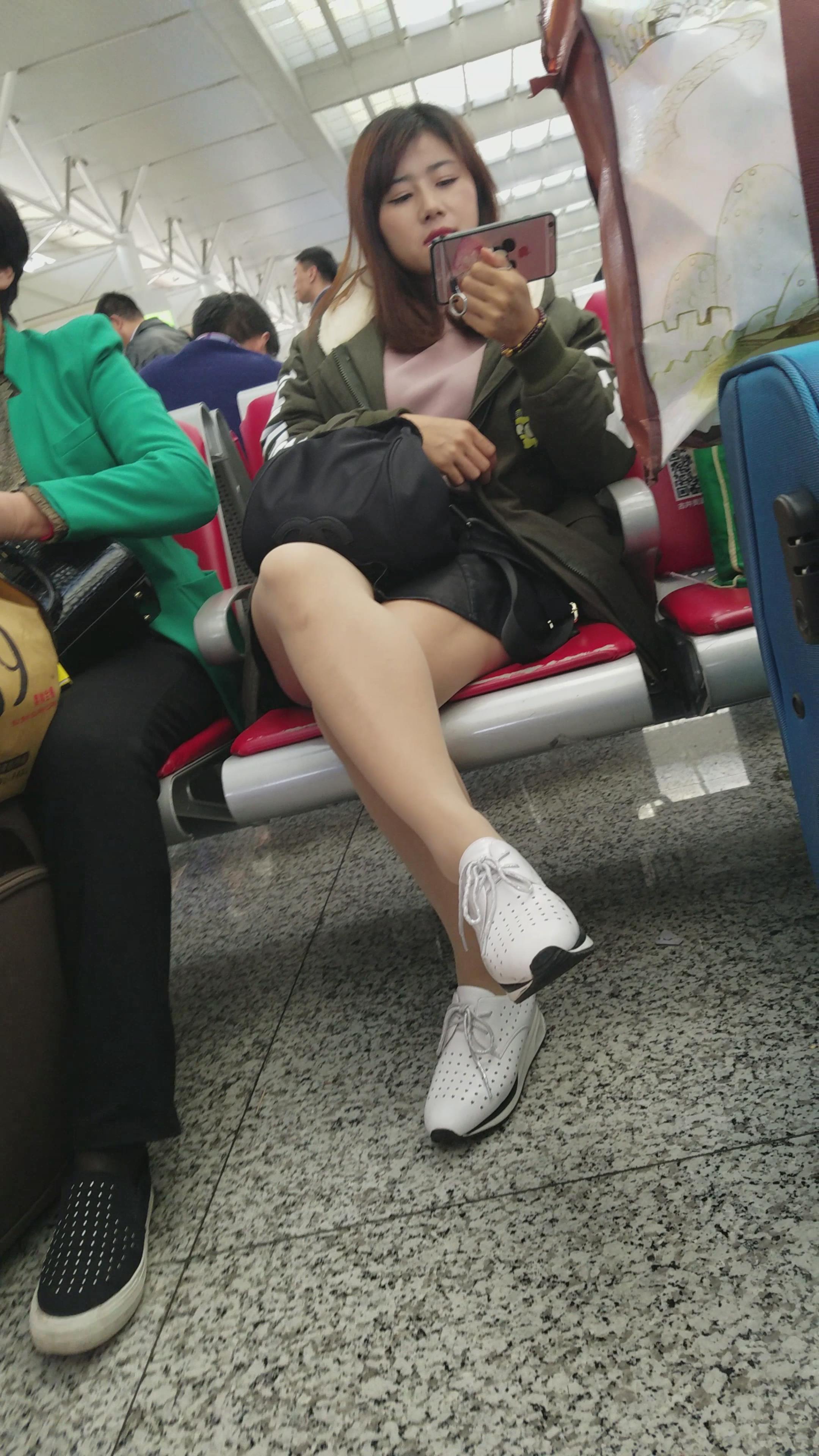 4k-高铁站候车室拍摄美腿运动鞋甜美漂亮美女姐姐 编号3091