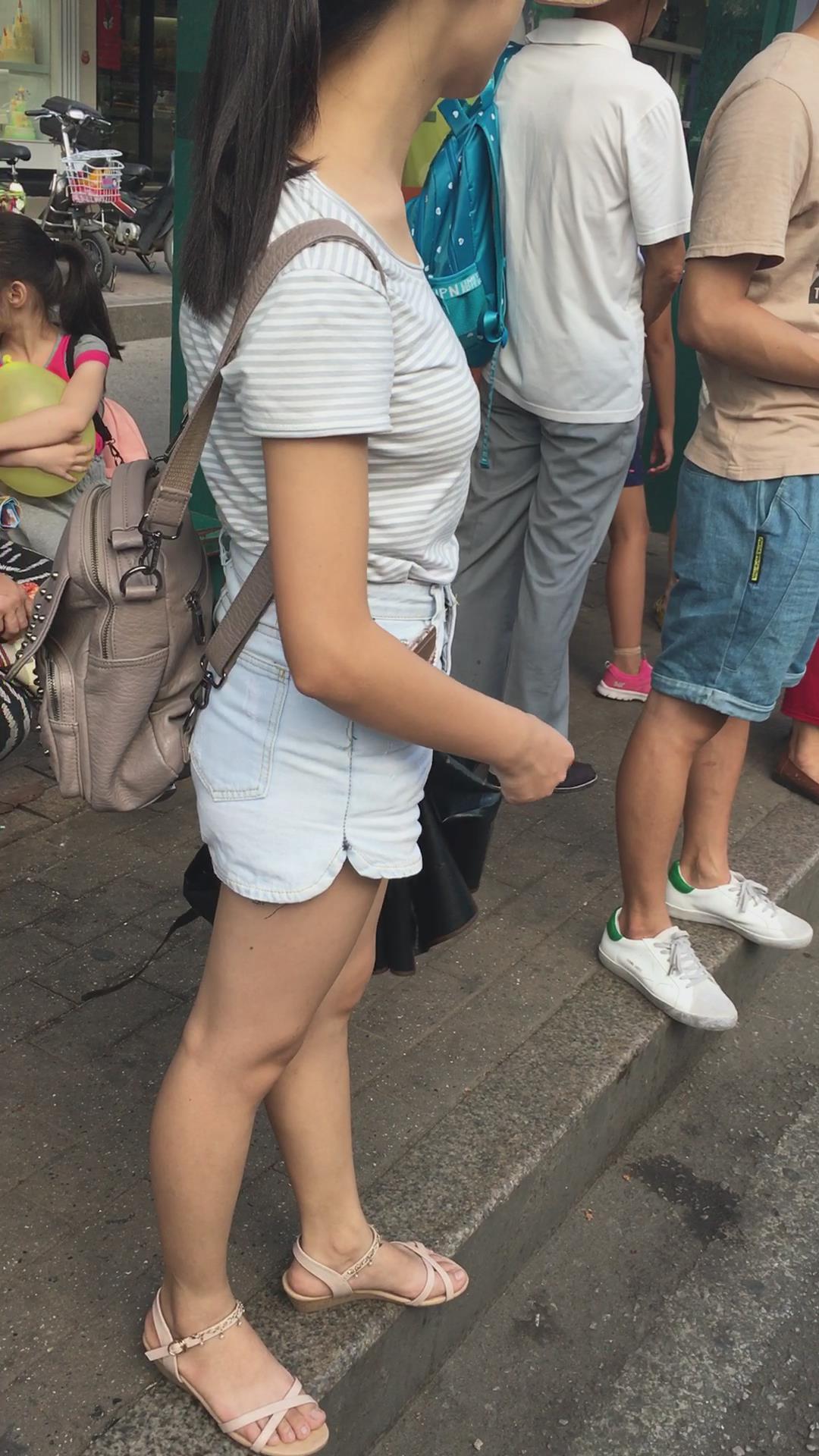 街拍热裤小妹在等公交车 编号4047
