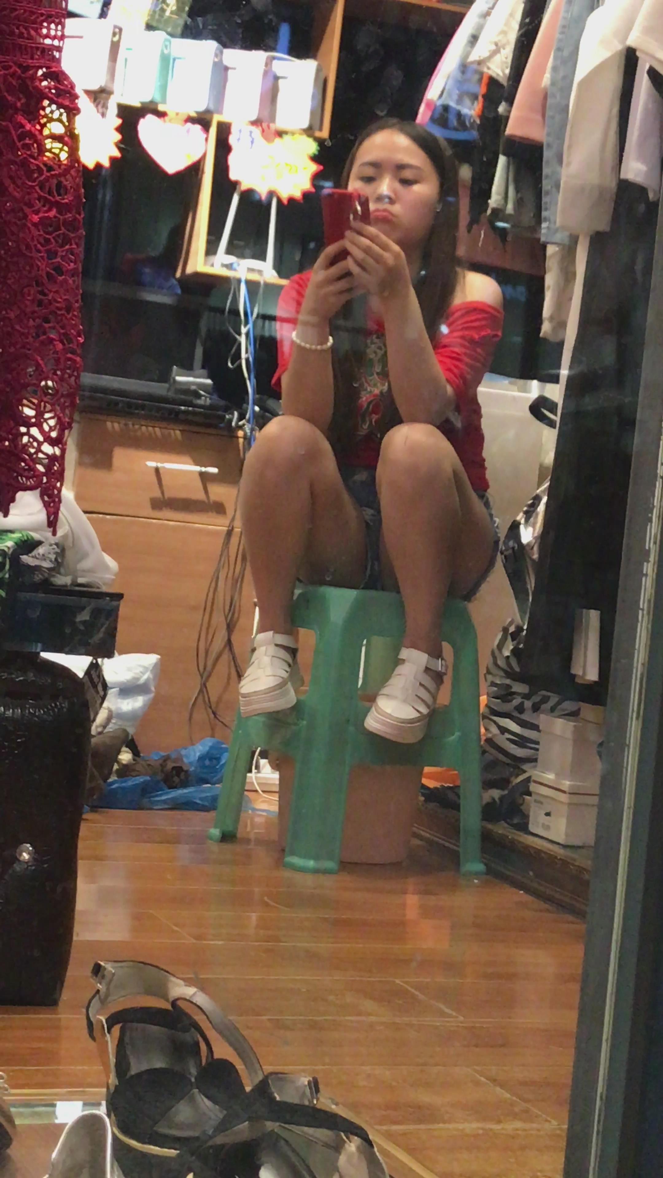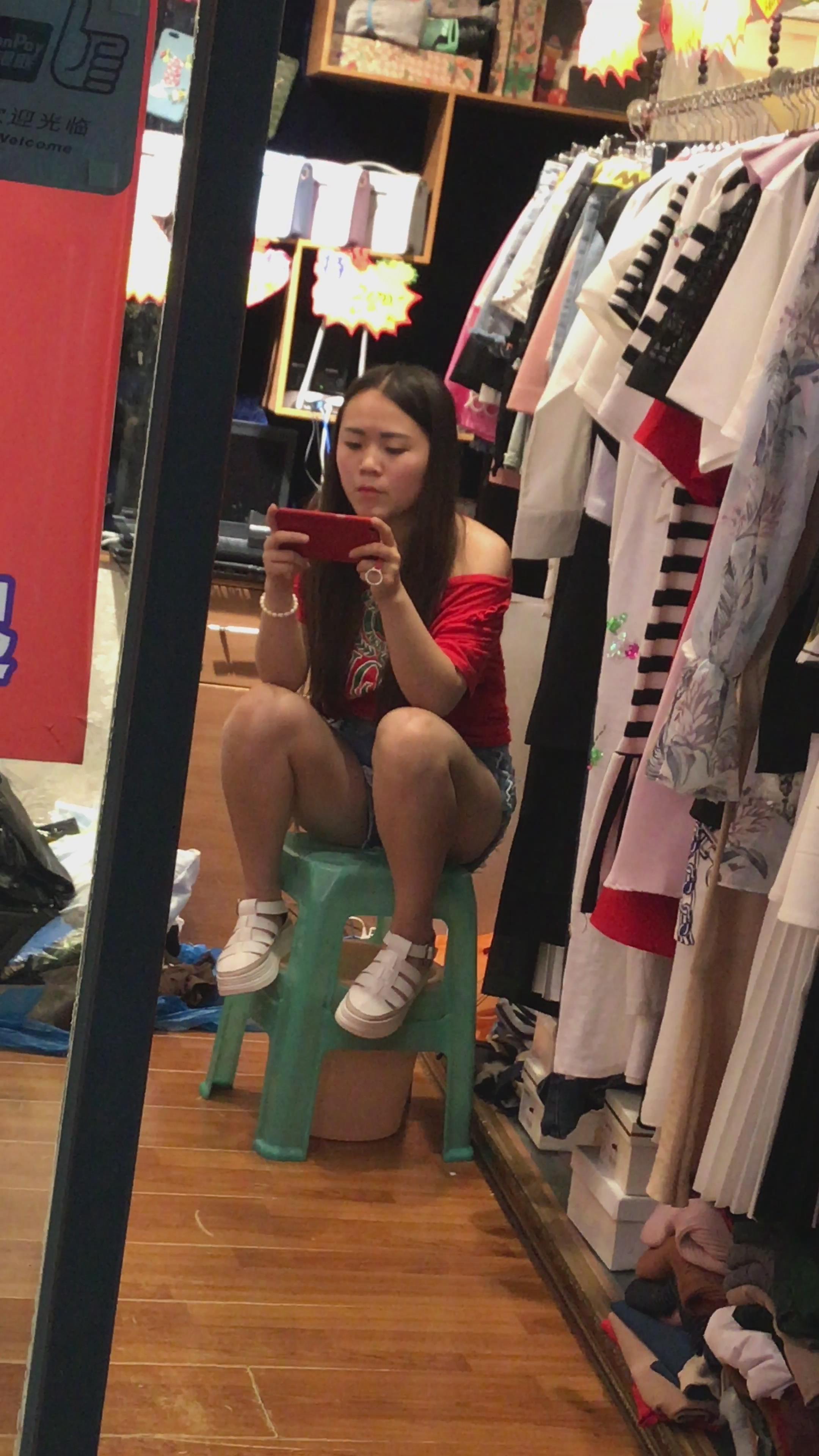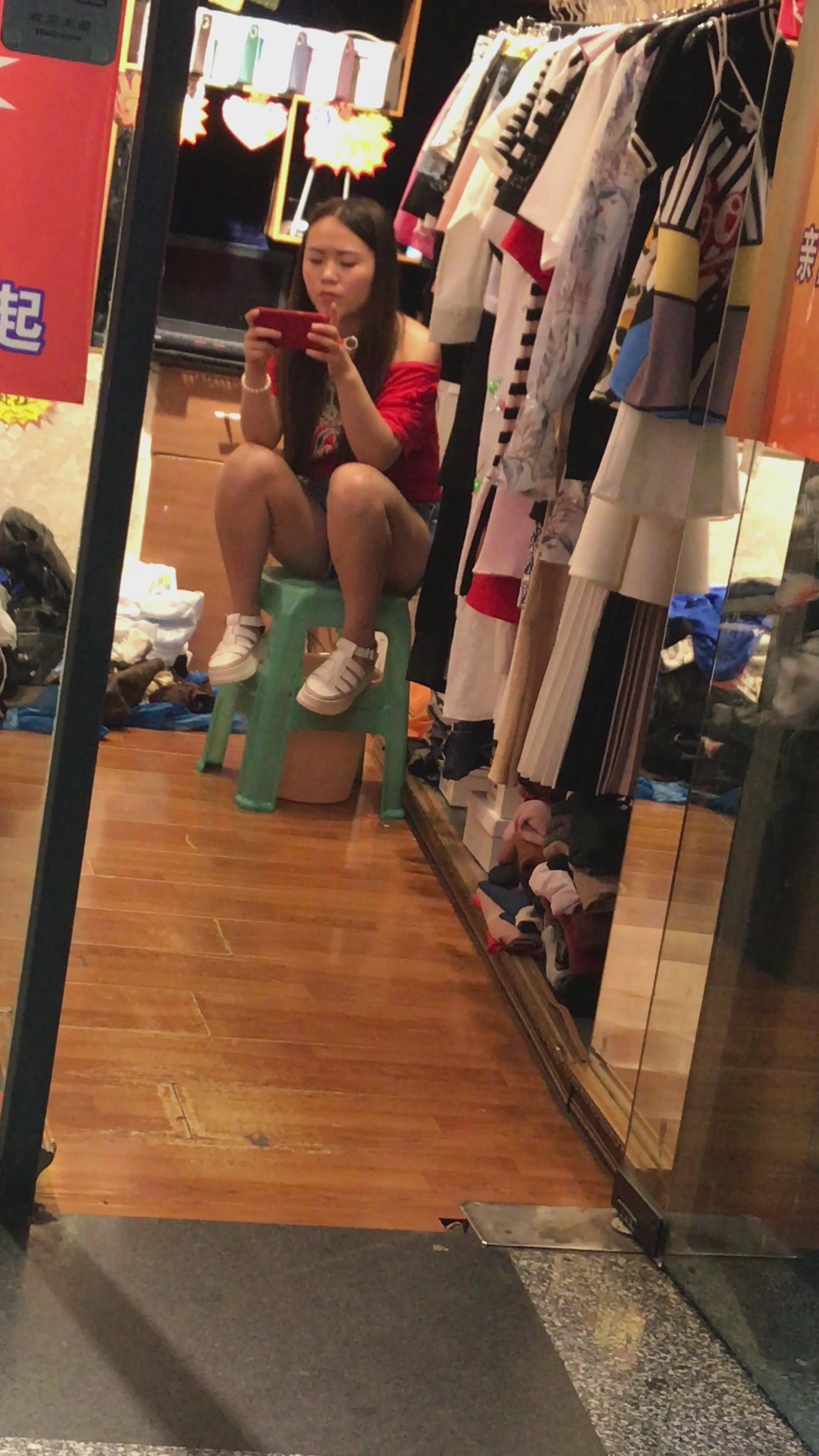 4K - 服装店玩手机的妹纸 编号4068