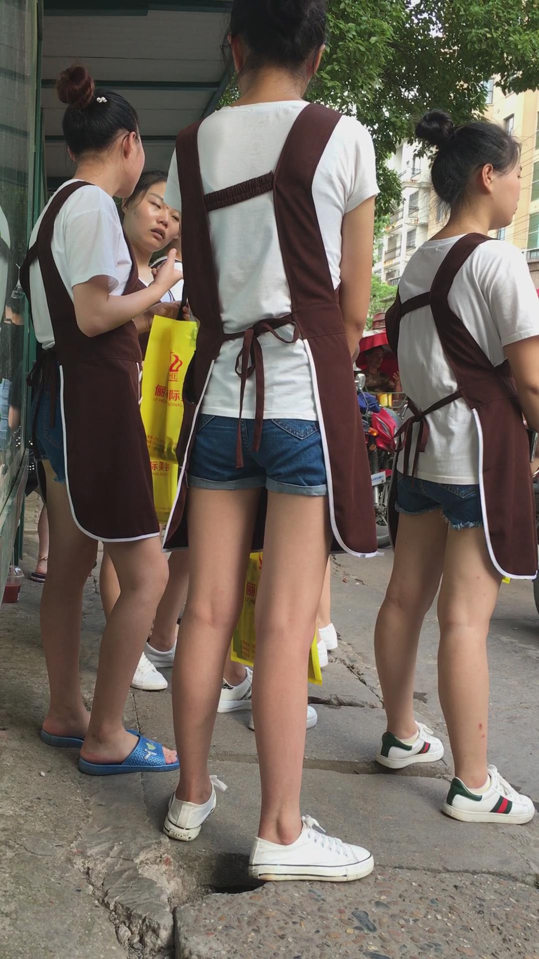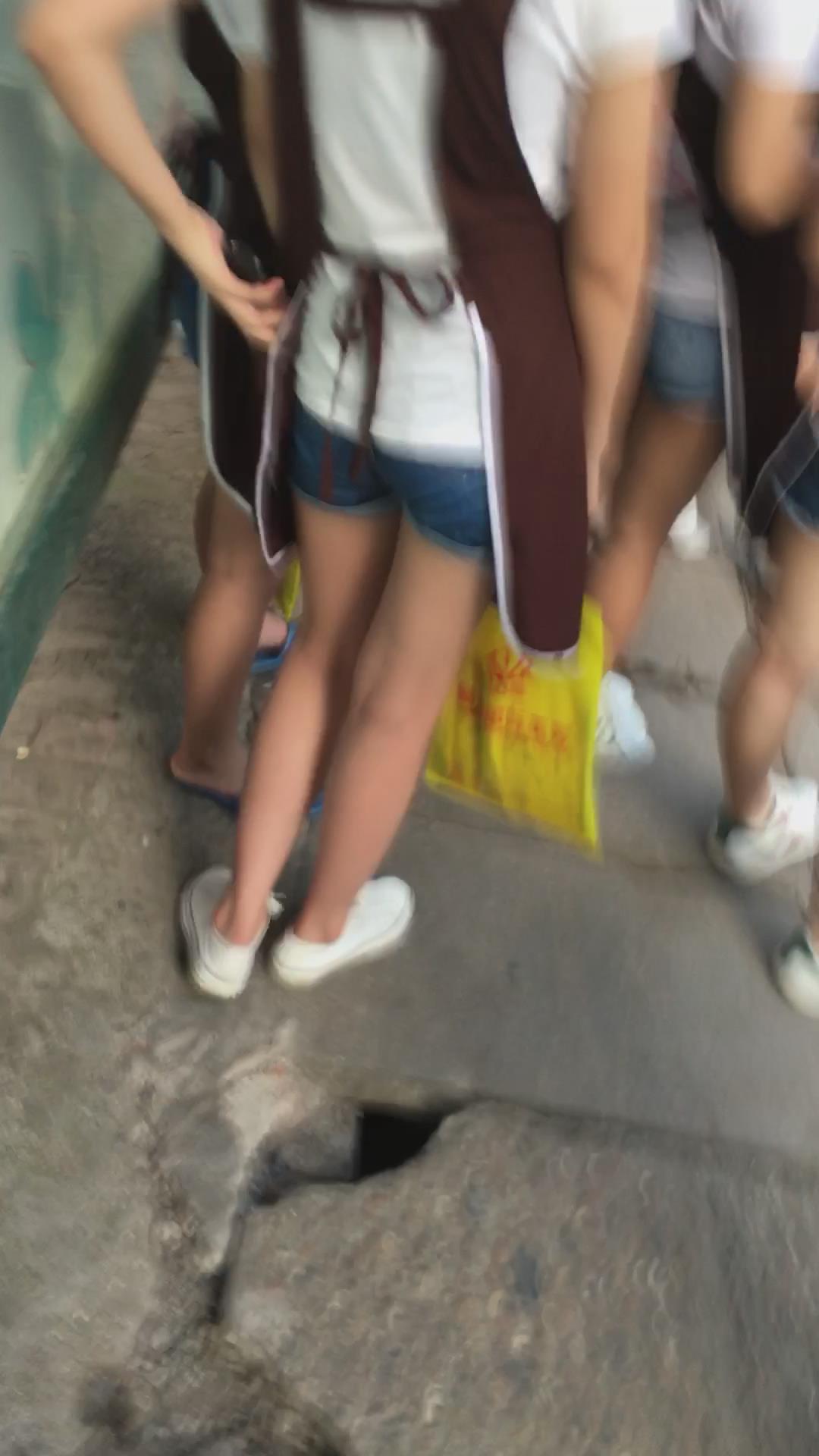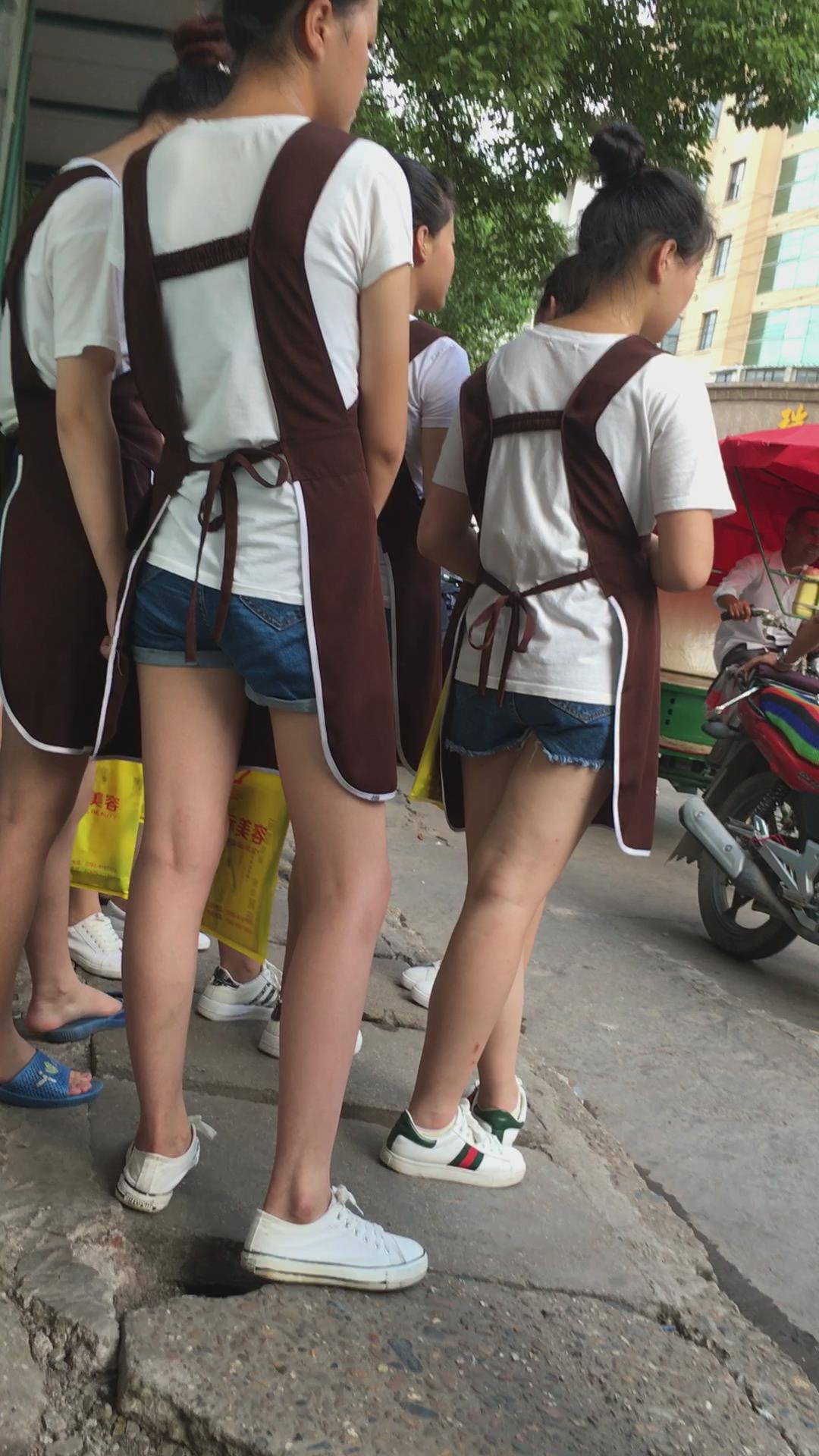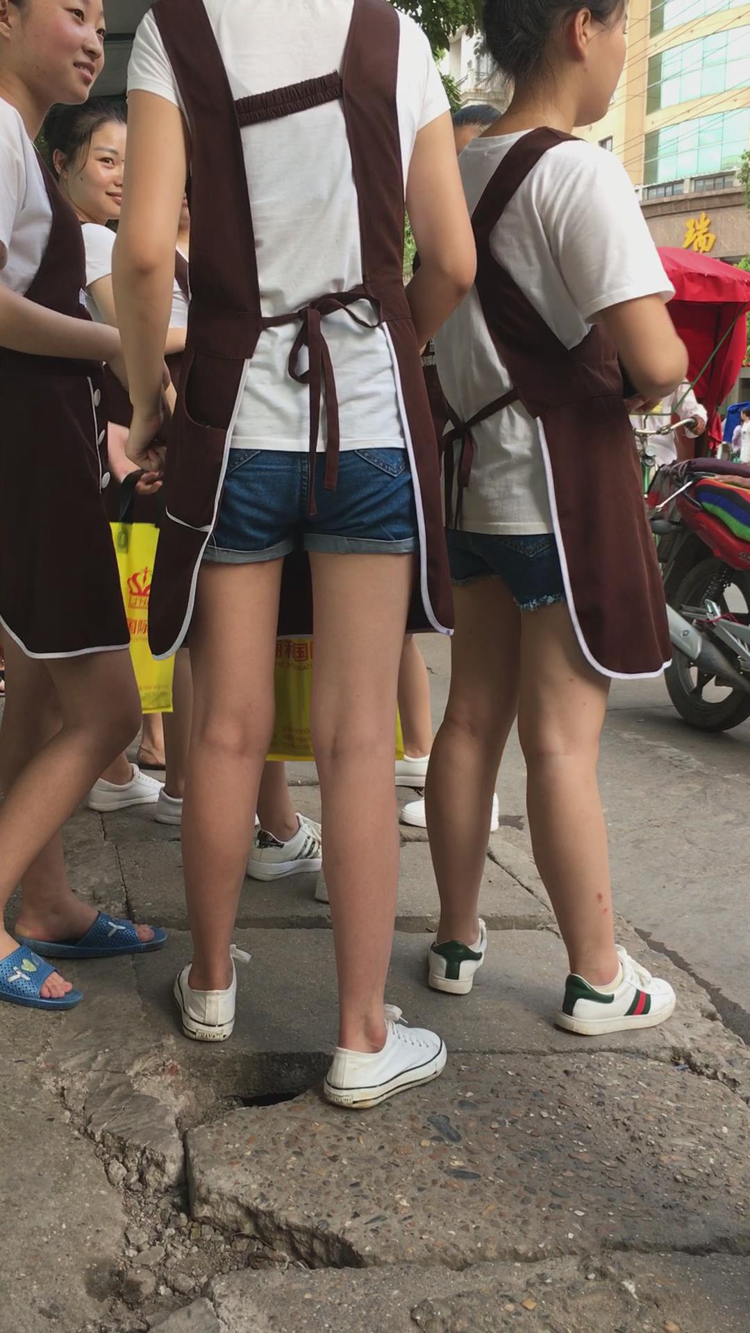 公交站偶遇在外兼职的牛仔热裤学生妹 编号4075