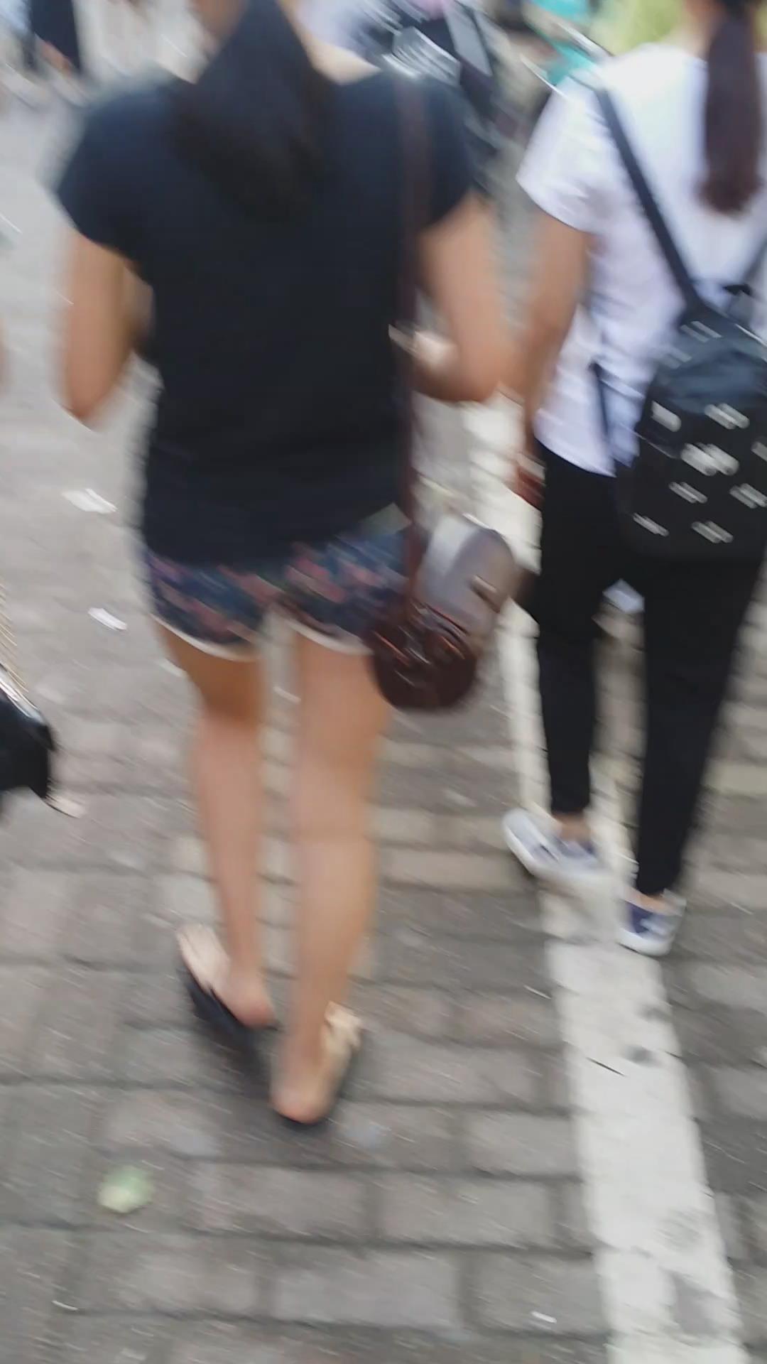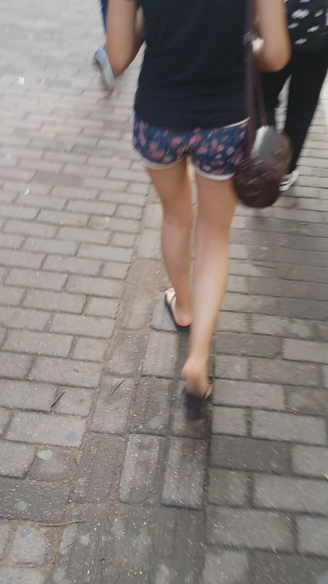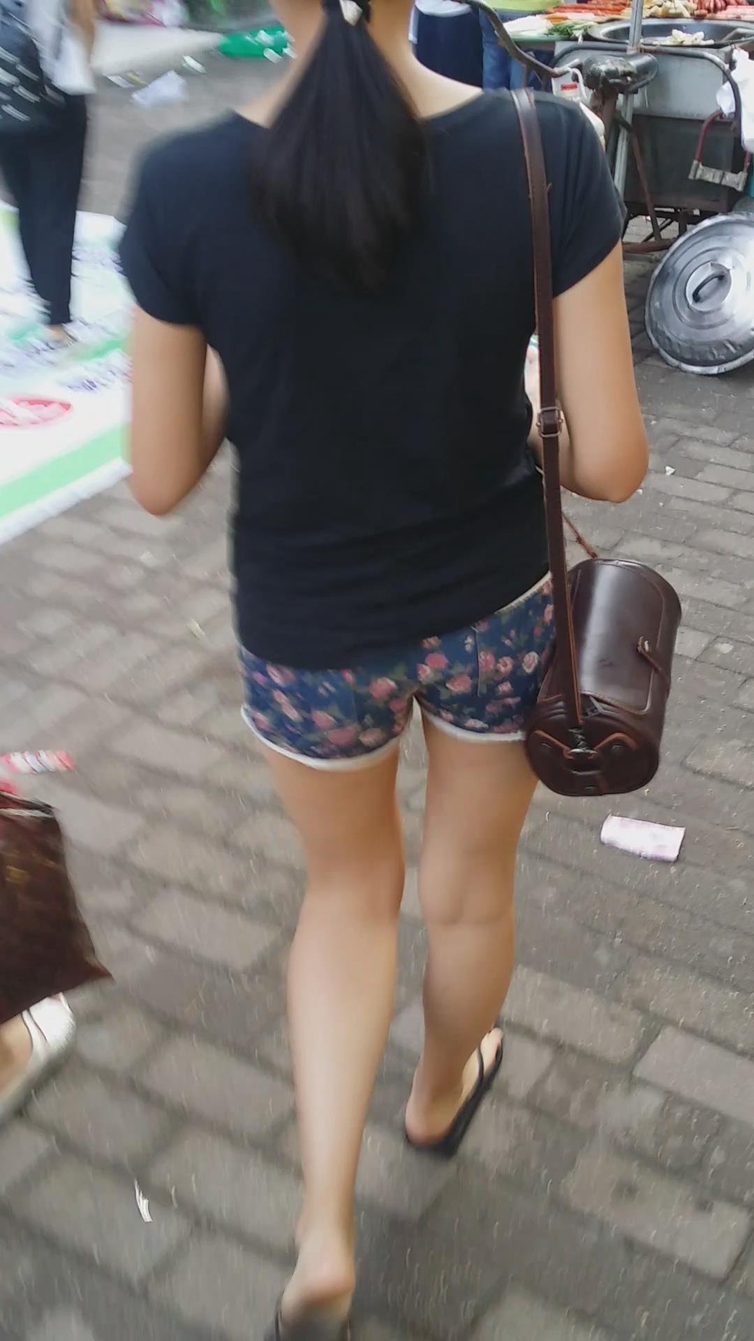 花短裤黑T恤街拍美眉 编号4077
