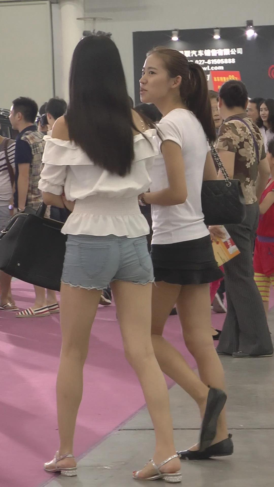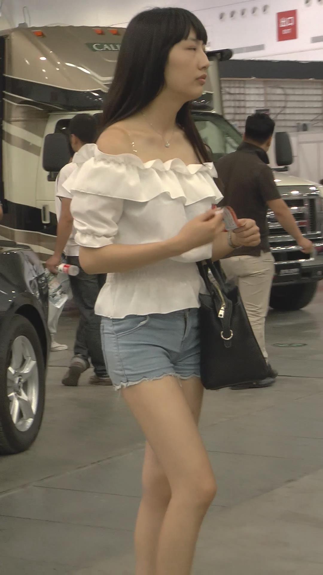 一字肩白衬衫街拍热裤美腿女神视频 编号4089