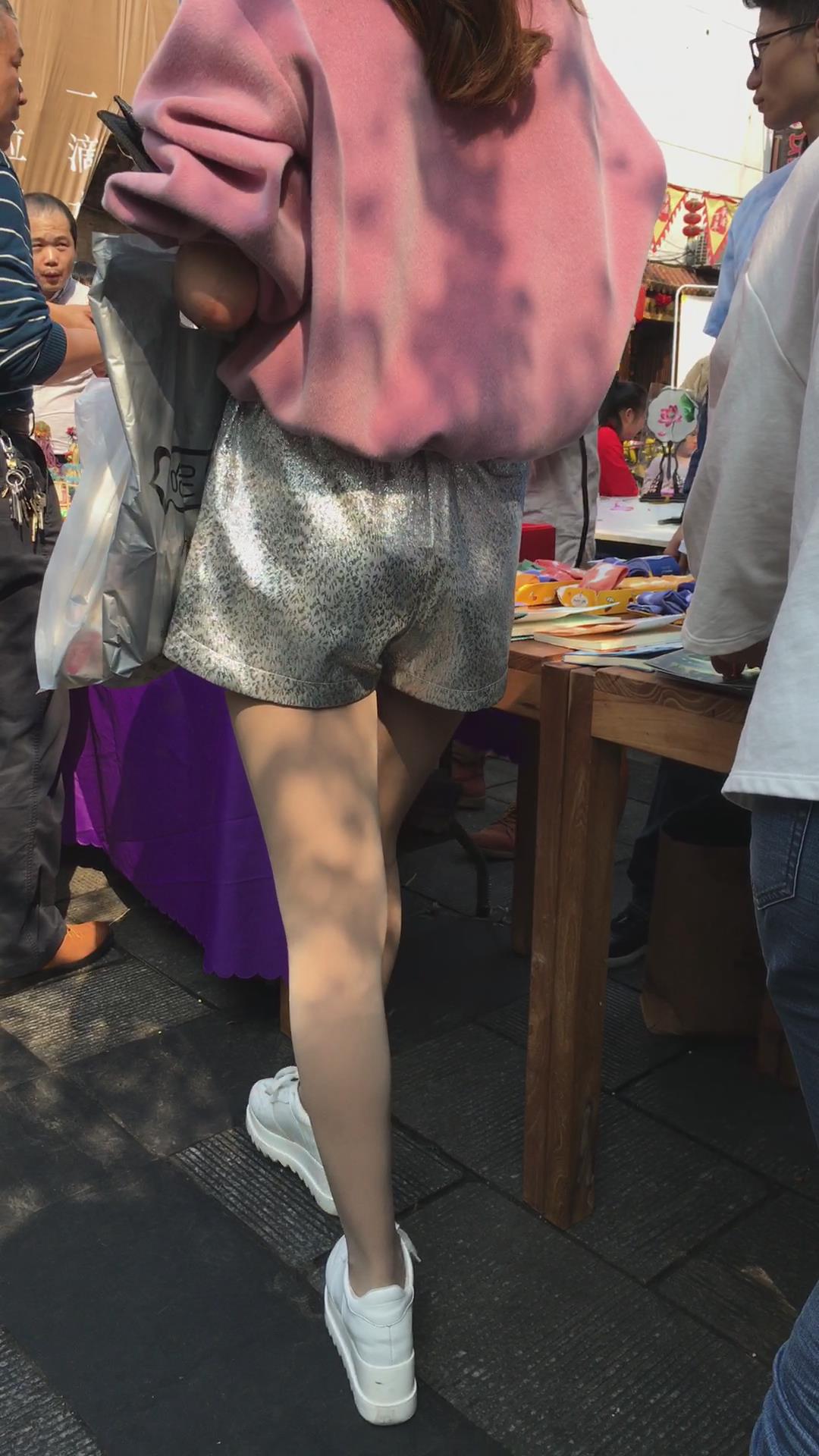 粉衣热裤清纯街拍肉丝美女 编号4104