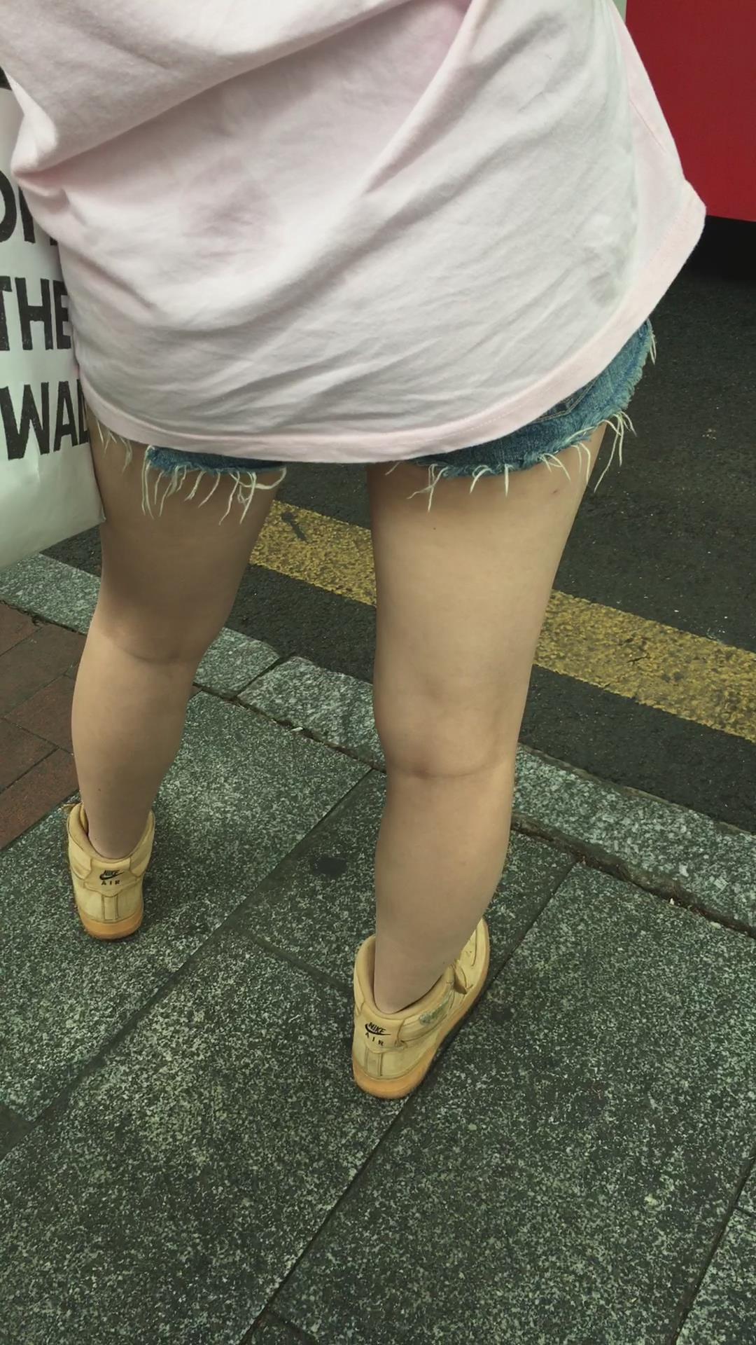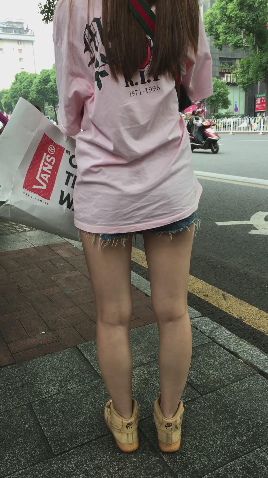 粉色T恤衫超短热裤美腿街拍美女 编号4105