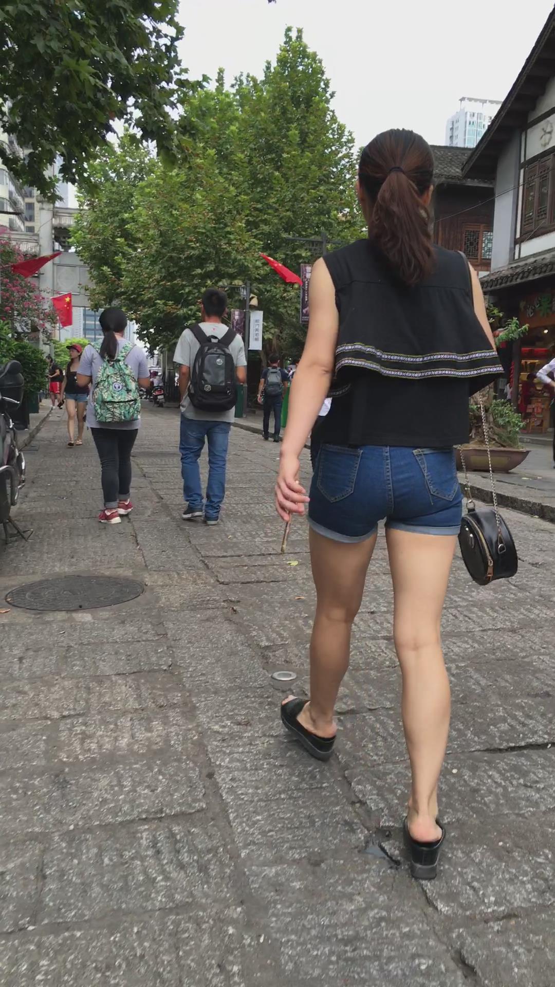 跟拍超紧身牛仔热裤马尾辫女神 编号4111