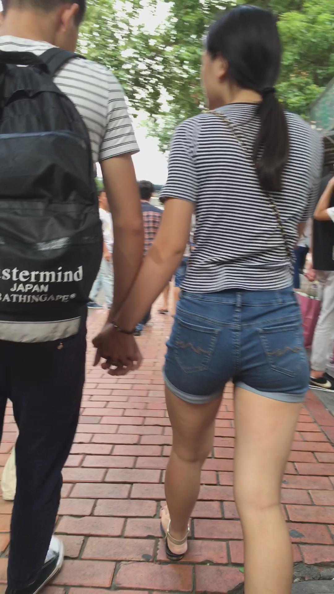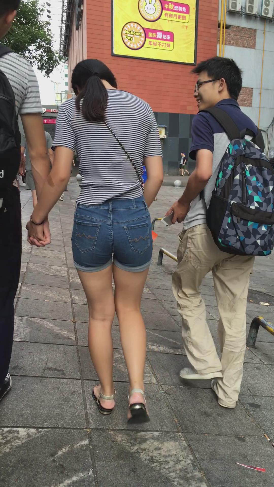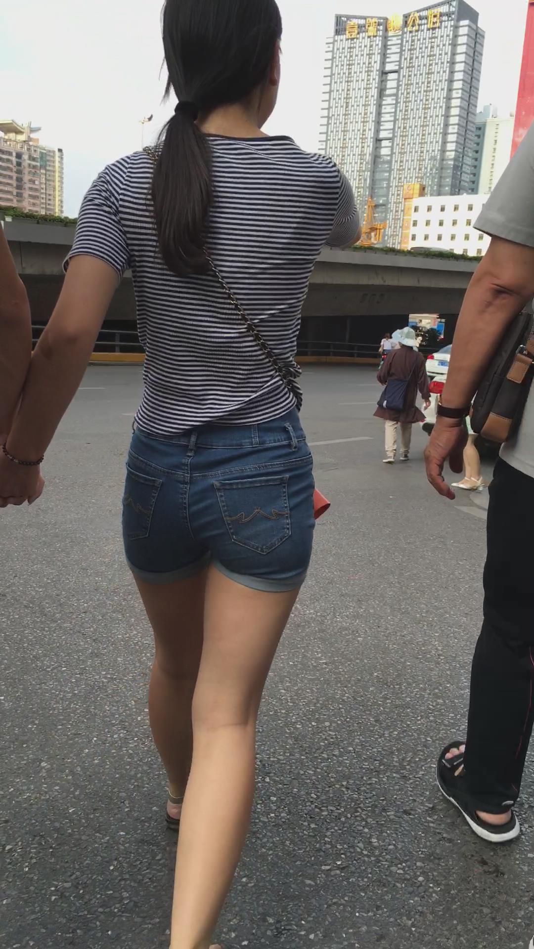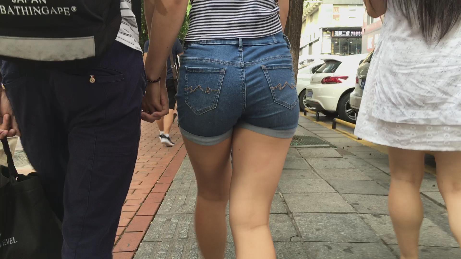 街拍高腰牛仔热裤白腿妹子 编号4114