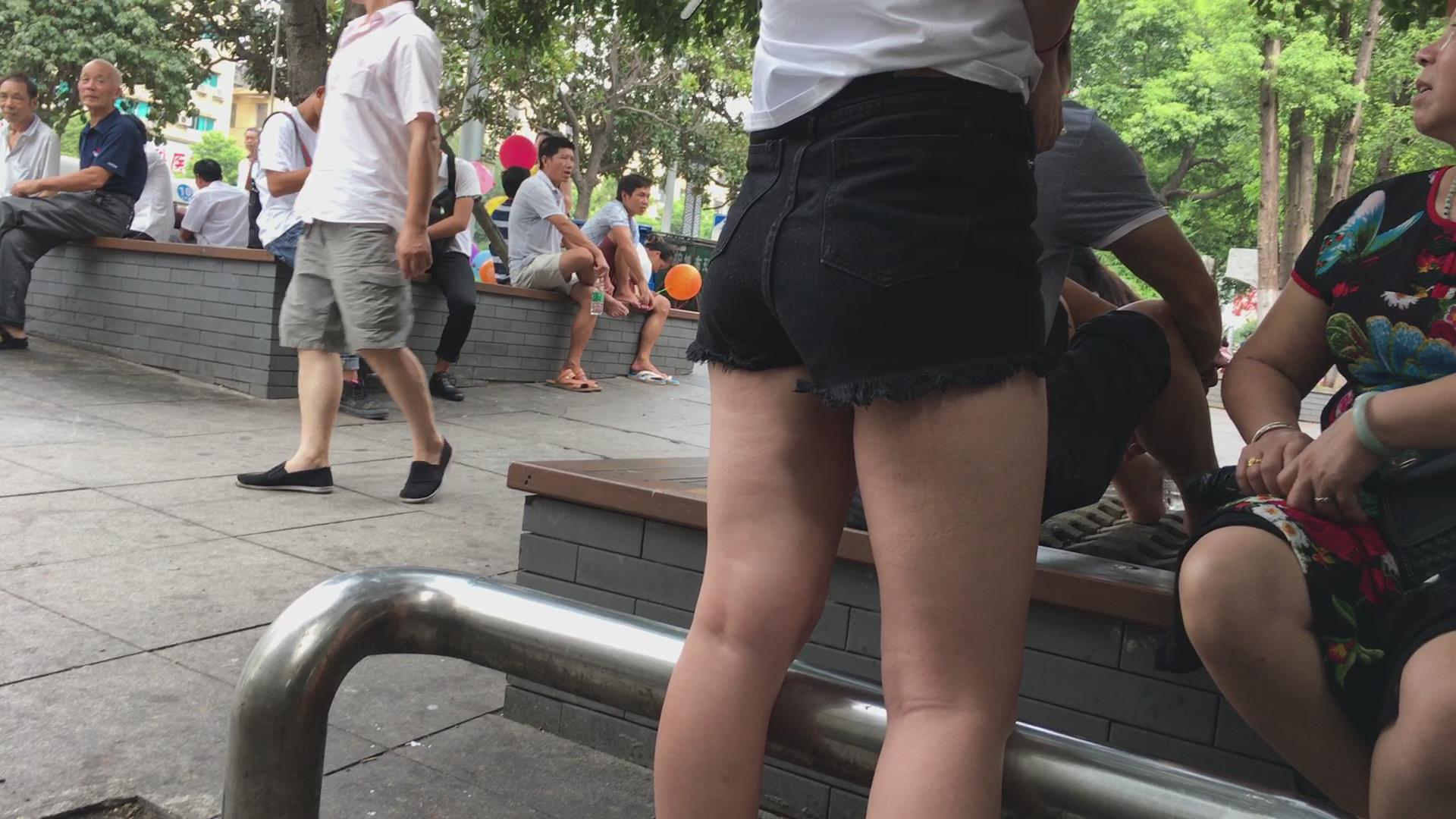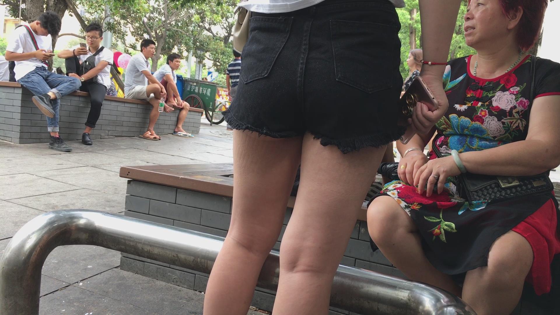 黑色随便高腰短裤丰臀美眉 编号4149
