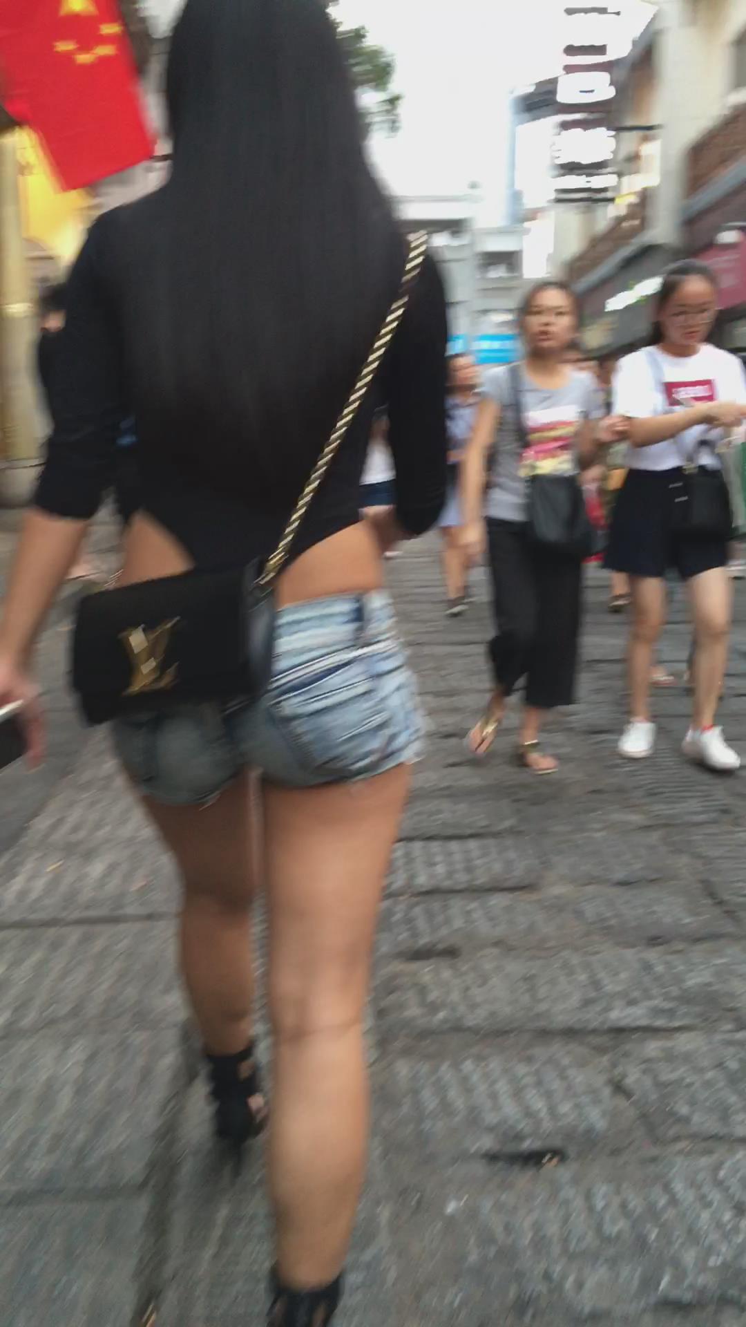 街拍超级火辣身材牛仔热裤美眉,苹果臀真大 编号4162