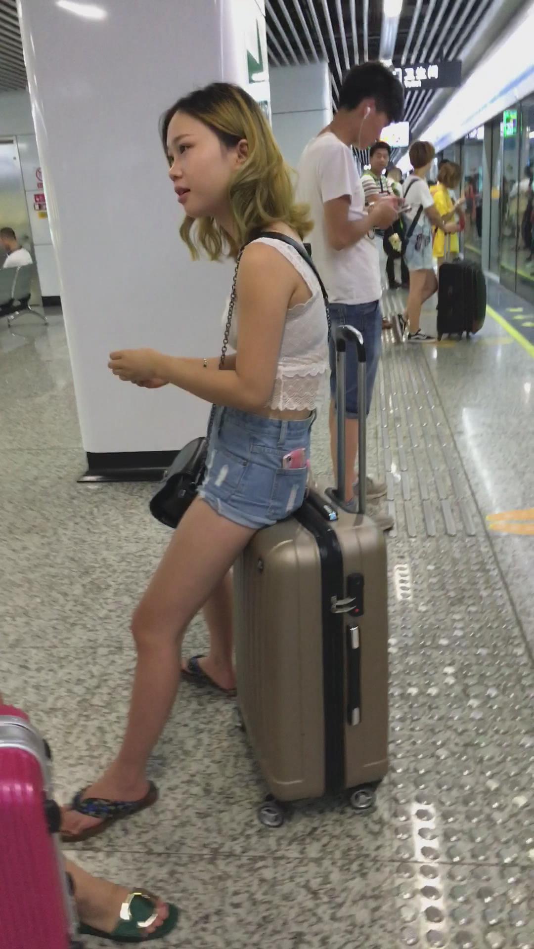 跟好姐妹等地铁的可人好身材辣妹 编号4195