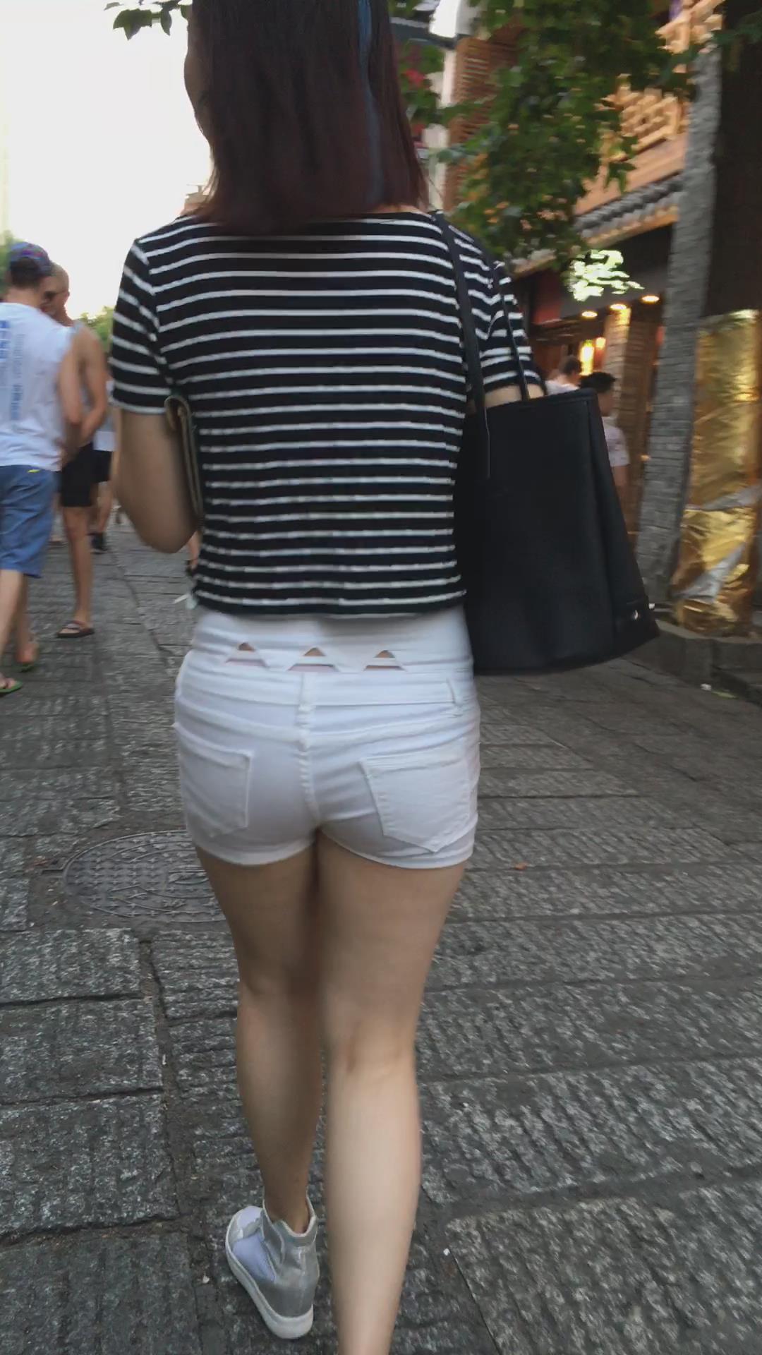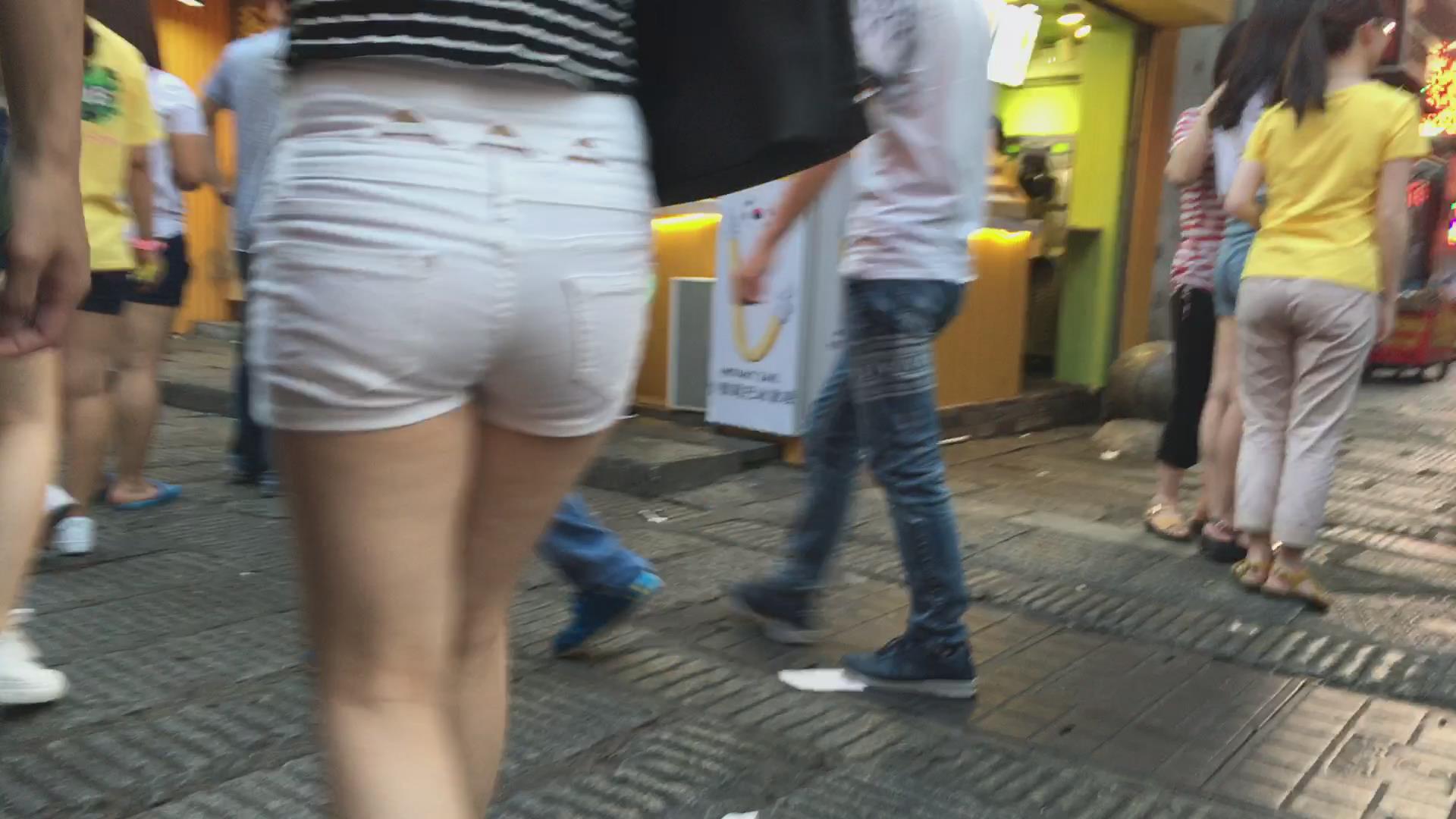 圆润饱满超短白热裤美眉,屁屁很带劲 编号4200