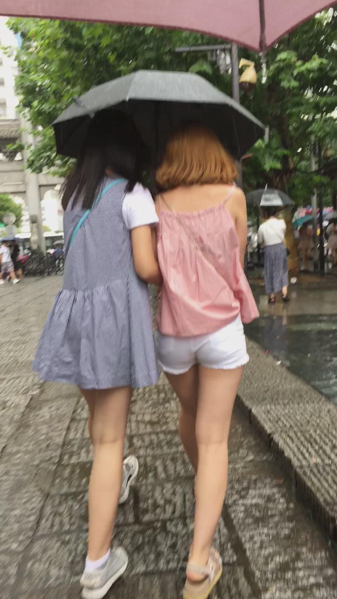 街拍粉粉吊带衫陪白紧热裤气质宽臀美女 编号4234