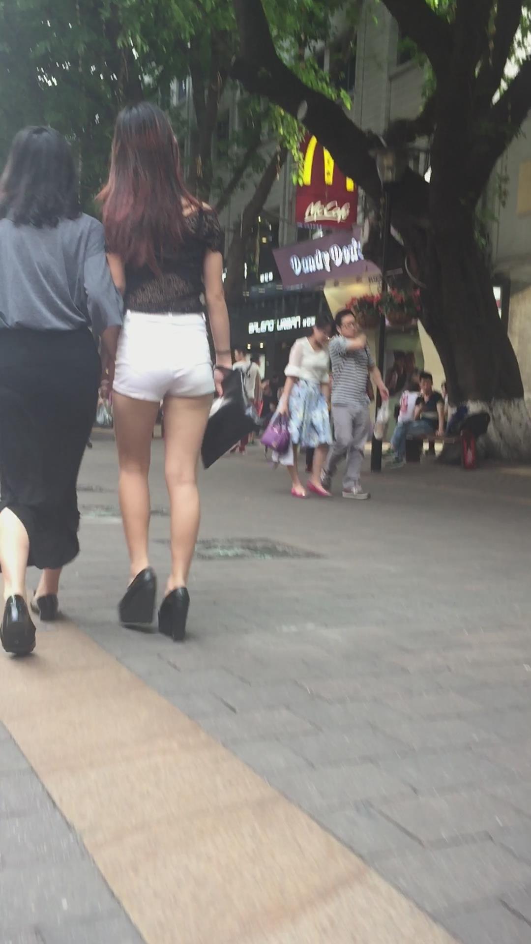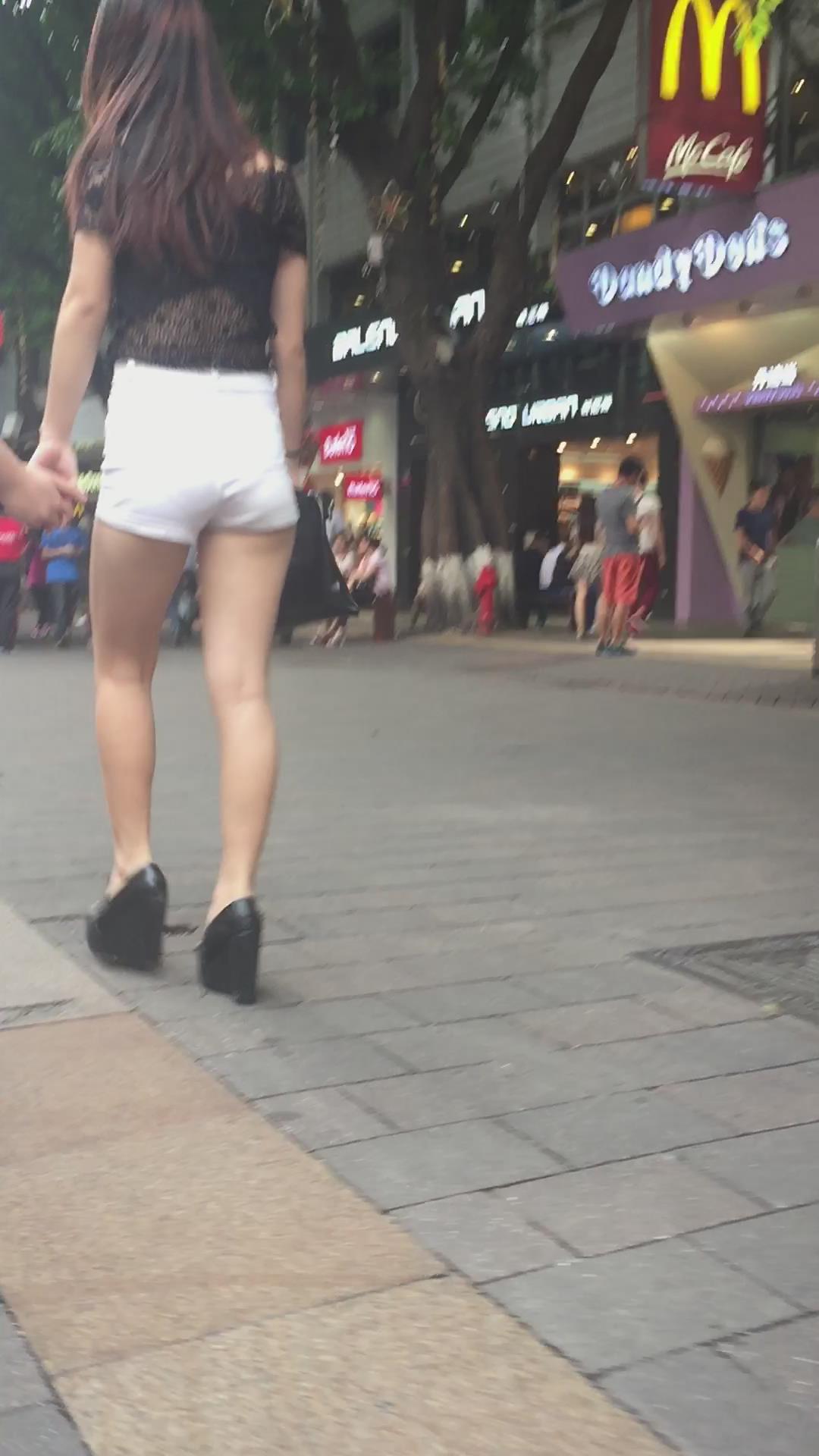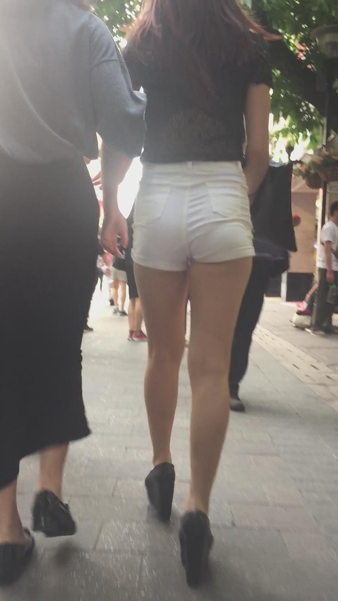 街拍高腰热裤苹果臀白皙美腿颜值美女 编号4241
